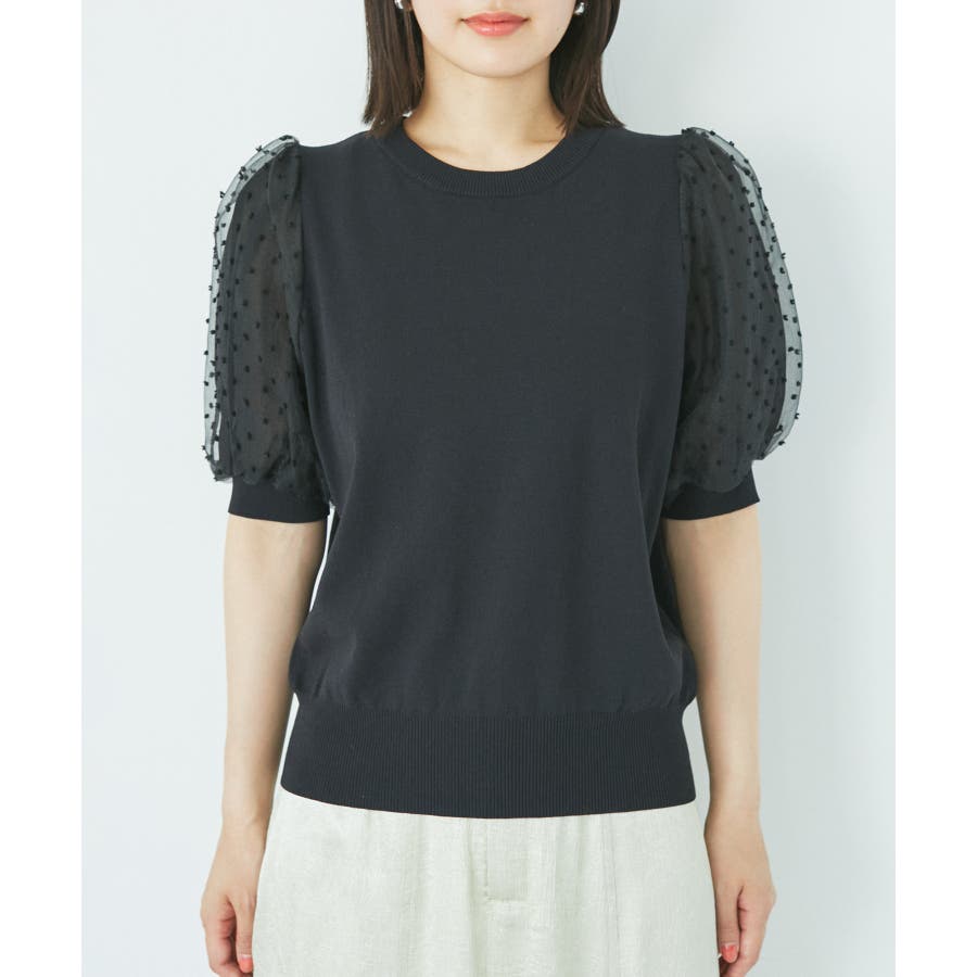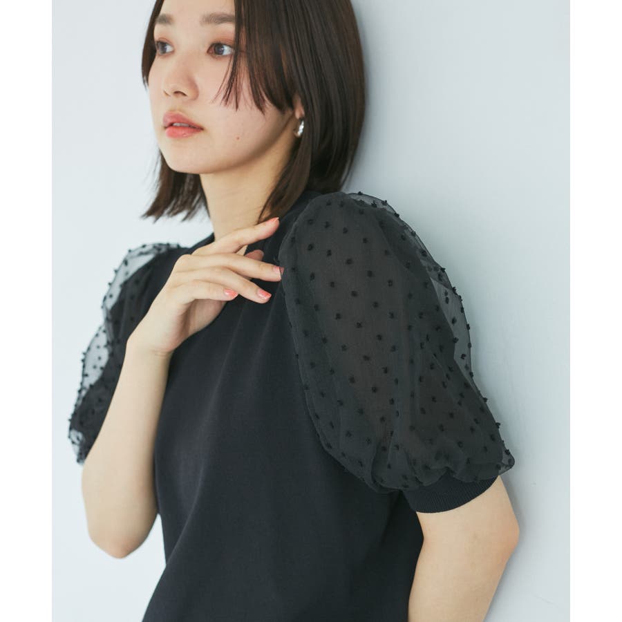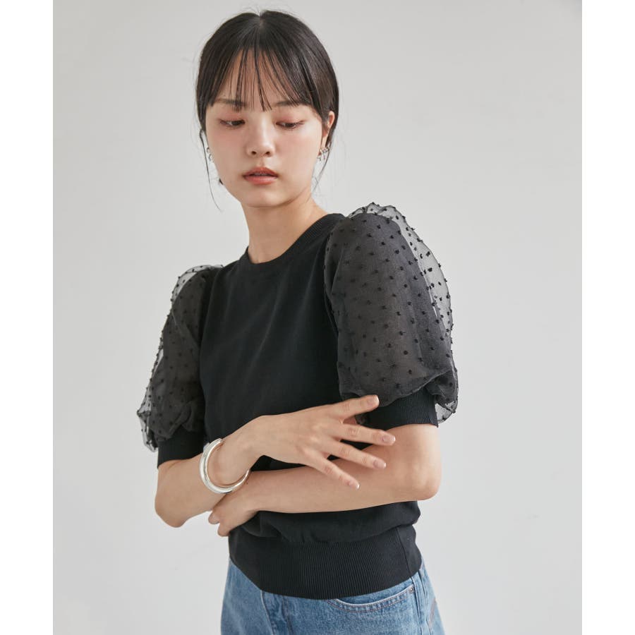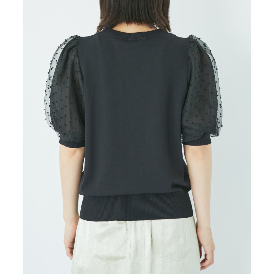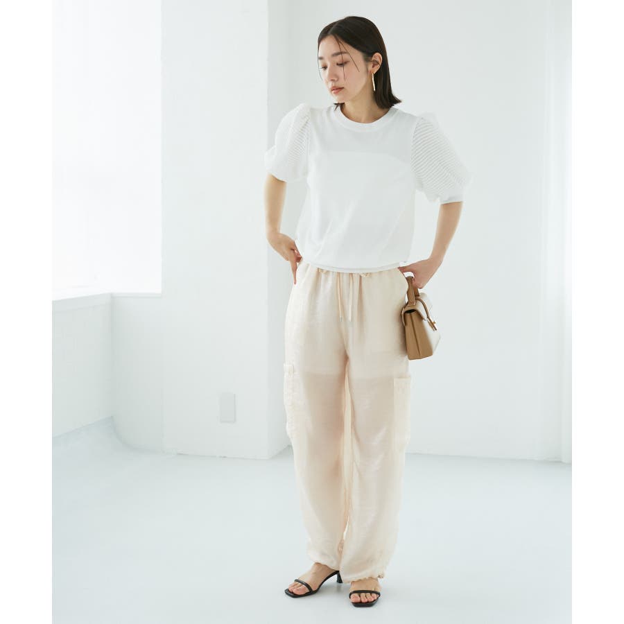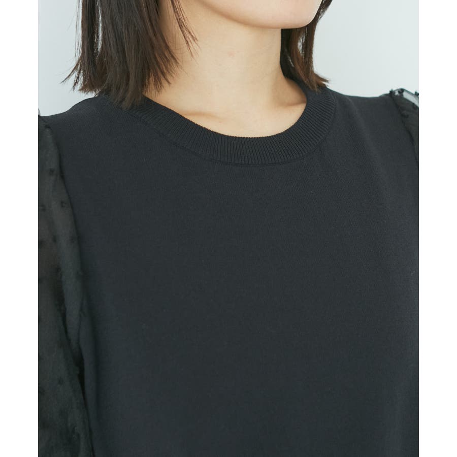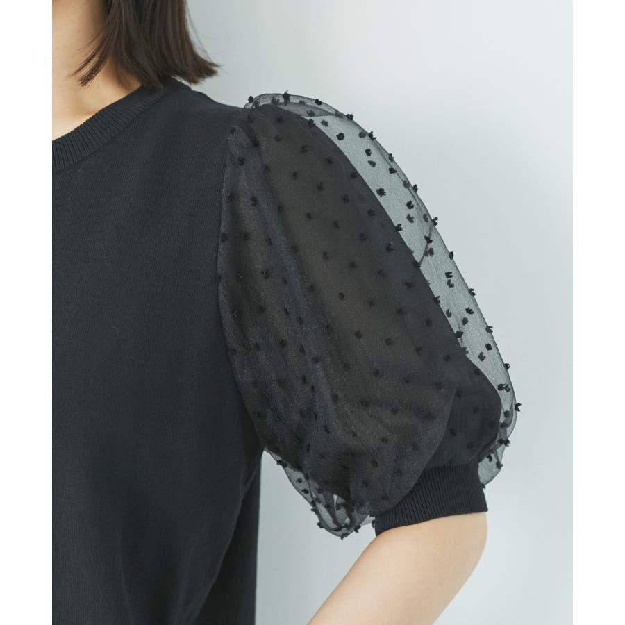 ◆2024春夏◆ 【デザイン・シルエット】 シアー素材とニットコンビのプルオーバー。 袖の立体感がポイントになる1着。