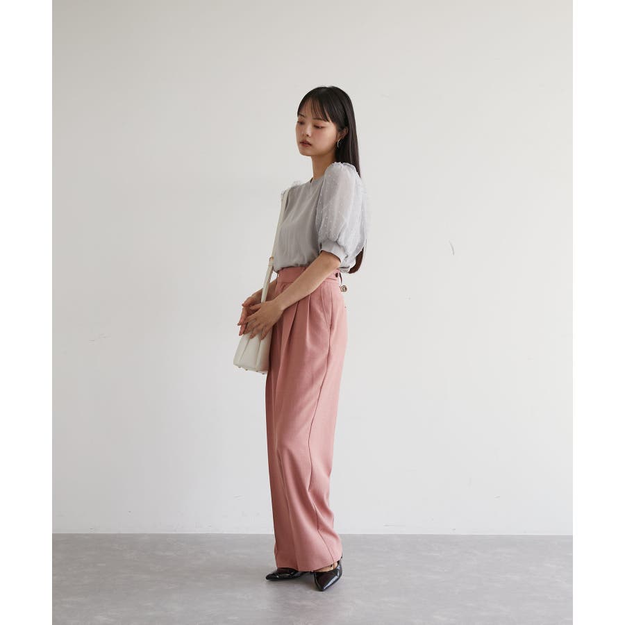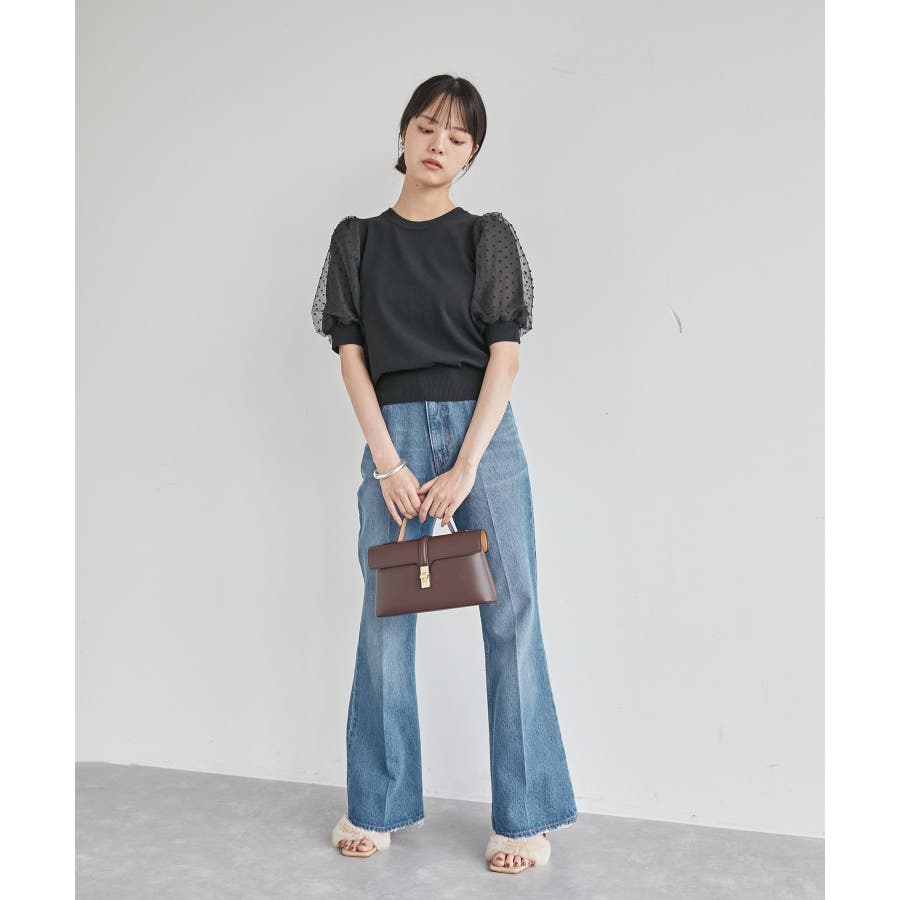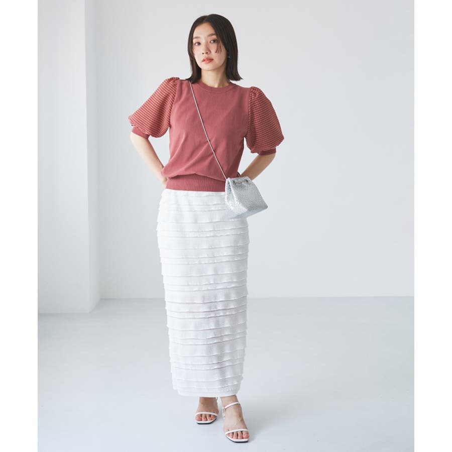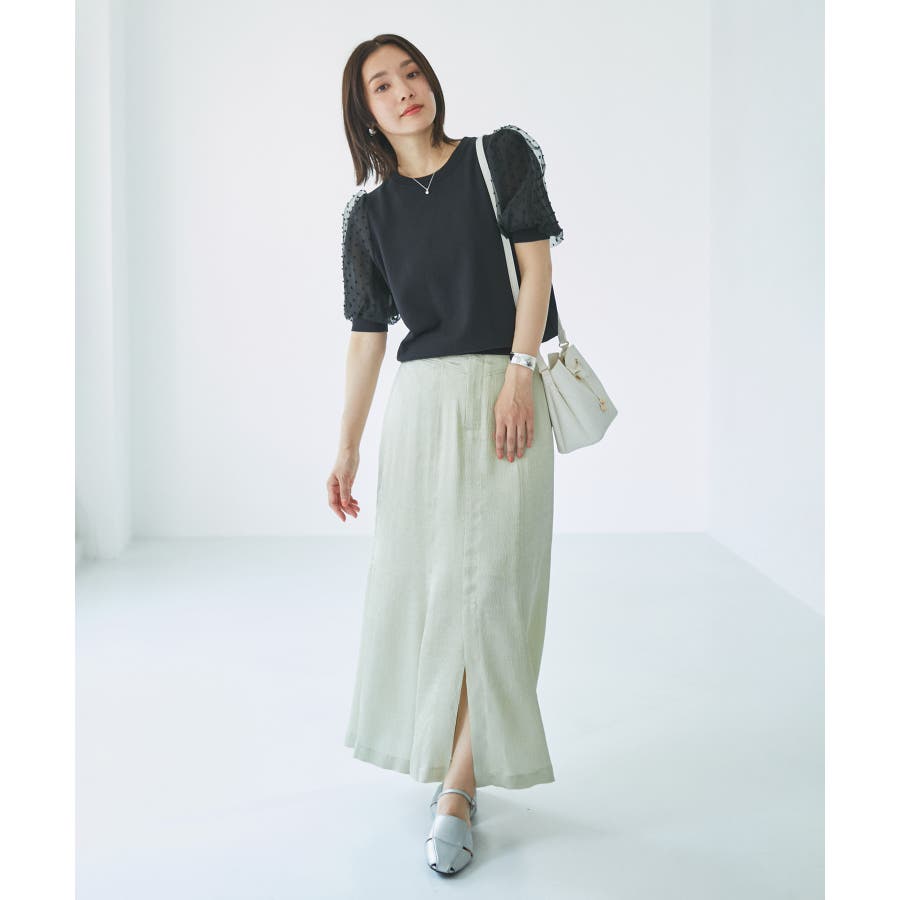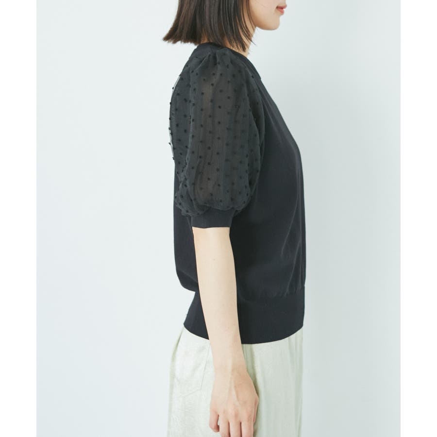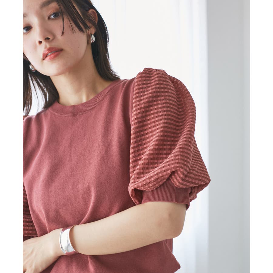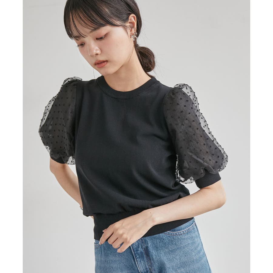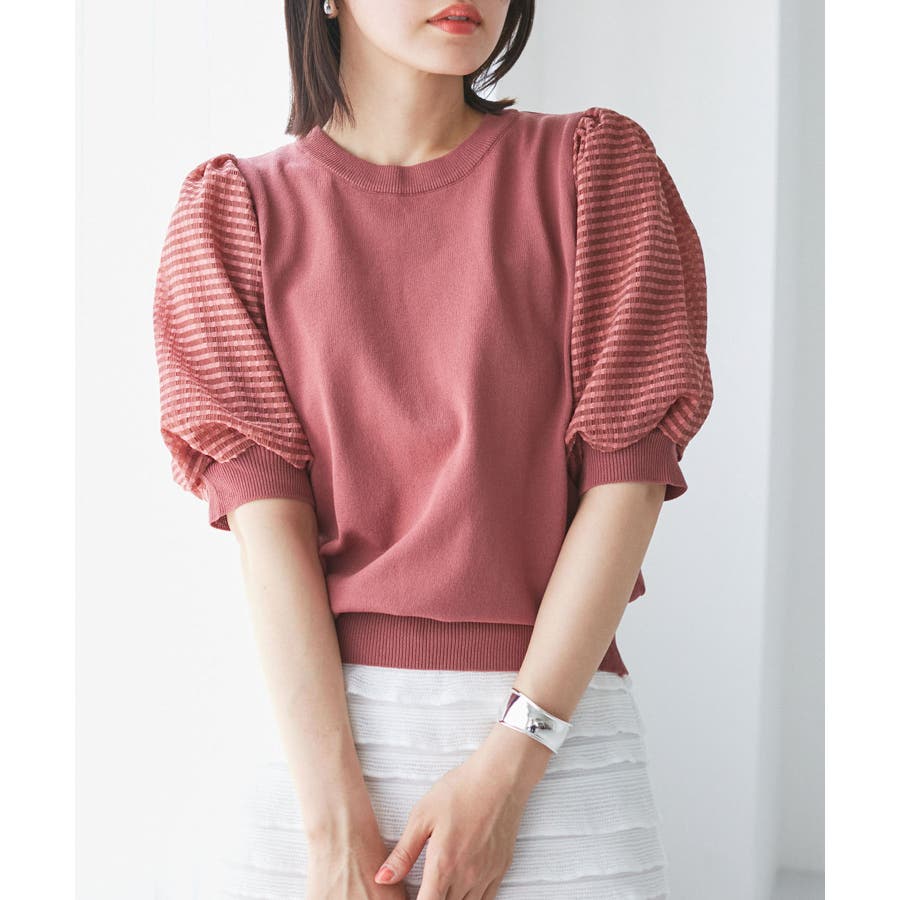 ◆2024春夏◆ 【デザイン・シルエット】 シアー素材とニットコンビのプルオーバー。 袖の立体感がポイントになる1着。