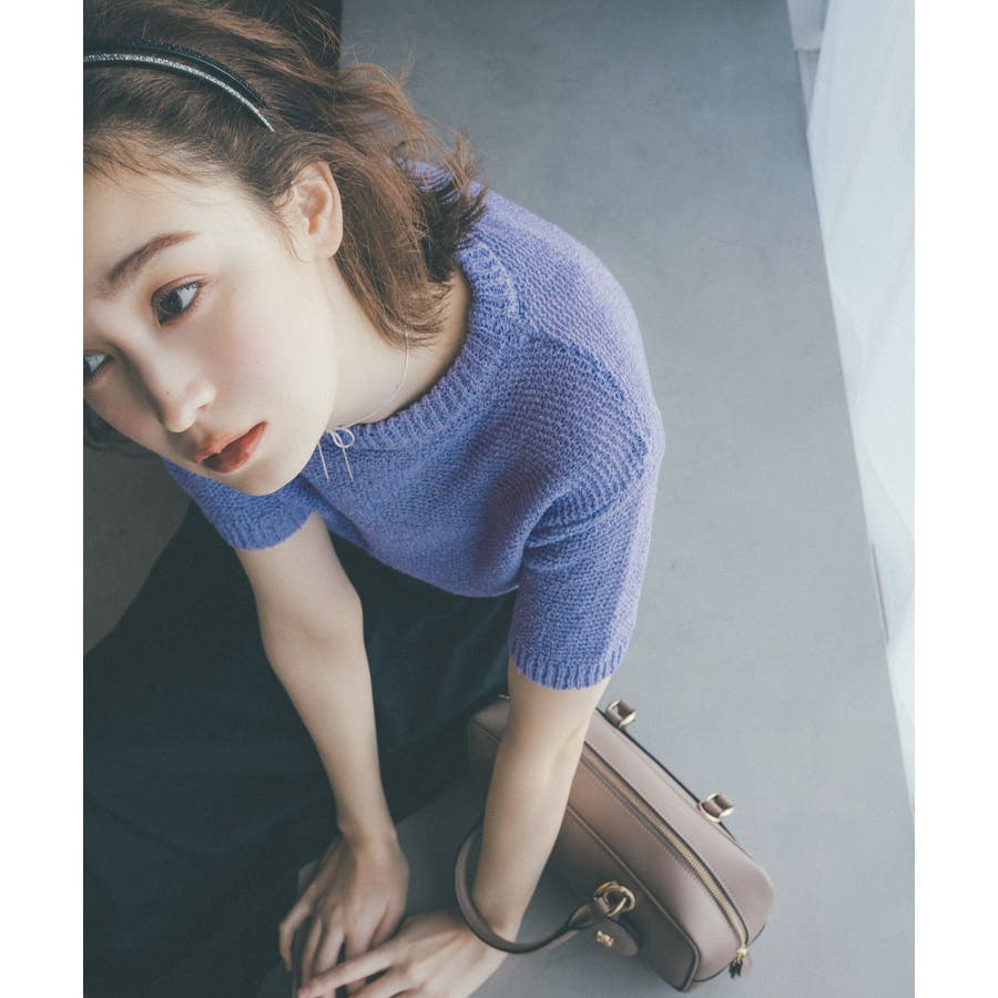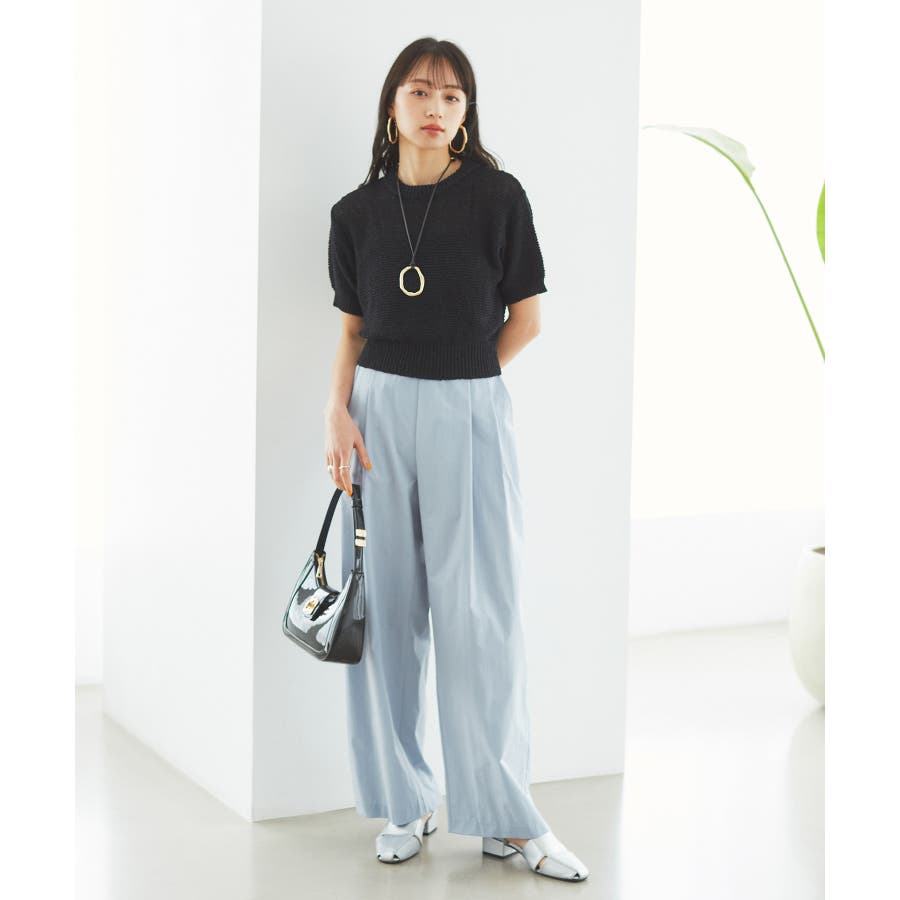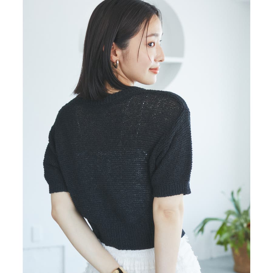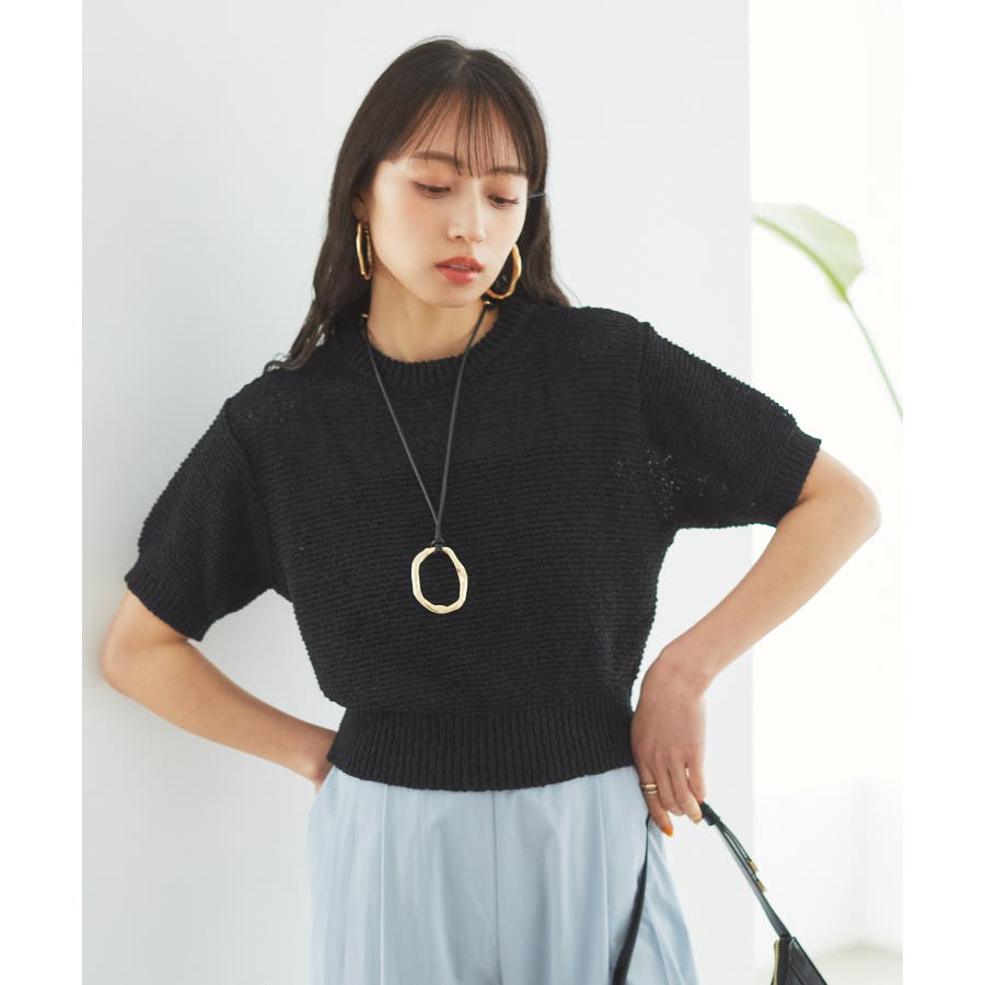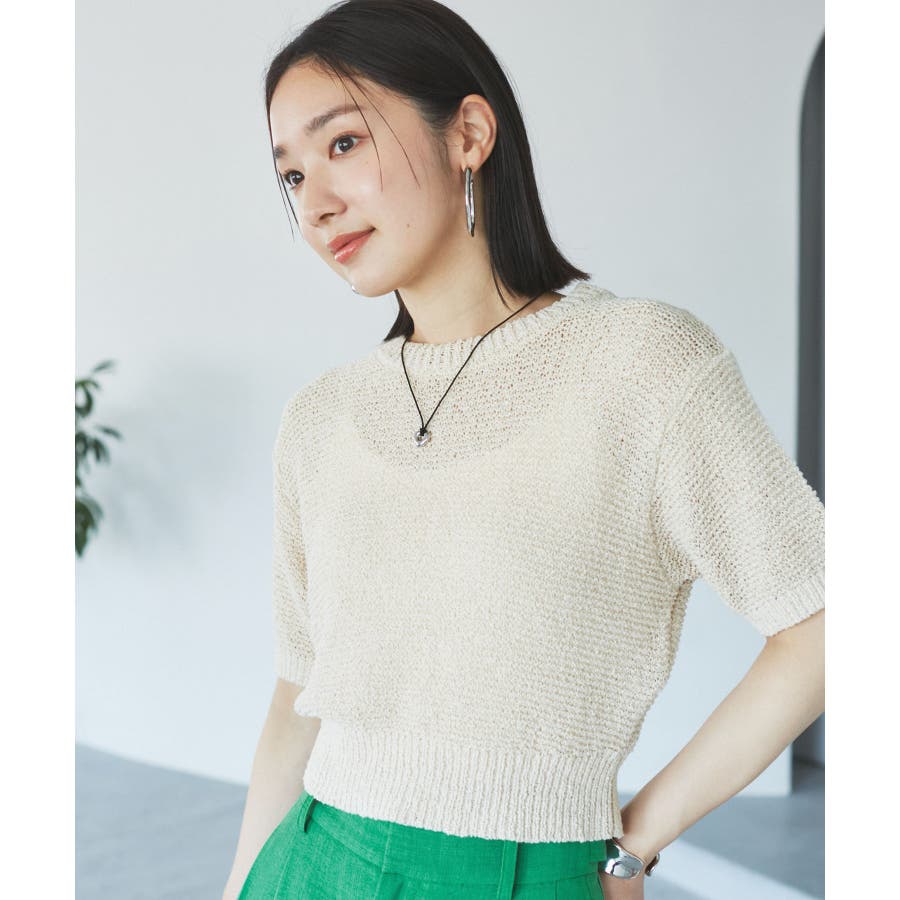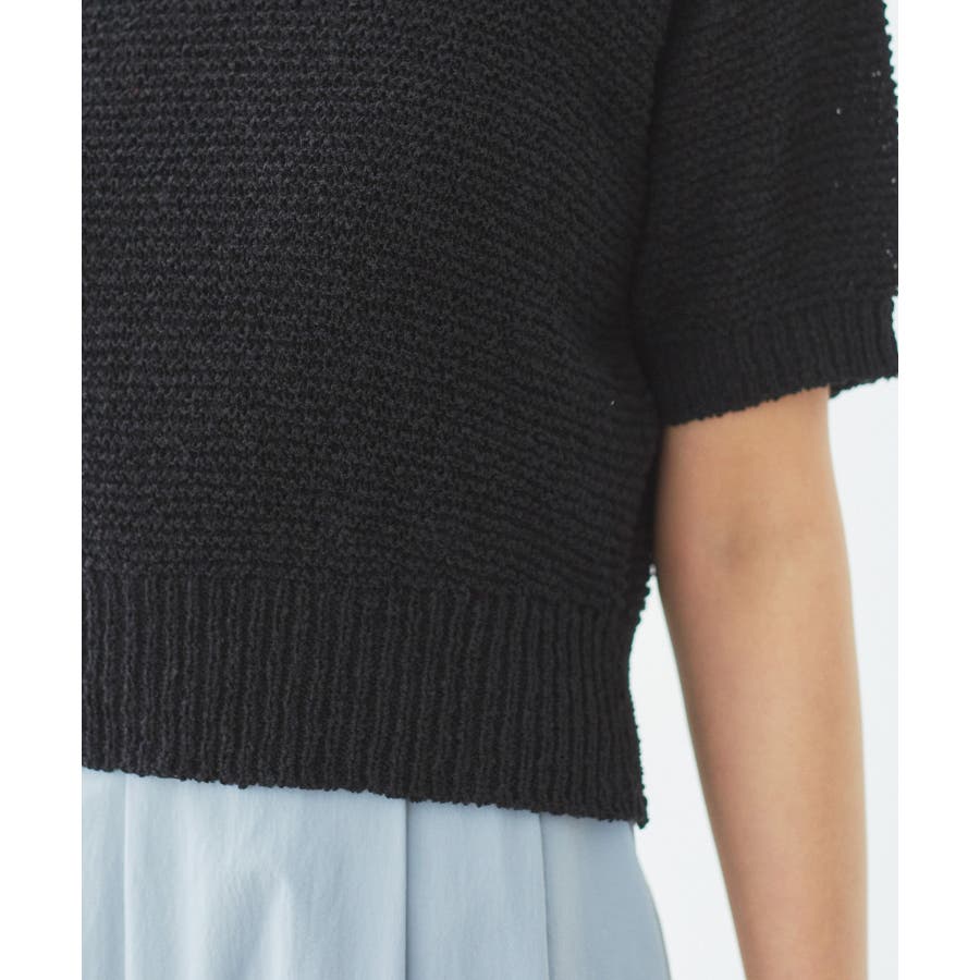 ◆2024春夏◆ 【デザイン・シルエット】 ほどよく詰まったクルーネックと、体のラインを拾いすぎないコンパクトなサイズ感の半袖プルオーバー。 ふんわりとボリュームを持たせたパフスリーブが女性らしい雰囲気です。