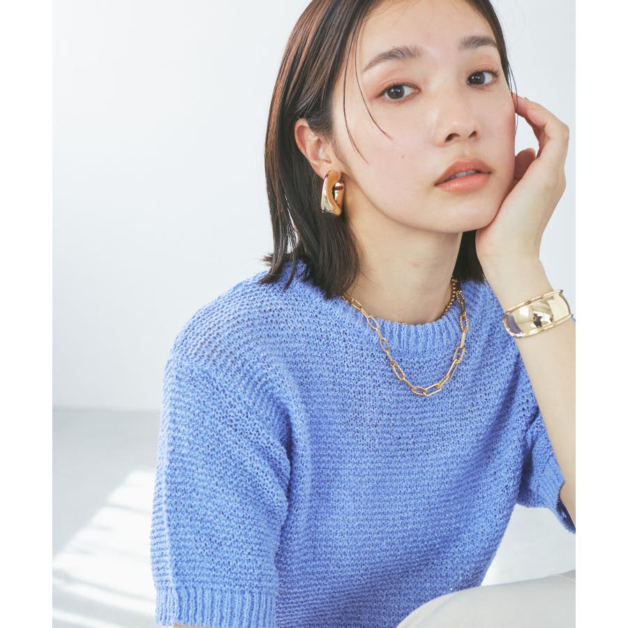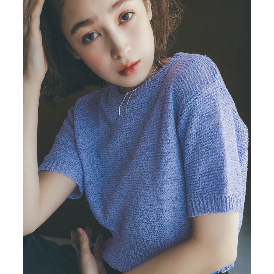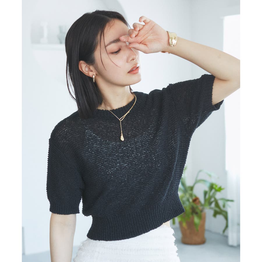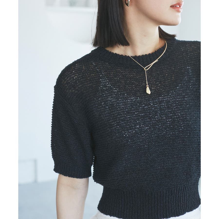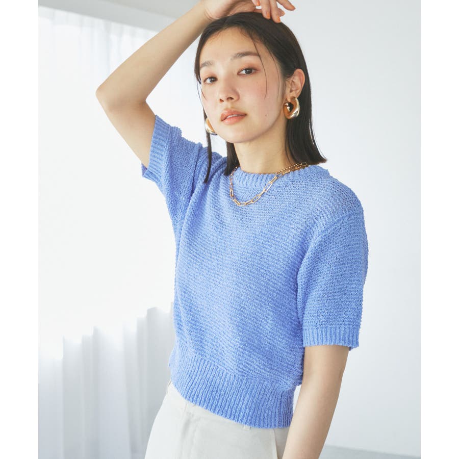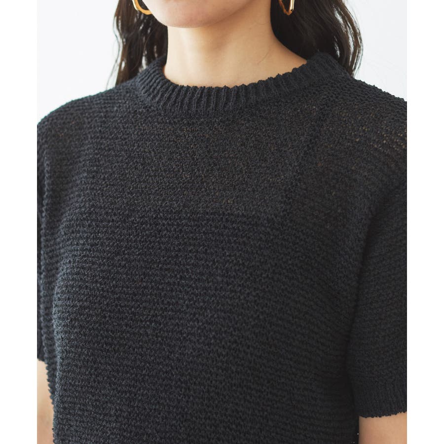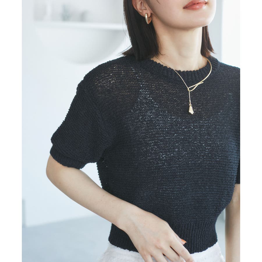◆2024春夏◆ 【デザイン・シルエット】 ほどよく詰まったクルーネックと、体のラインを拾いすぎないコンパクトなサイズ感の半袖プルオーバー。 ふんわりとボリュームを持たせたパフスリーブが女性らしい雰囲気です。
