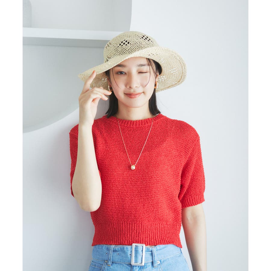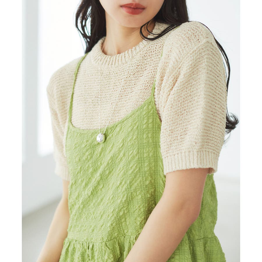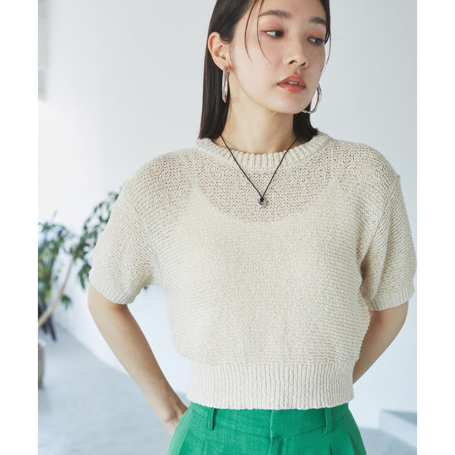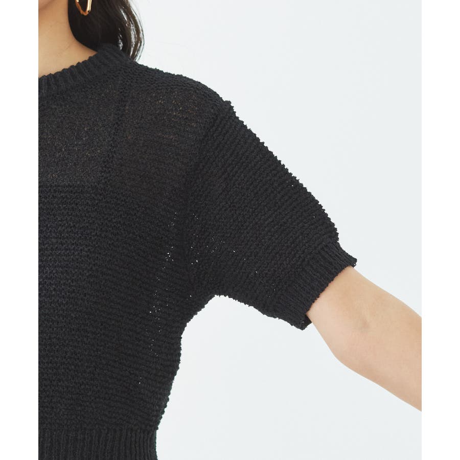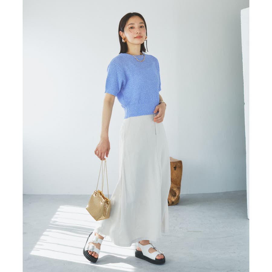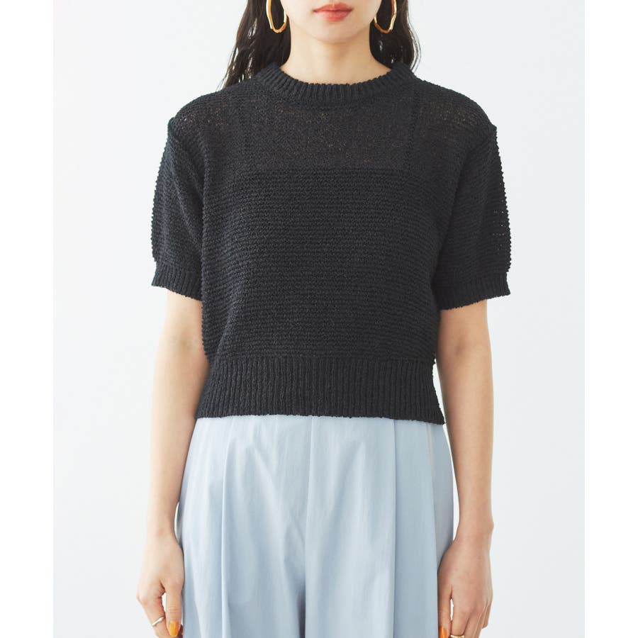 ◆2024春夏◆ 【デザイン・シルエット】 ほどよく詰まったクルーネックと、体のラインを拾いすぎないコンパクトなサイズ感の半袖プルオーバー。 ふんわりとボリュームを持たせたパフスリーブが女性らしい雰囲気です。