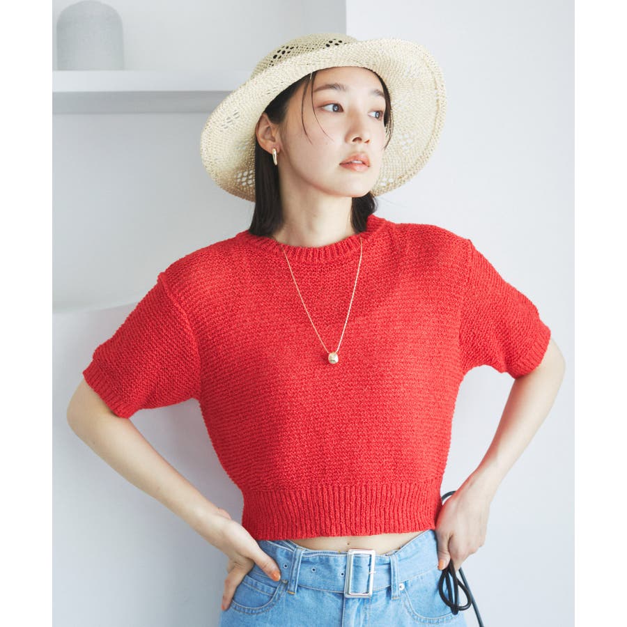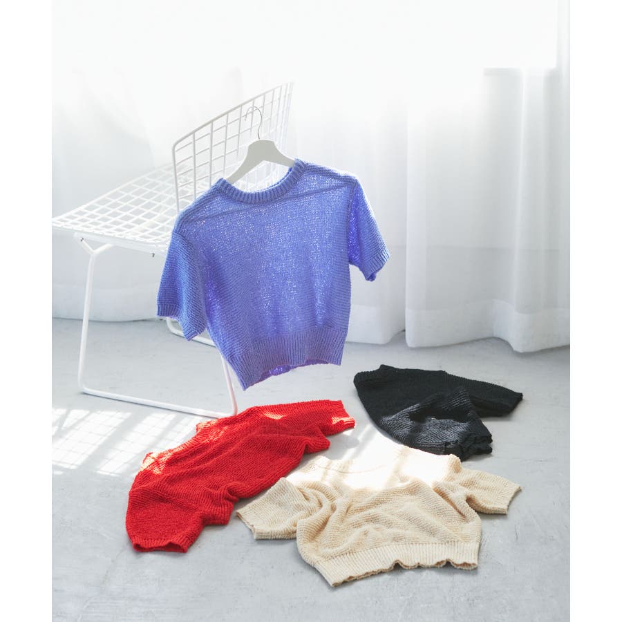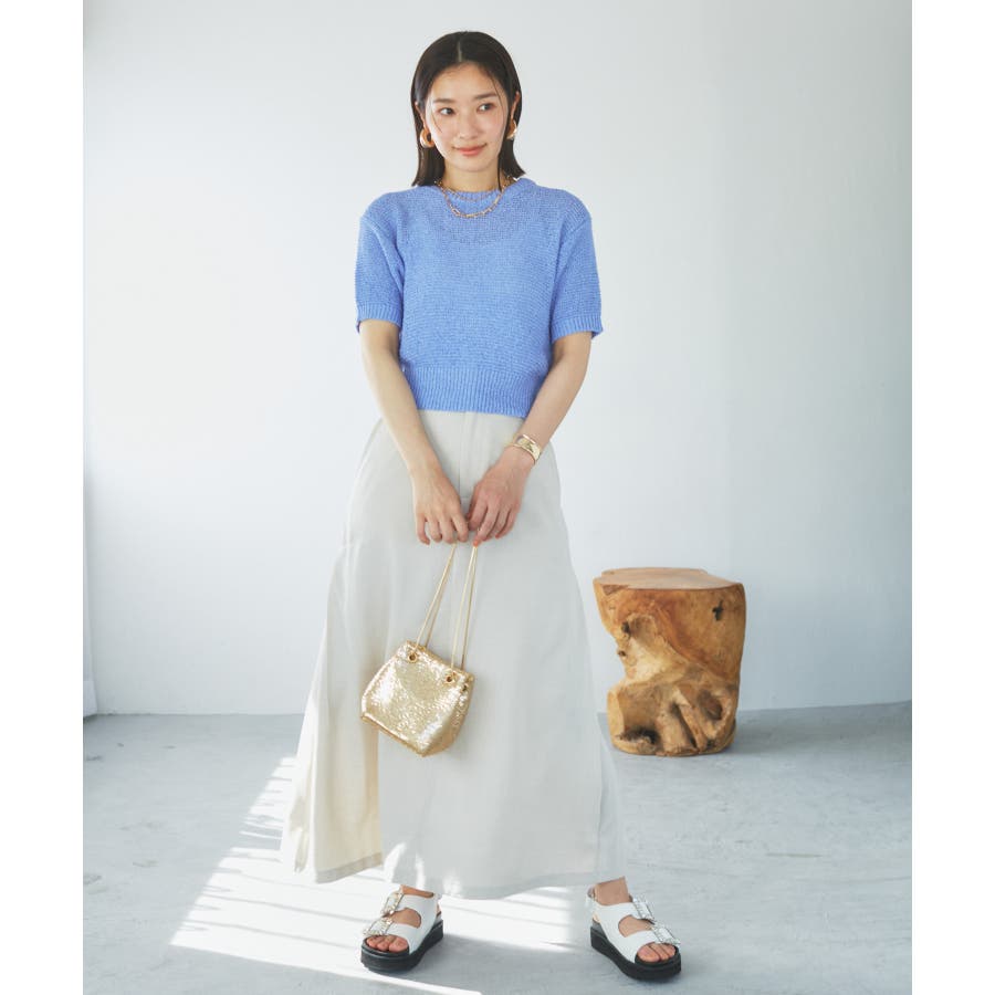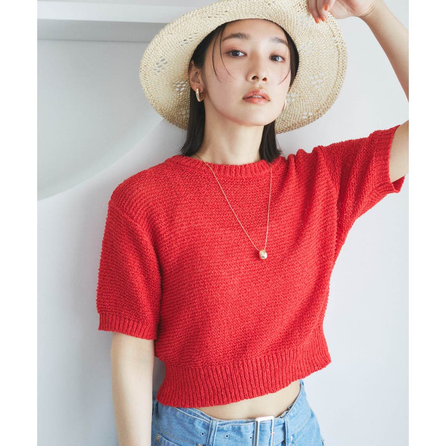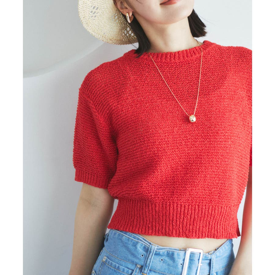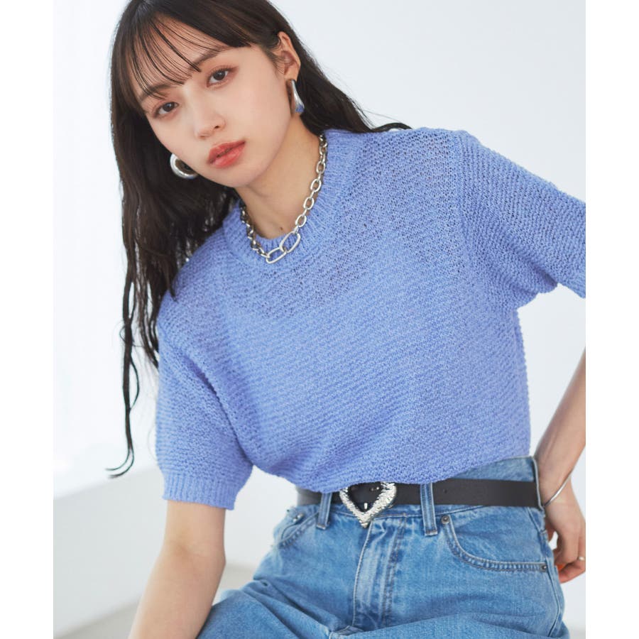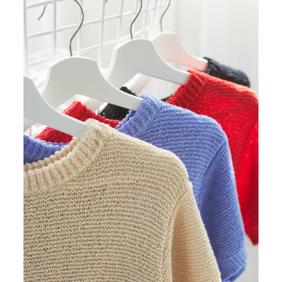 ◆2024春夏◆ 【デザイン・シルエット】 ほどよく詰まったクルーネックと、体のラインを拾いすぎないコンパクトなサイズ感の半袖プルオーバー。 ふんわりとボリュームを持たせたパフスリーブが女性らしい雰囲気です。