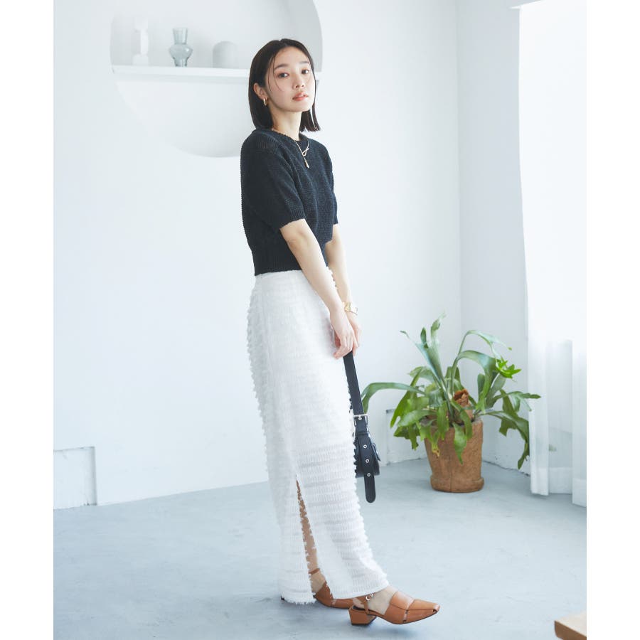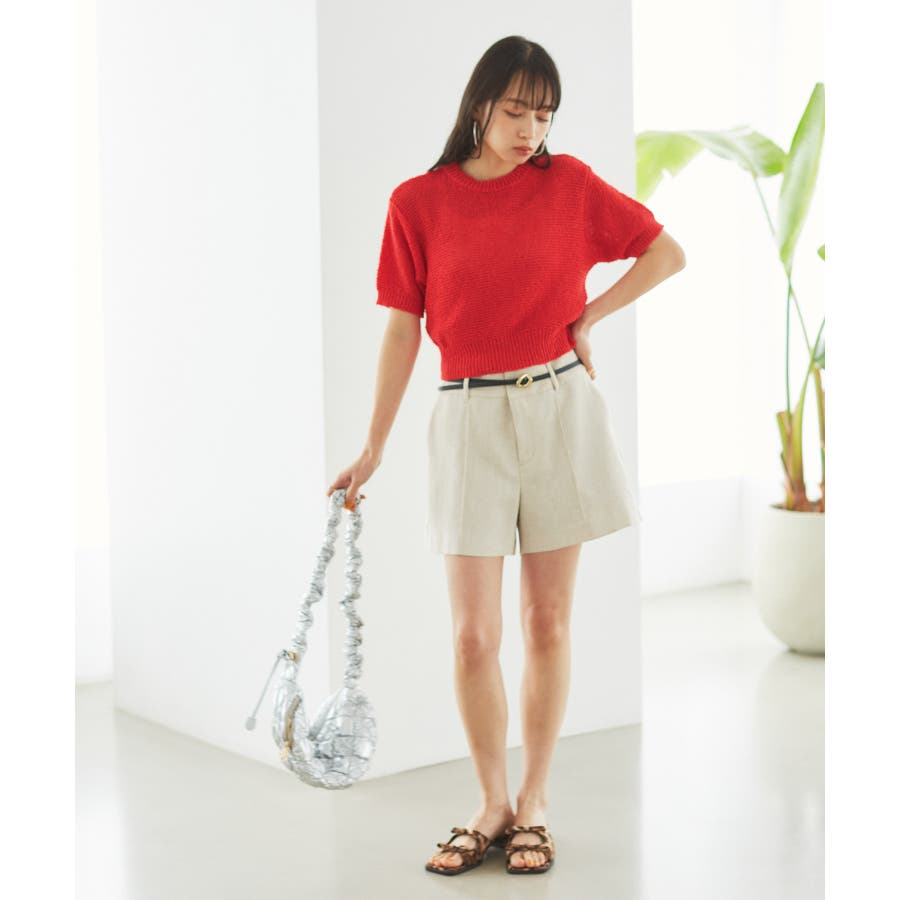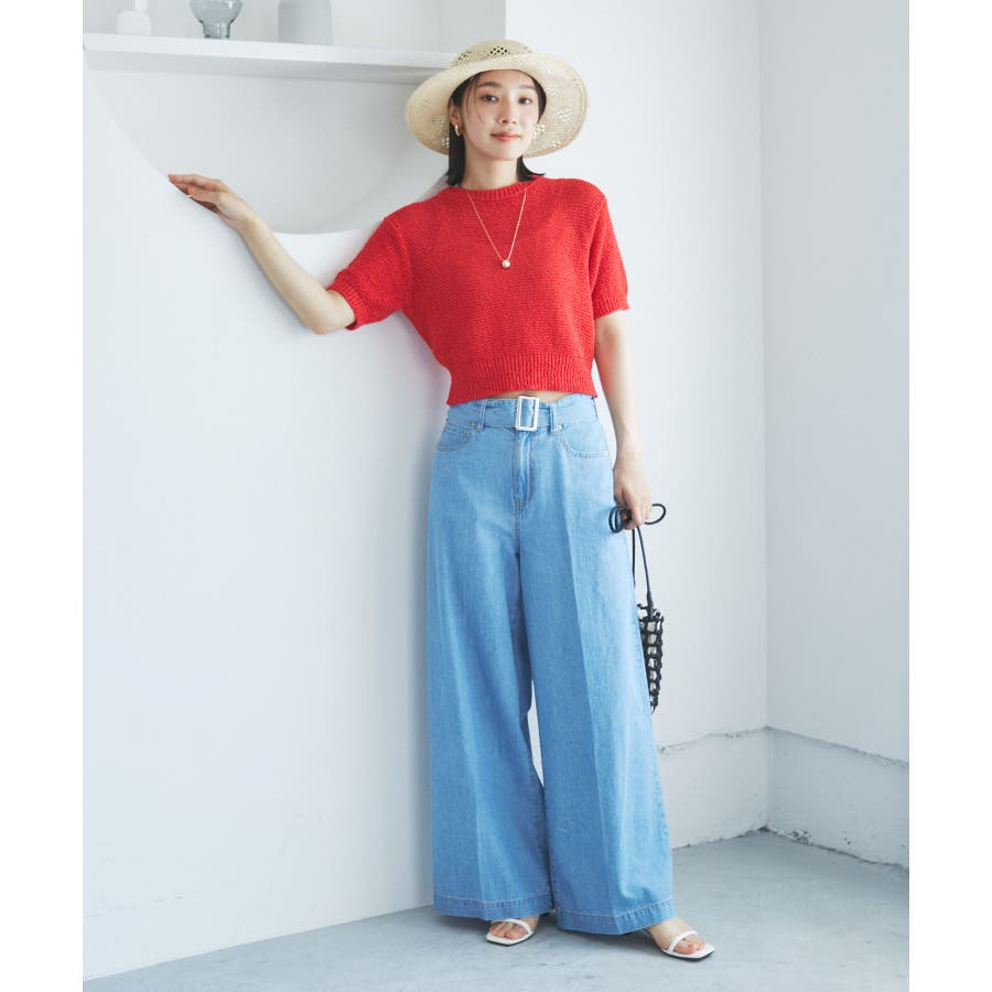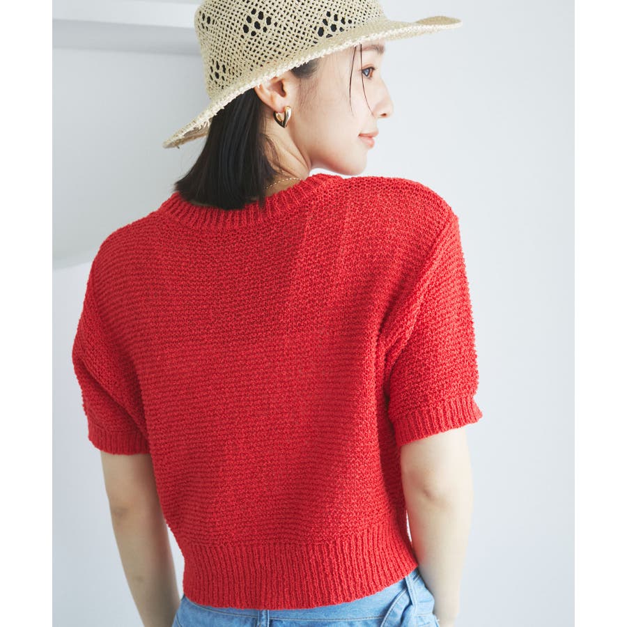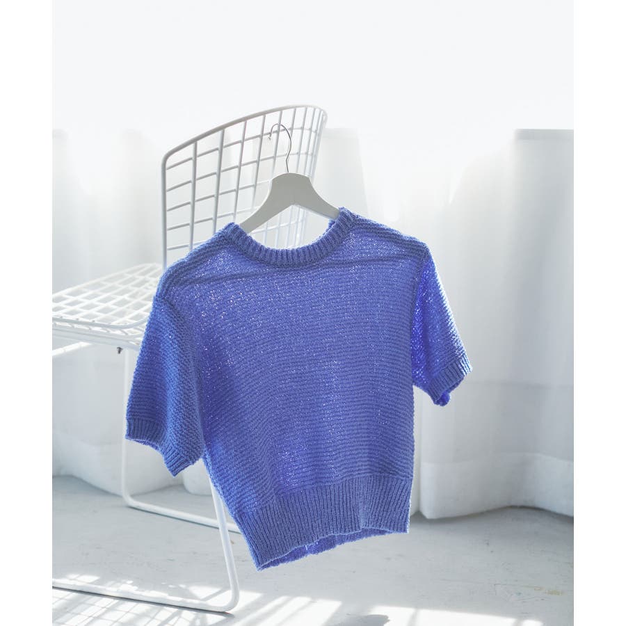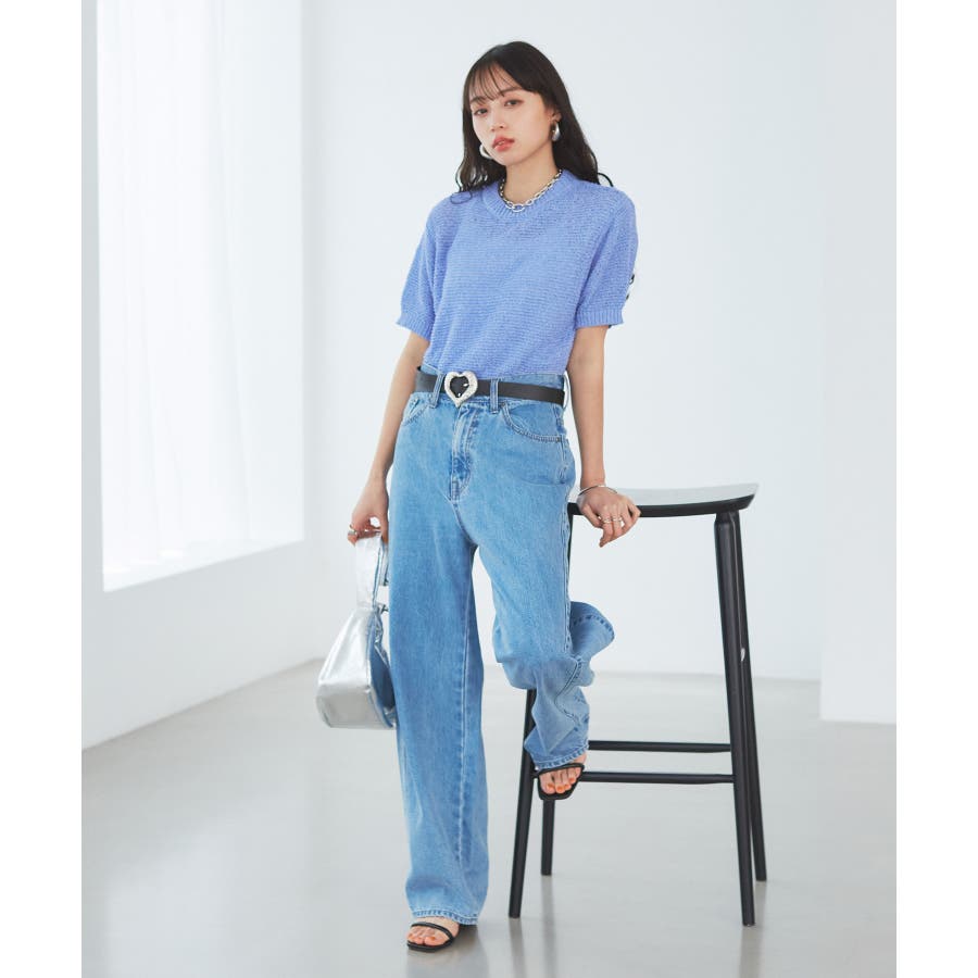 ◆2024春夏◆ 【デザイン・シルエット】 ほどよく詰まったクルーネックと、体のラインを拾いすぎないコンパクトなサイズ感の半袖プルオーバー。 ふんわりとボリュームを持たせたパフスリーブが女性らしい雰囲気です。