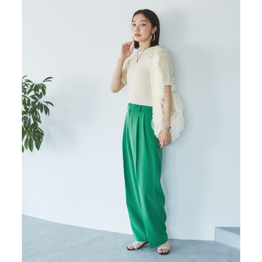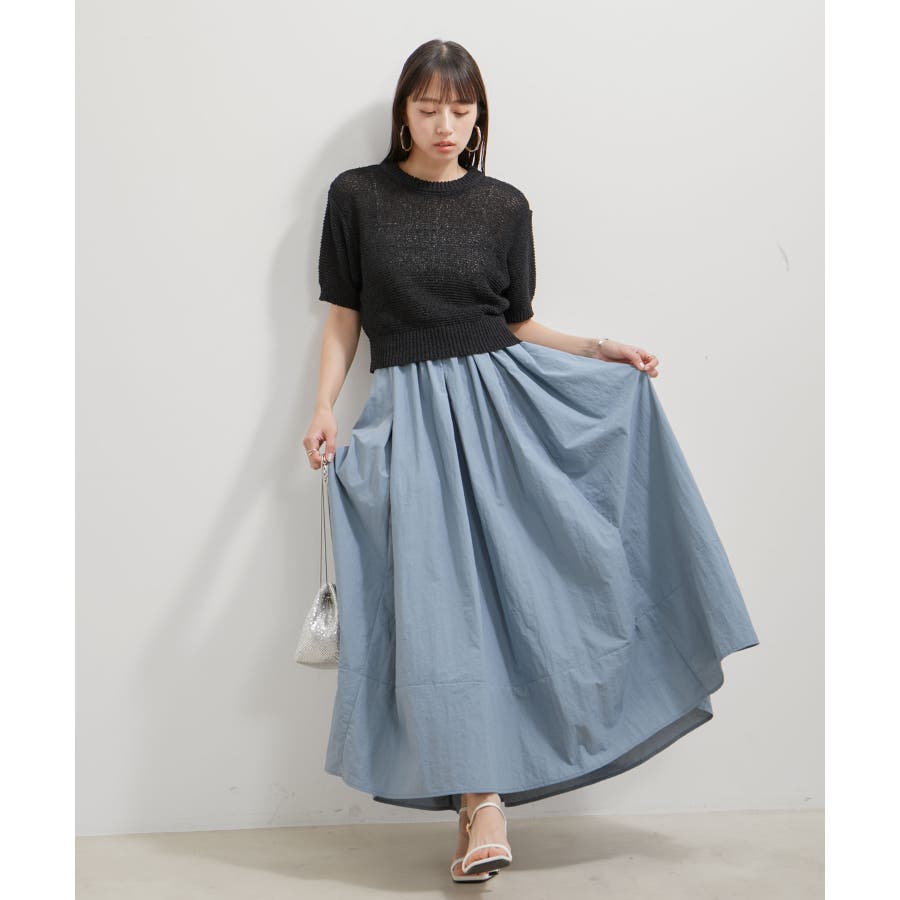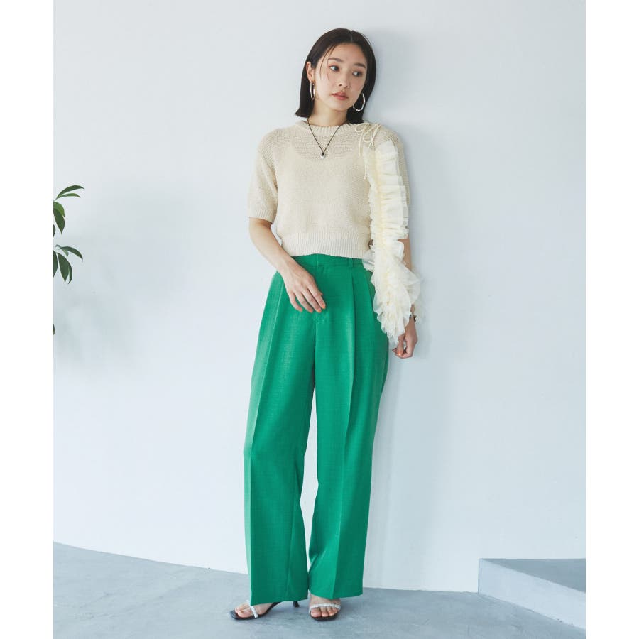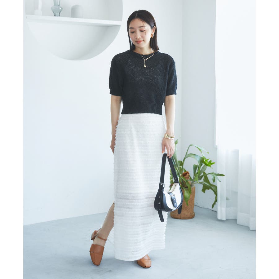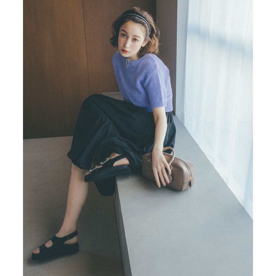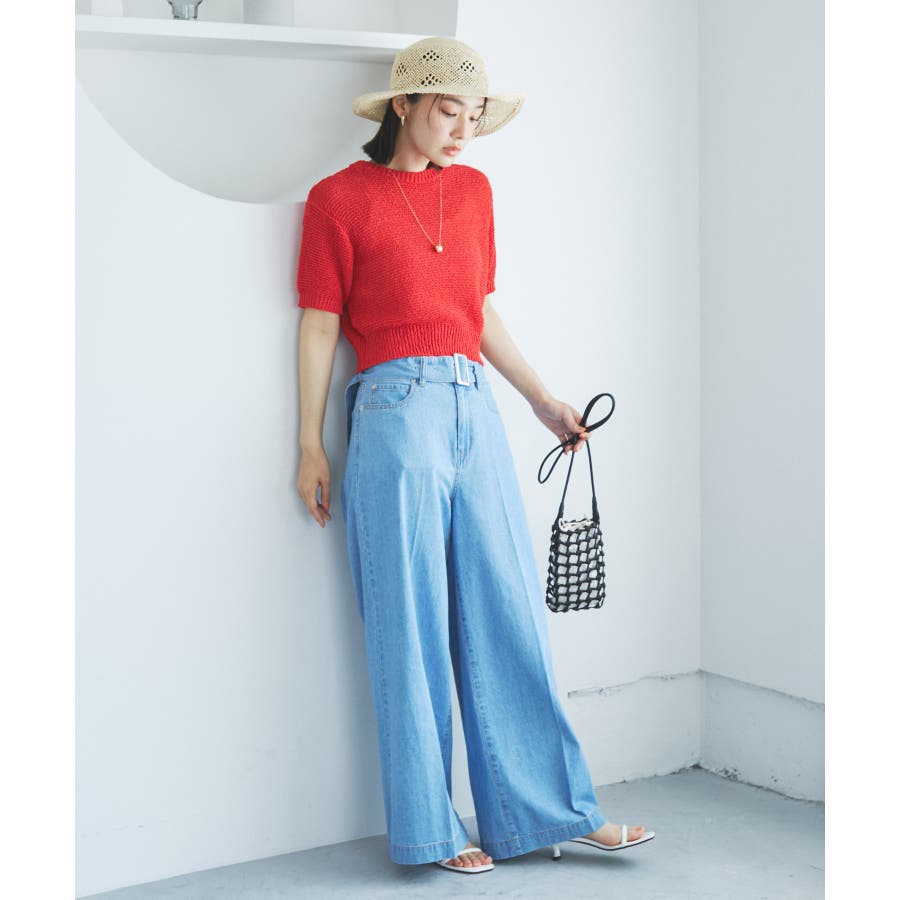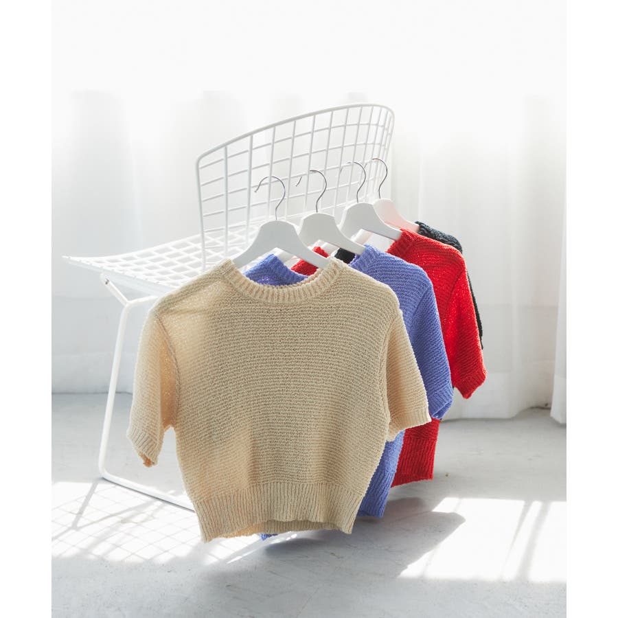 ◆2024春夏◆ 【デザイン・シルエット】 ほどよく詰まったクルーネックと、体のラインを拾いすぎないコンパクトなサイズ感の半袖プルオーバー。 ふんわりとボリュームを持たせたパフスリーブが女性らしい雰囲気です。