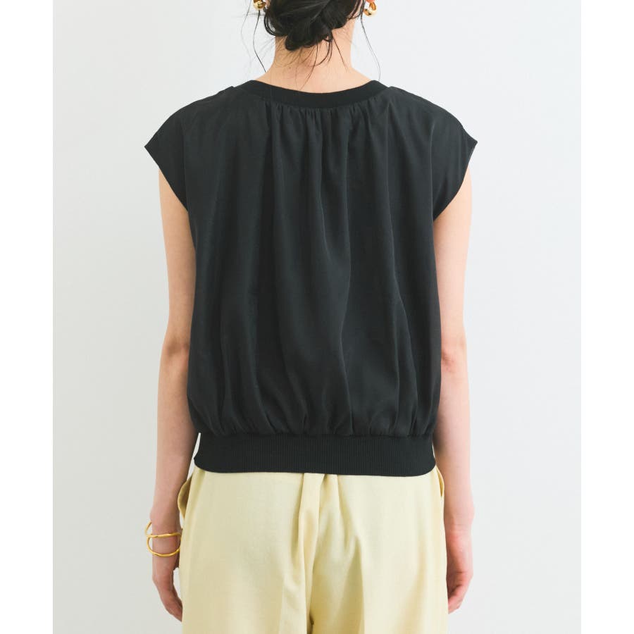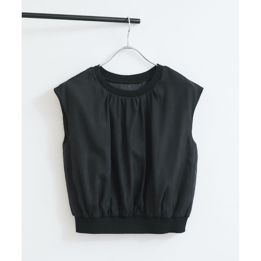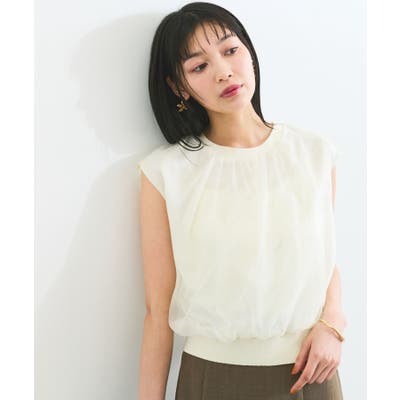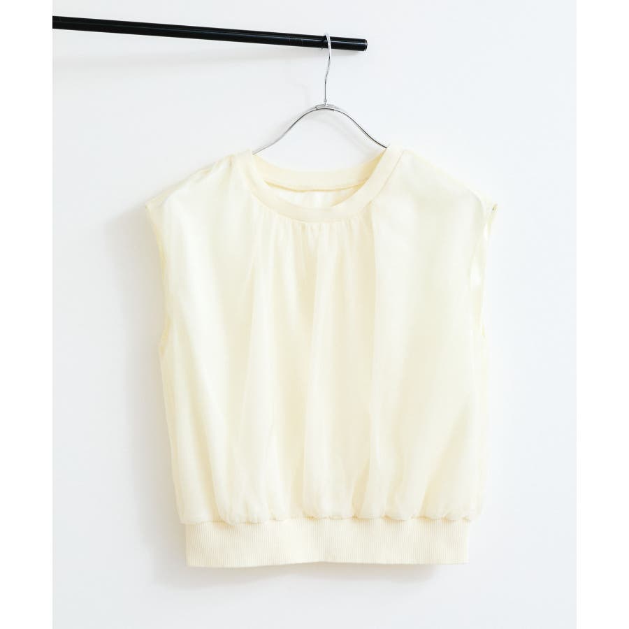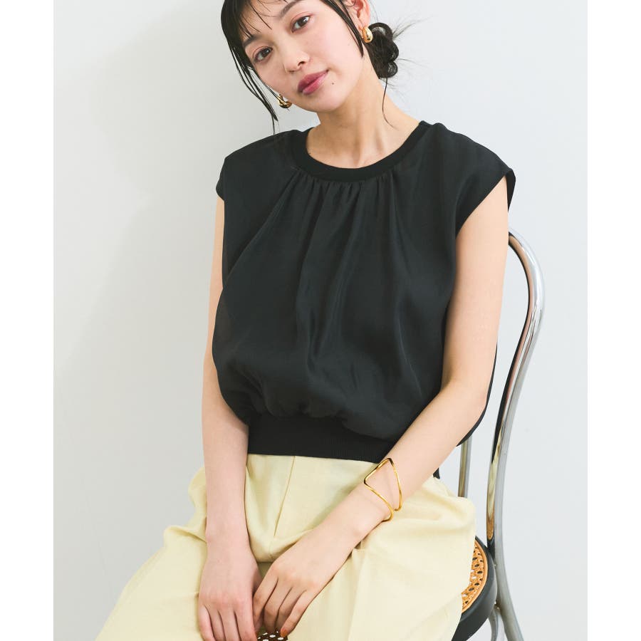 今シーズンもトレンド継続のシアー素材をふんわりとギャザーを入れて使用し、透けないようにしっかりと裏地をドッキングしたフェミニントップスです。