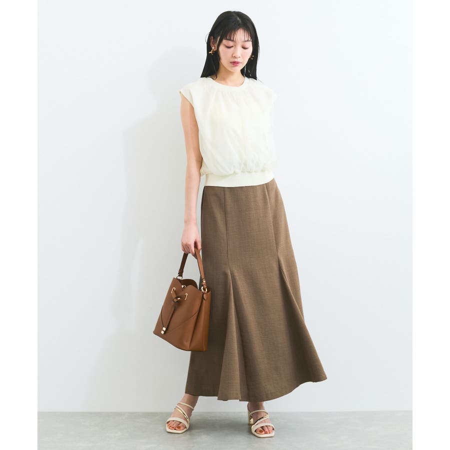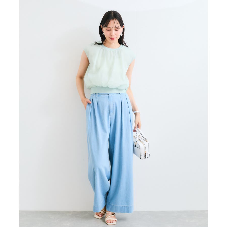 着丈が程よく短めなので、マーメイドスカート、ワイドパンツなどと相性が良く、スタイル良く見えます。
