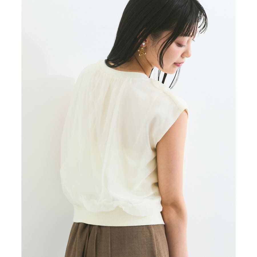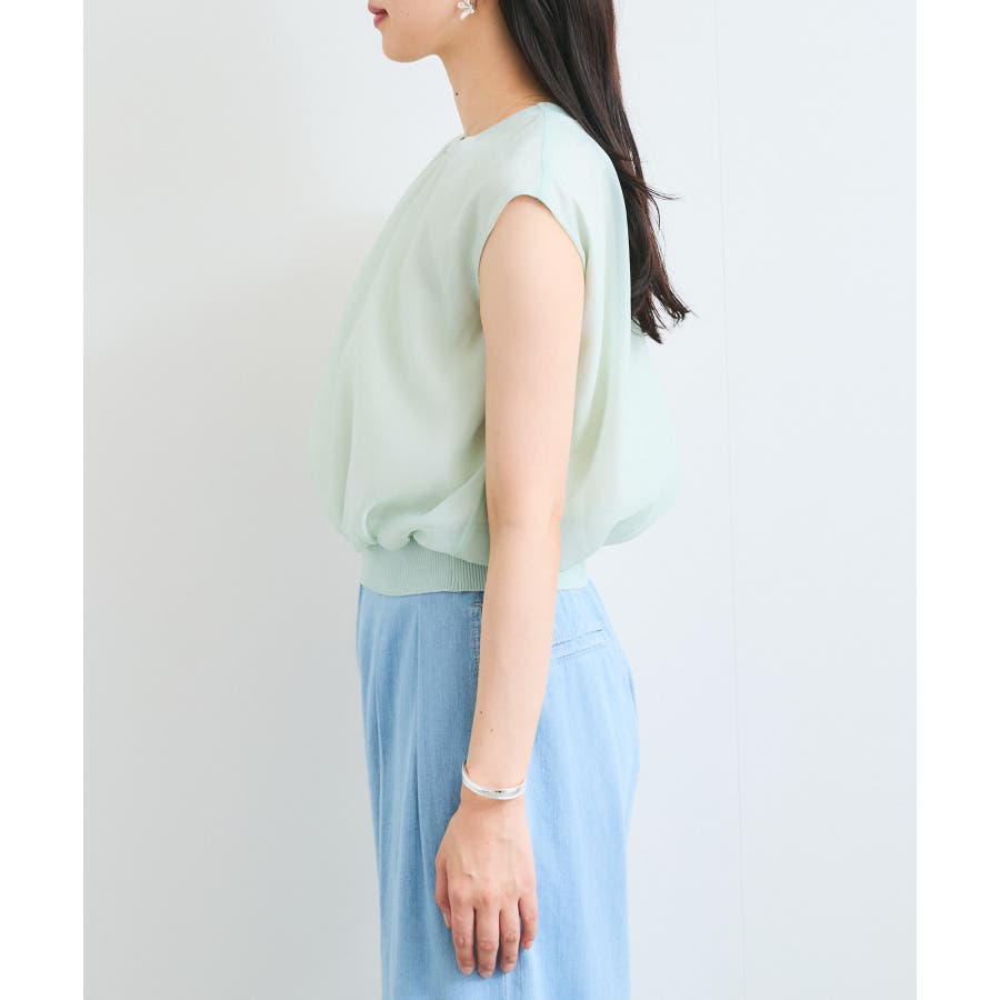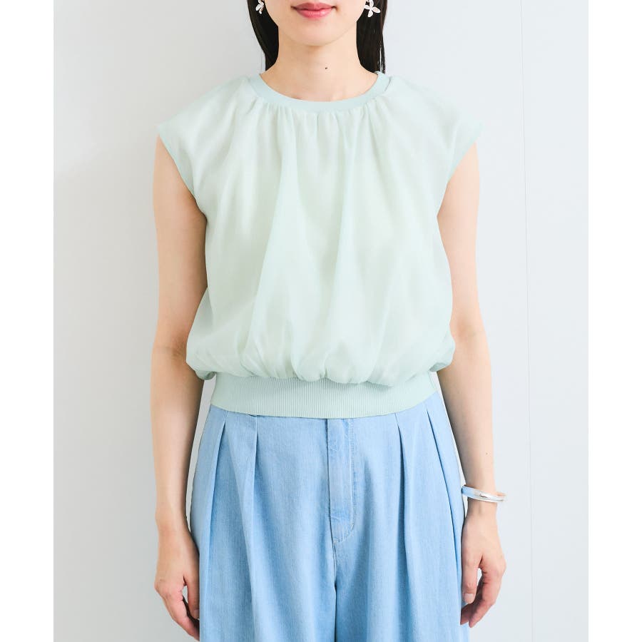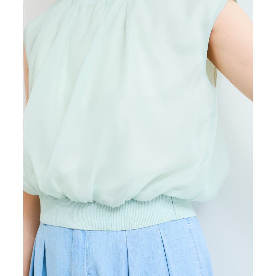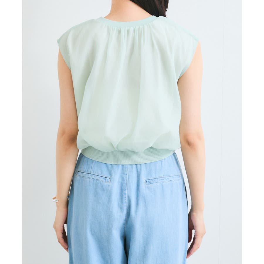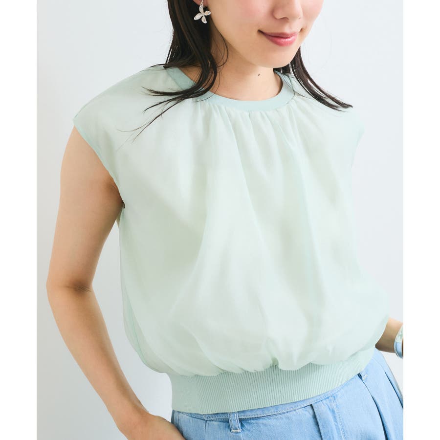 ・シアー素材の透け感と柔らかくふんわりとしたデザインがレディライクな印象に。