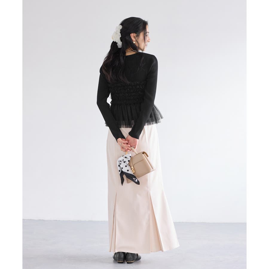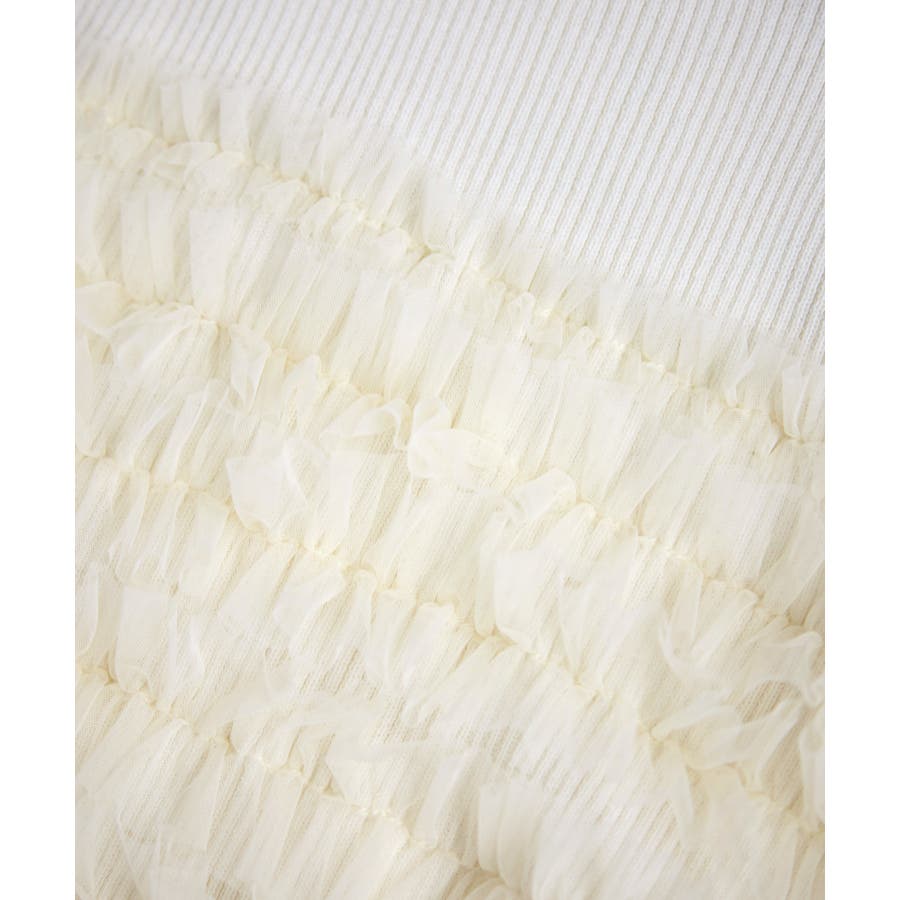さらりとした風合いのリブニットと繊細でソフトなチュール素材を使用しています。