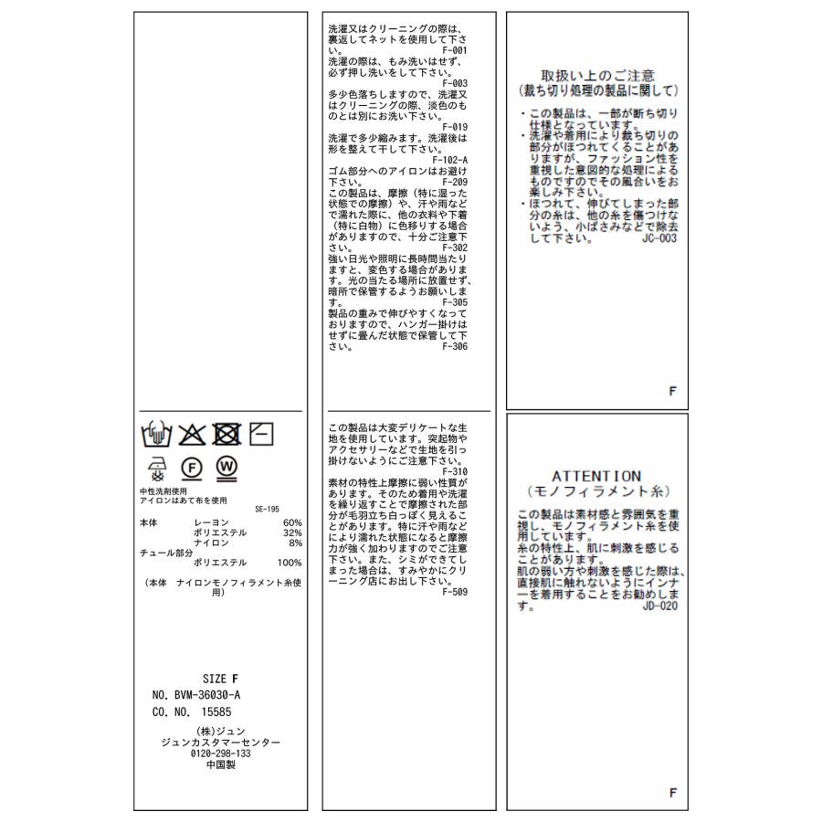 | 素材 | (本体) レーヨン 60% ポリエステル 32% ナイロン 8% (チュール部分) ポリエステル 100% |