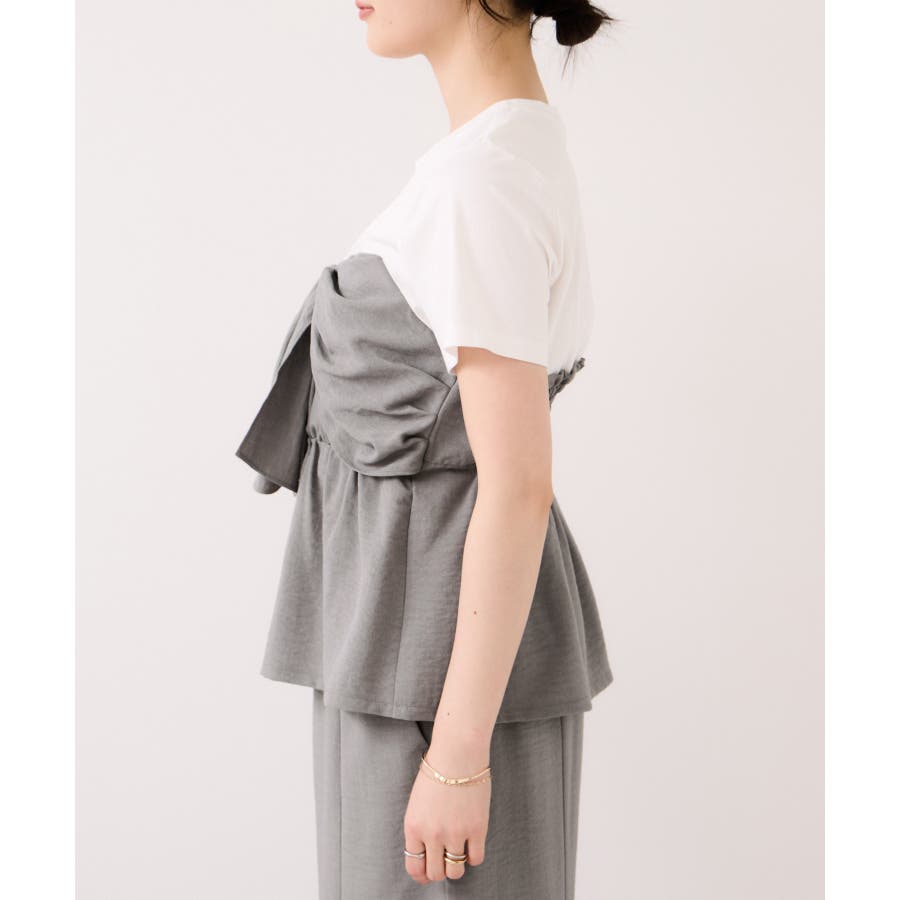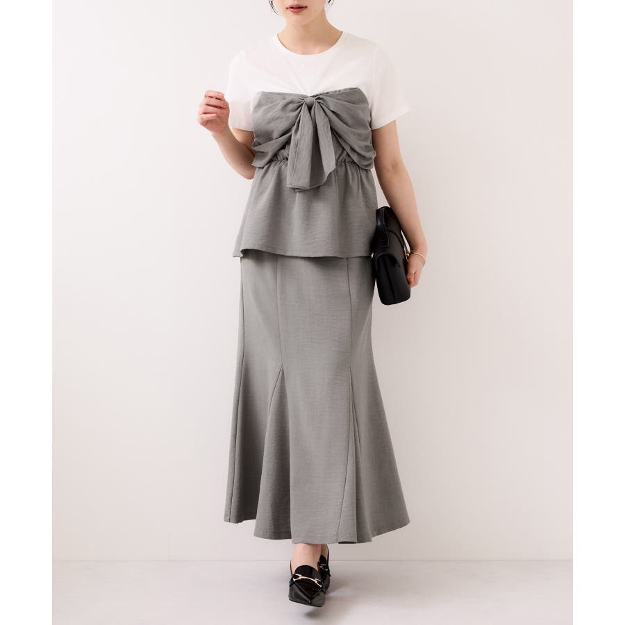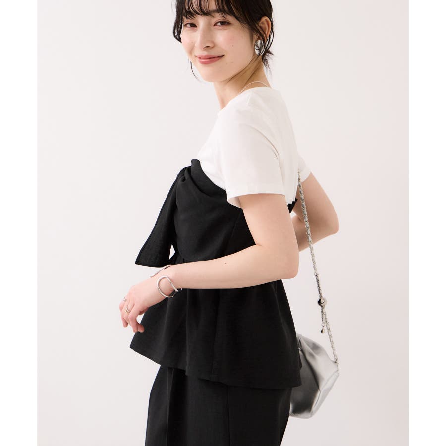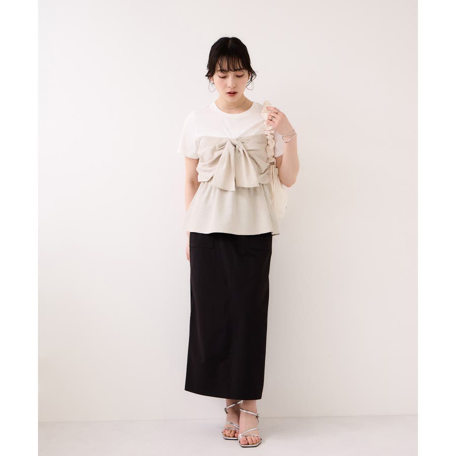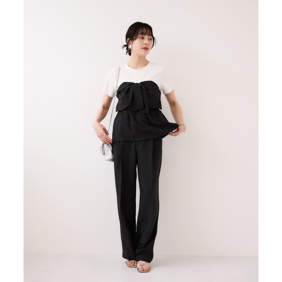 ビスチェ部分の素材は、同素材の美easyシリーズリネンライクのパンツやジャケットの展開もあるので、セットアップとしてのスタイリングが可能です。