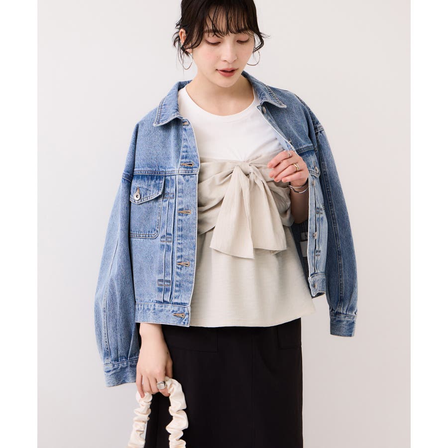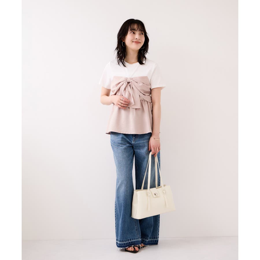 同素材の美easyリネンライクシリーズのワイドパンツ(品番BVS36100)、ジャケット(品番BVV36100)などのセットアップコーディネートがおすすめですが、フレアデニムパンツとのコーディネートも◎!