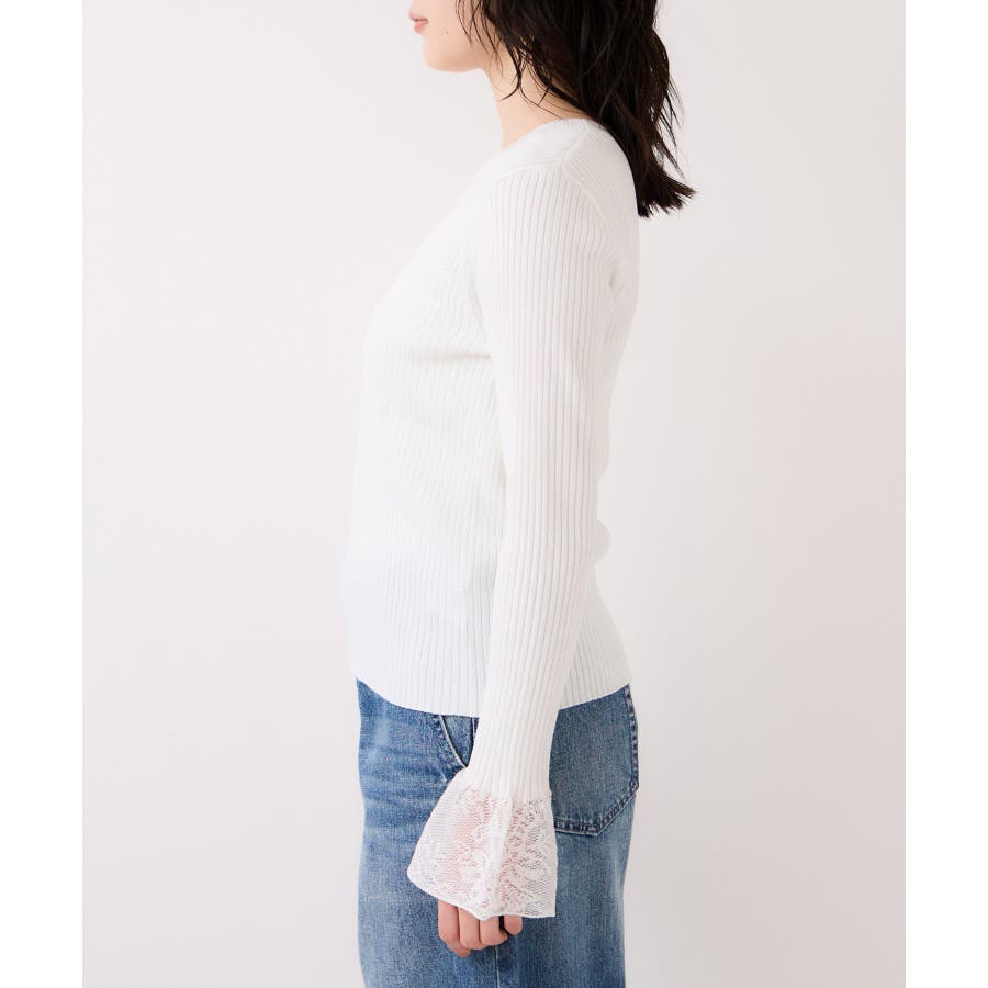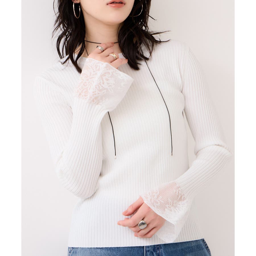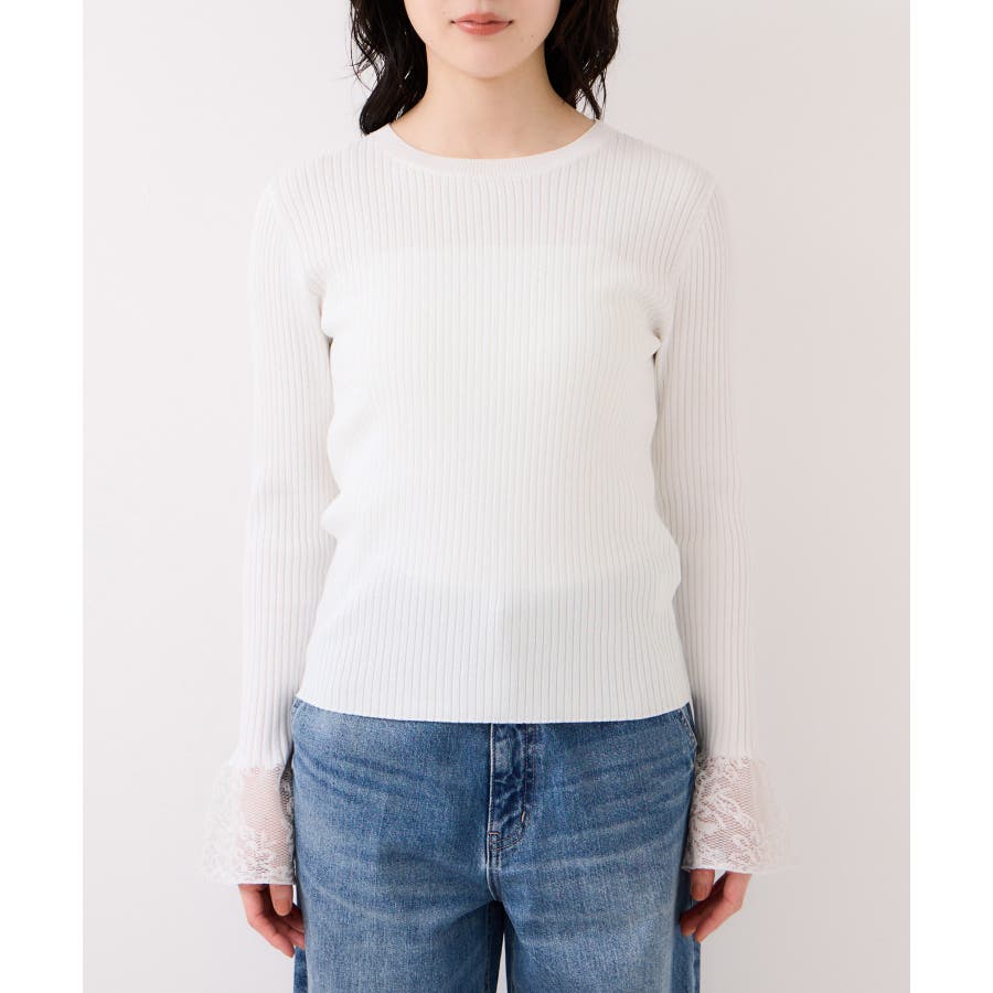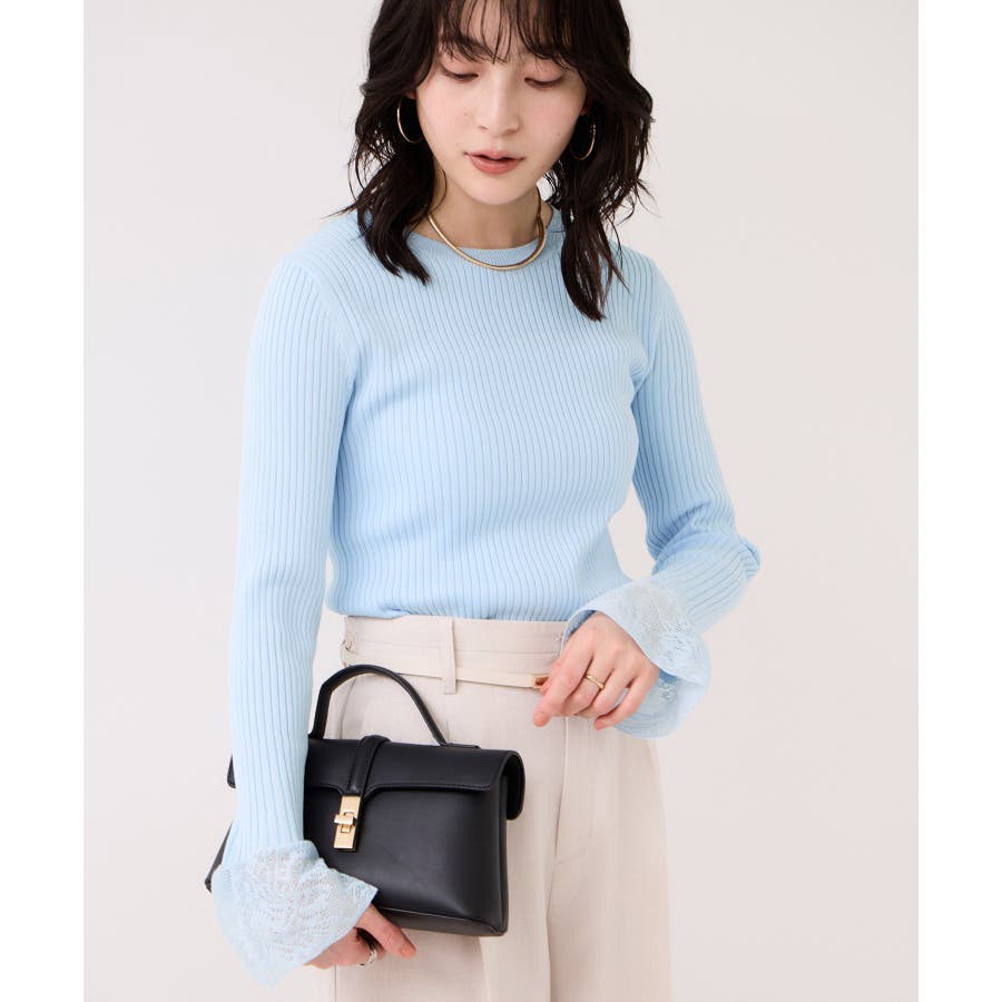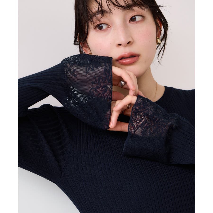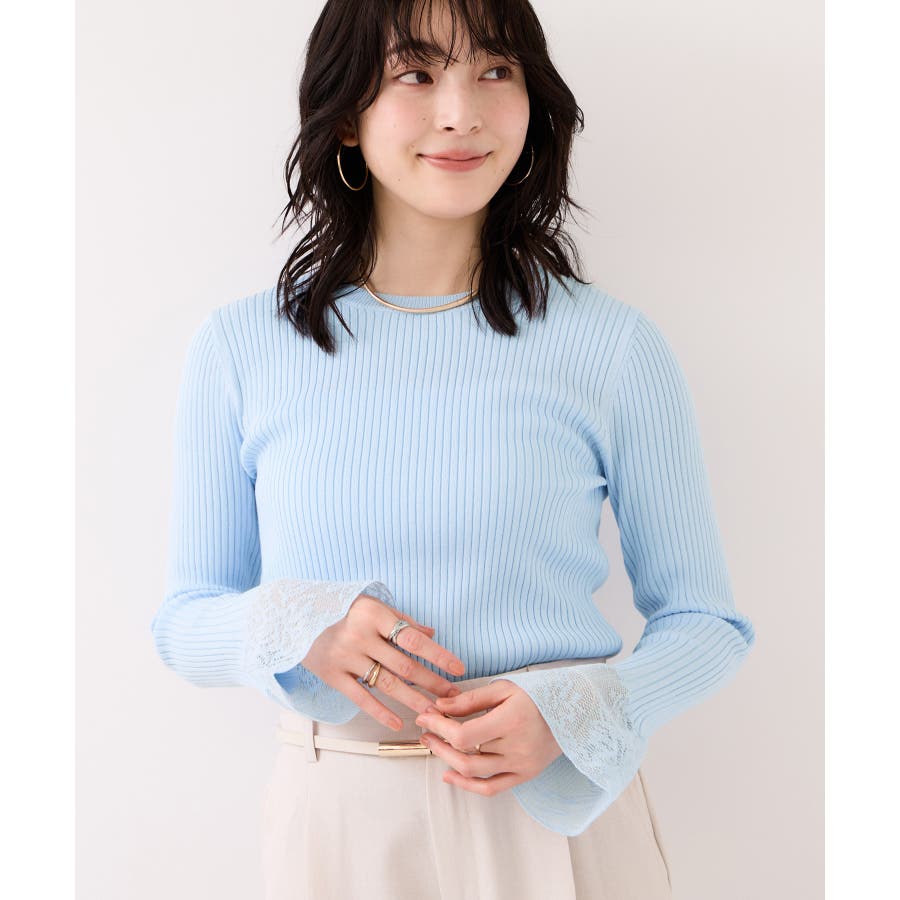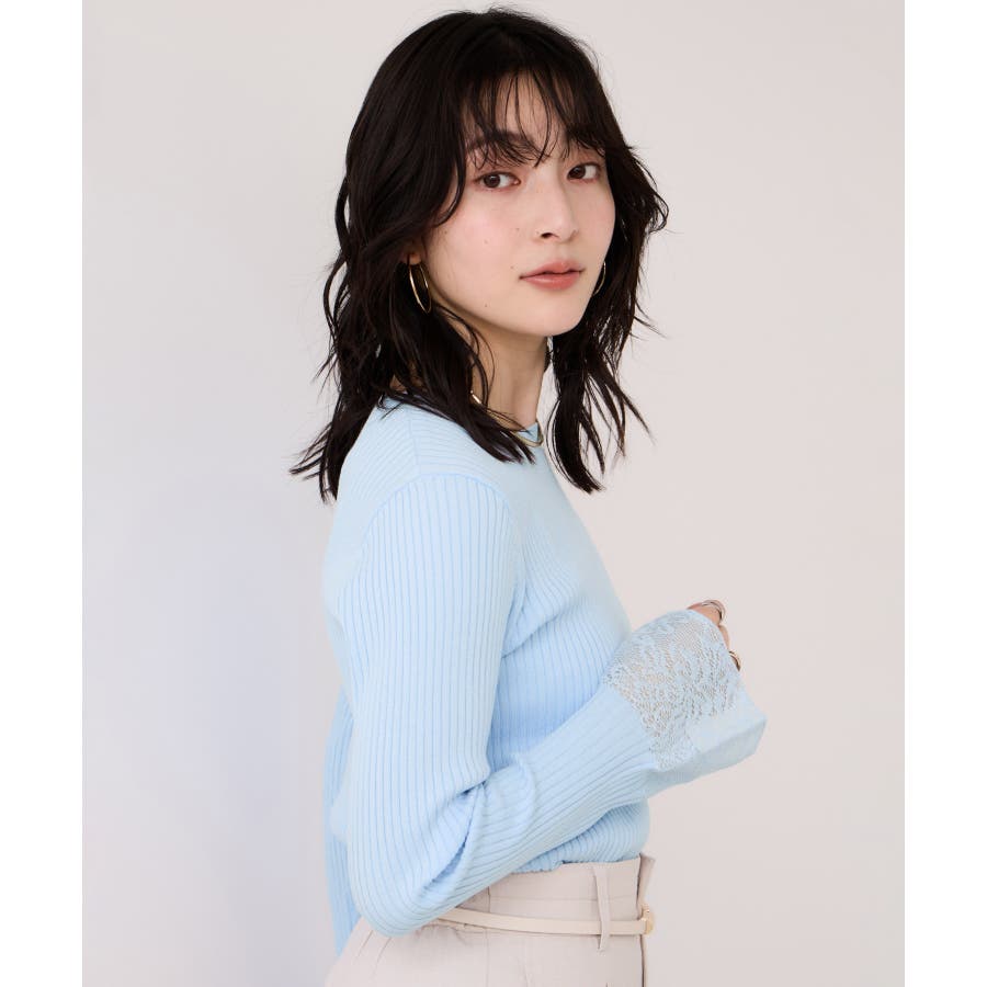 ・袖口のレースがポイントになったシンプルフォルムのニット