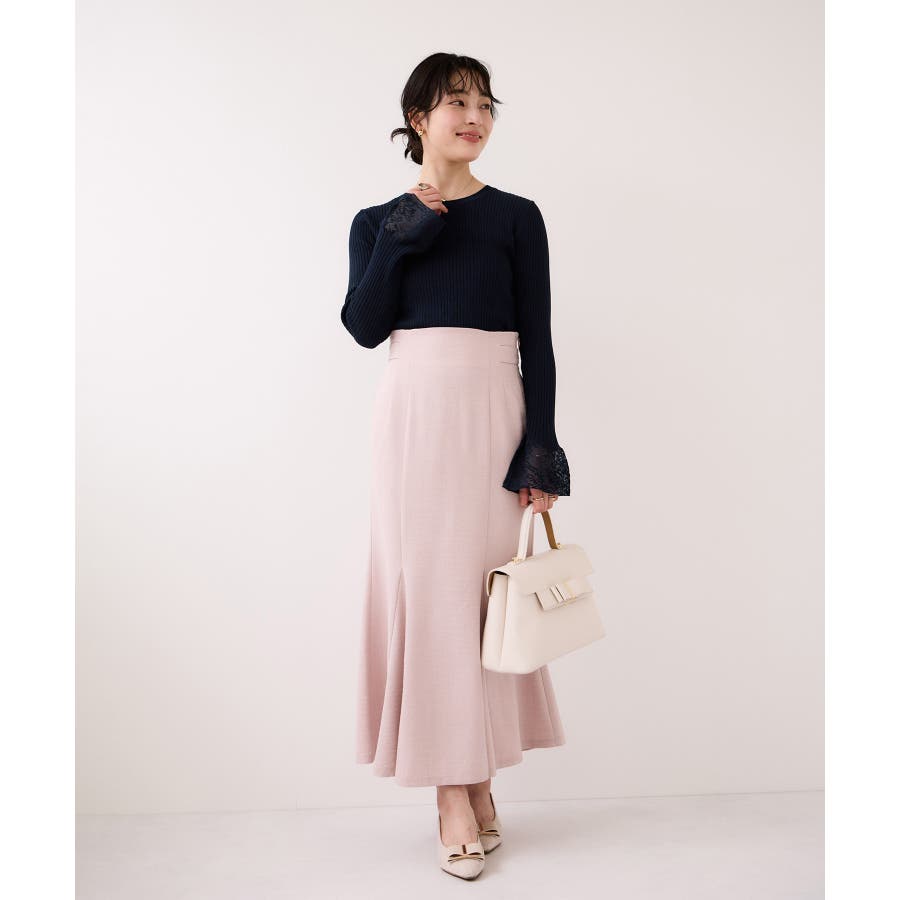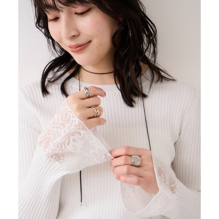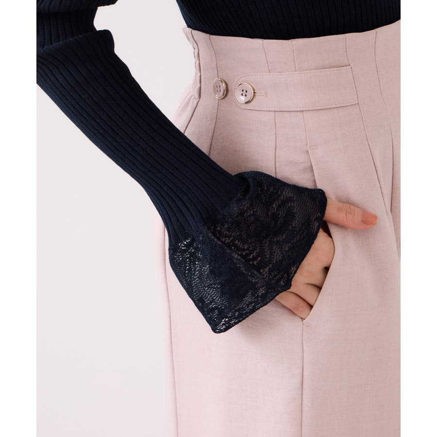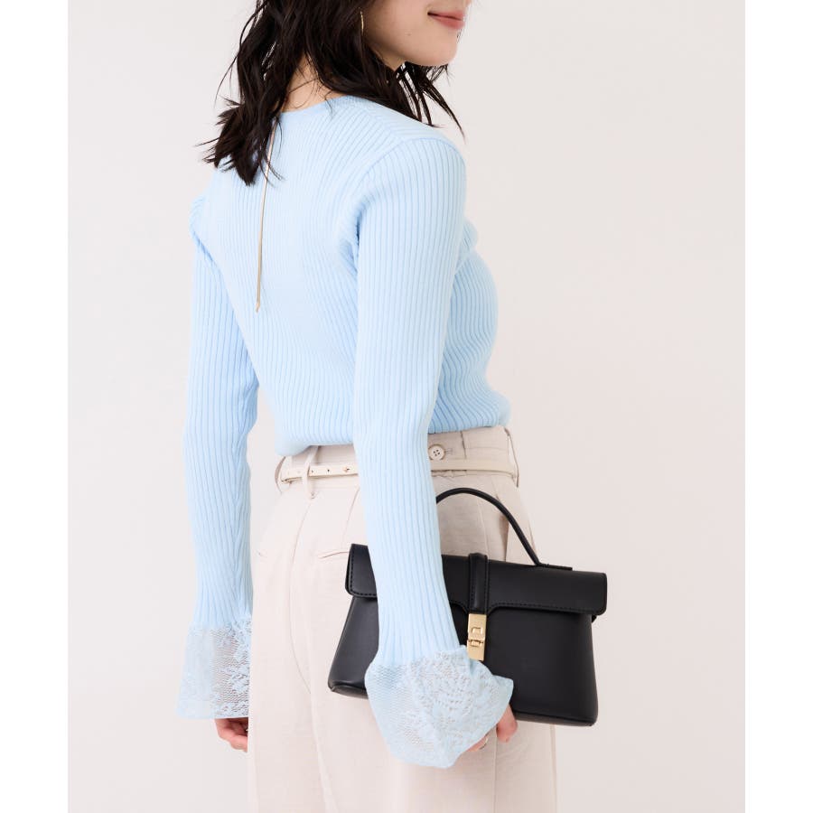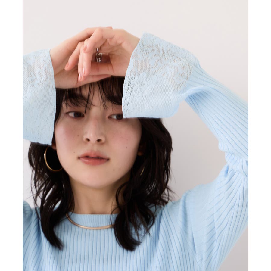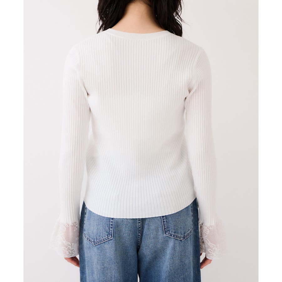 ・袖口のレースがポイントになったシンプルフォルムのニット