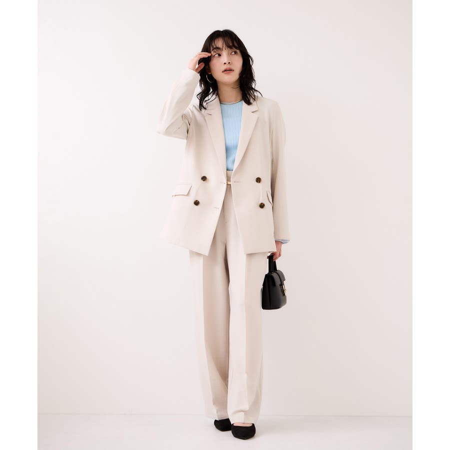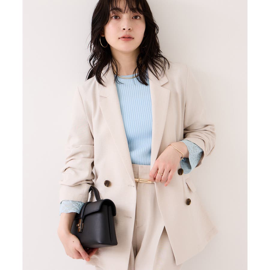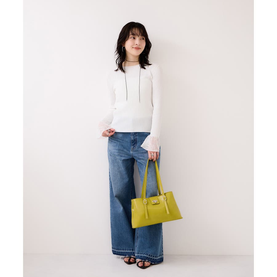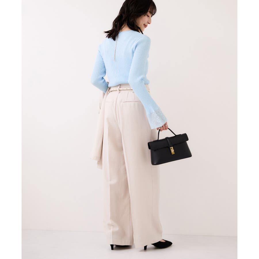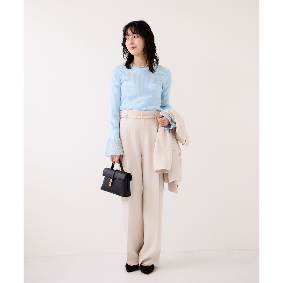 お仕事にはタックパンツを合わせてシャープに着こなしつつ、袖のレースで今年らしい表情を演出するのがおすすめです。