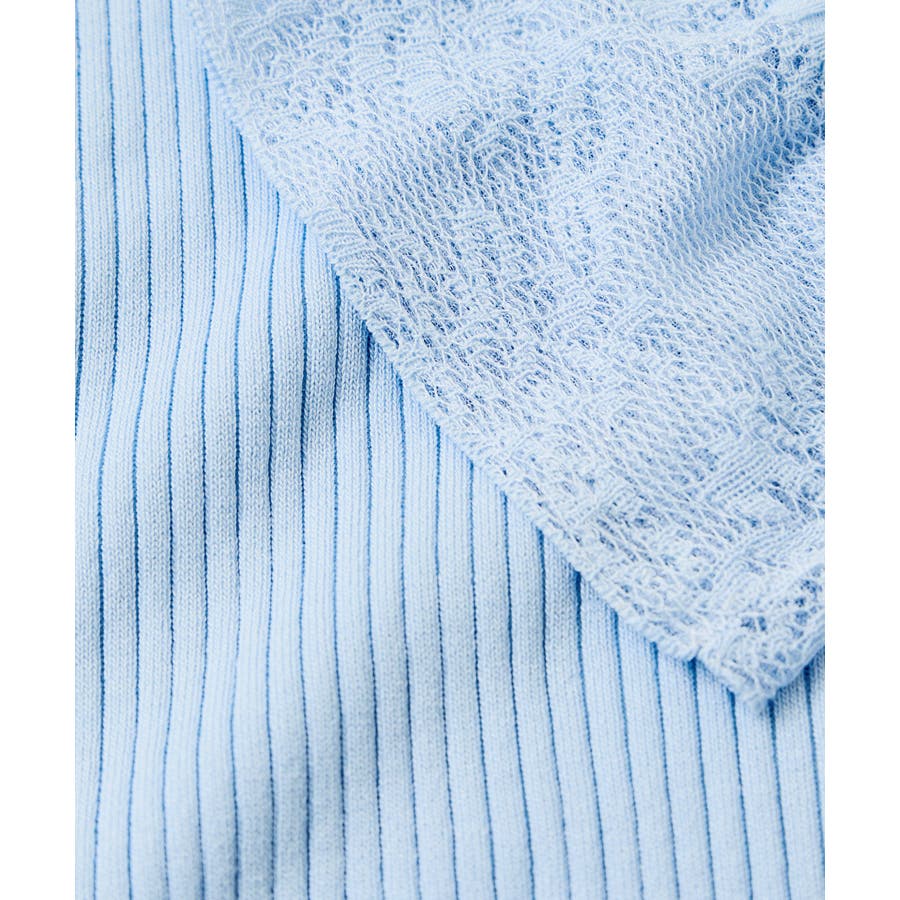 | 素材 | (本体) レーヨン 65% ポリエステル 35% (リブ) レーヨン 80% ポリエステル 20% (レース) レーヨン 70% ポリエステル 30% |