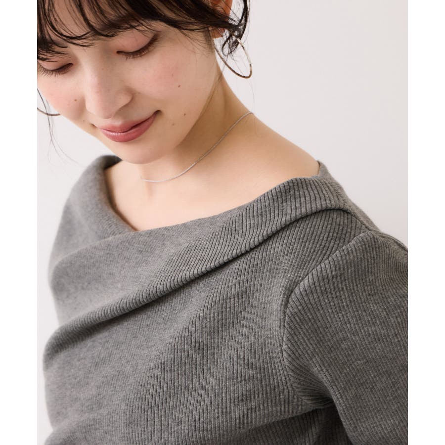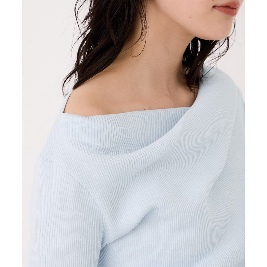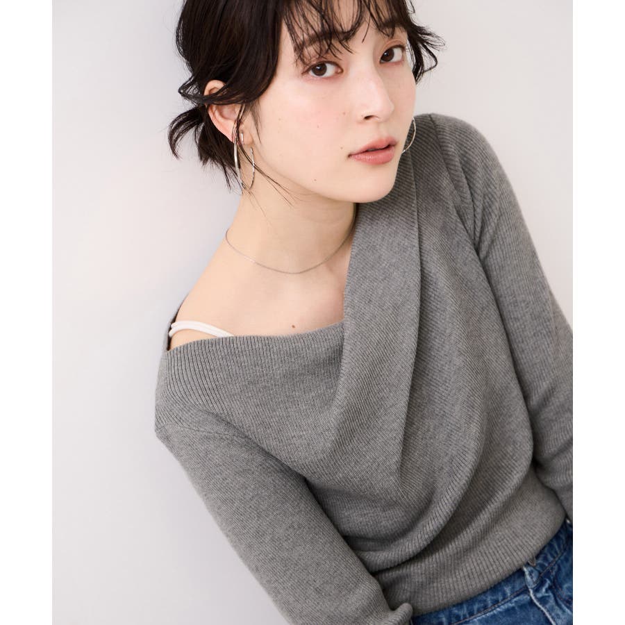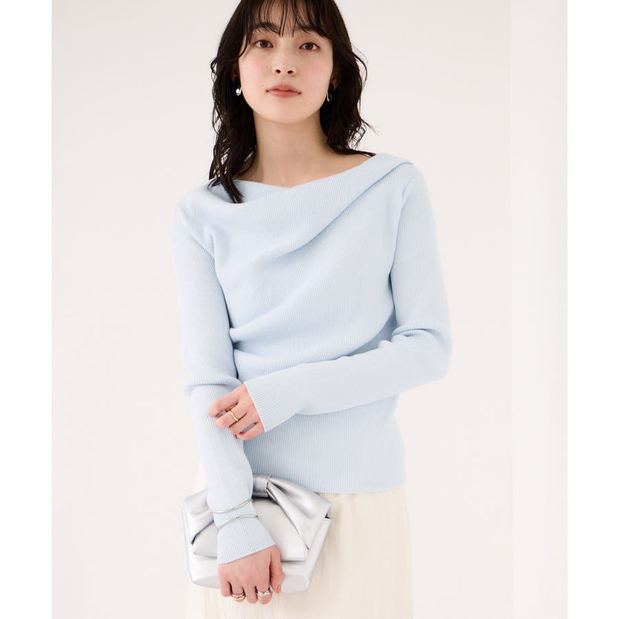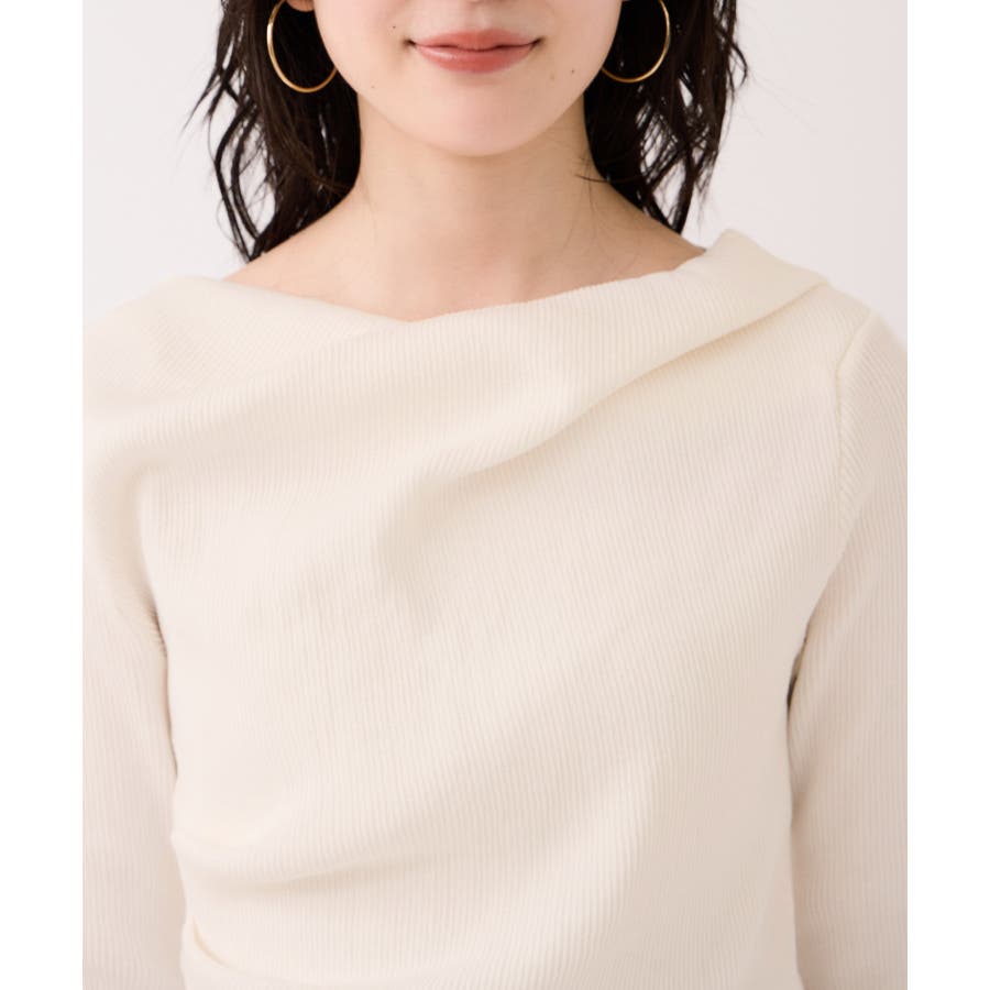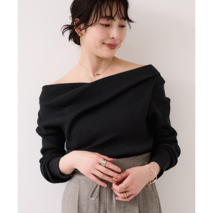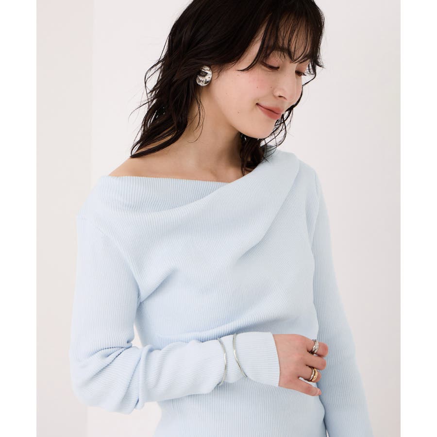 ドレープオフショルダーリブニット/イージーケア