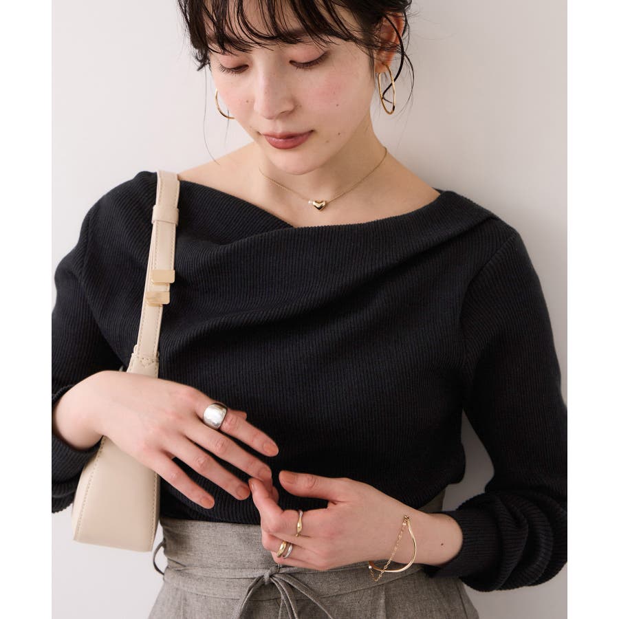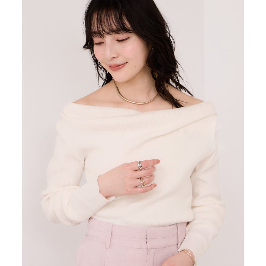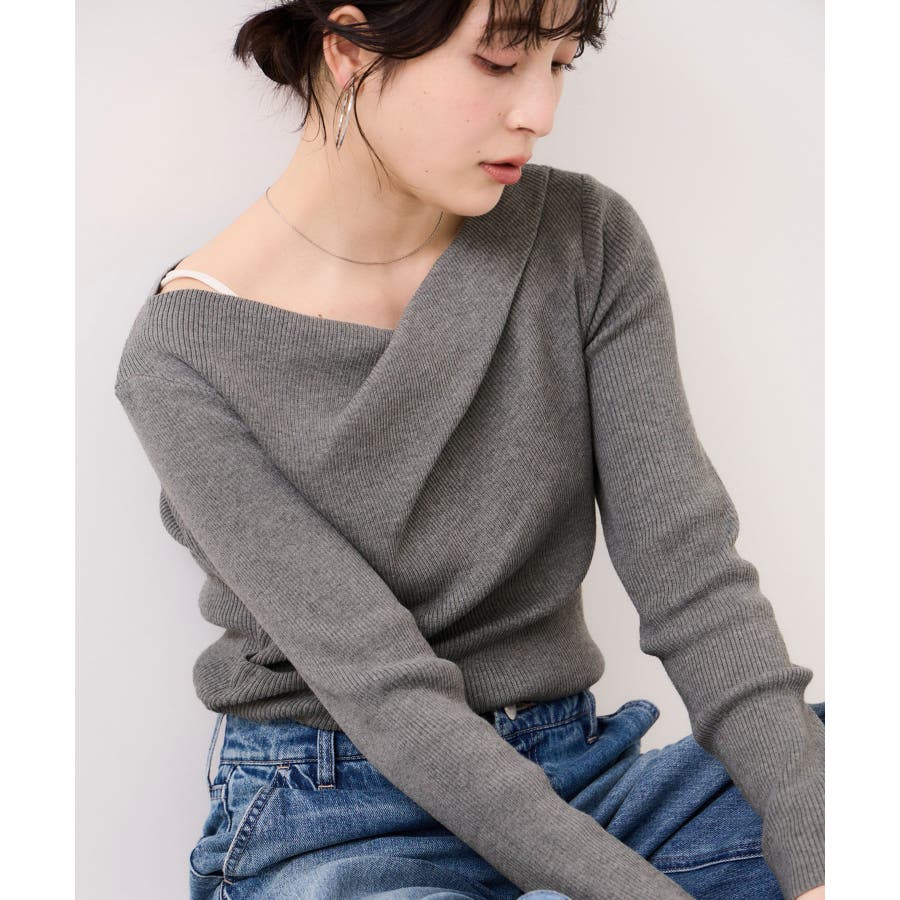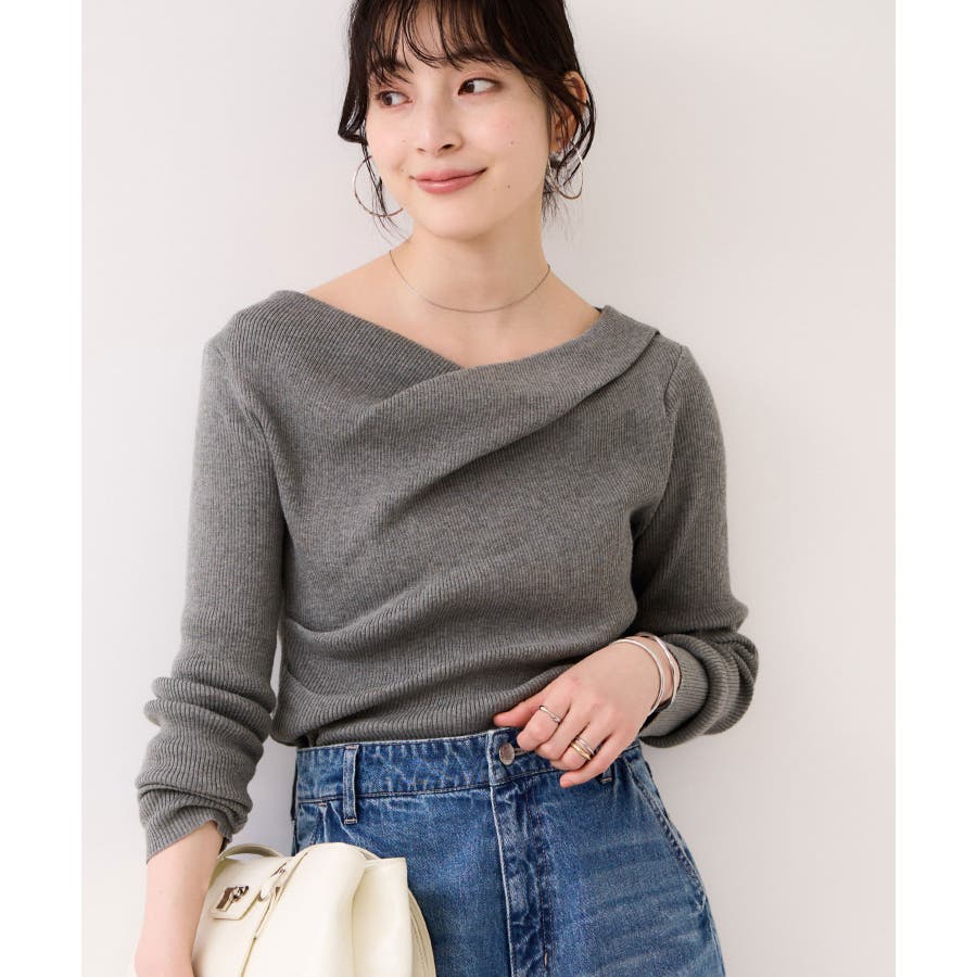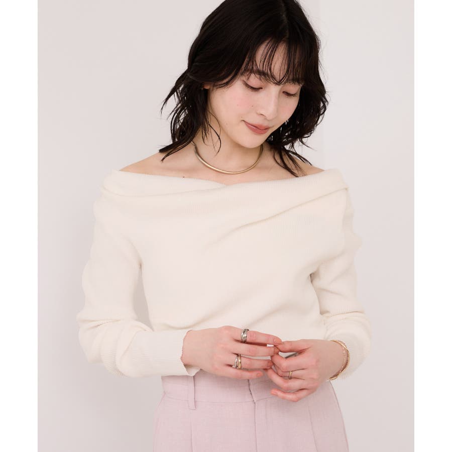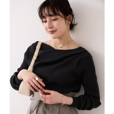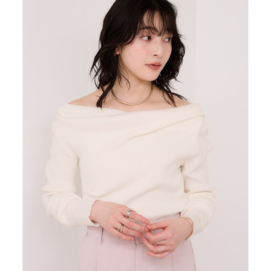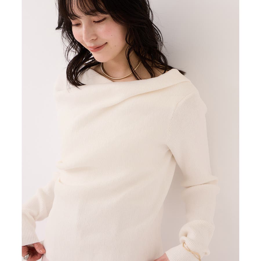ドレープオフショルダーリブニット/イージーケア