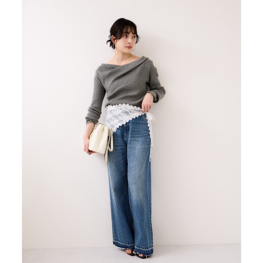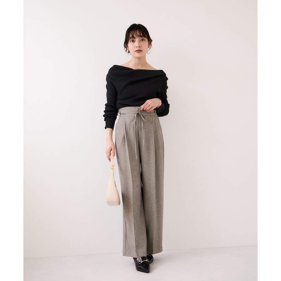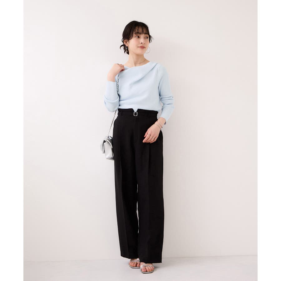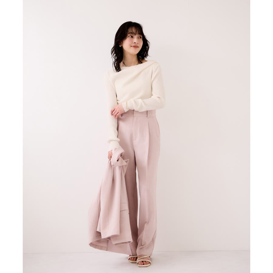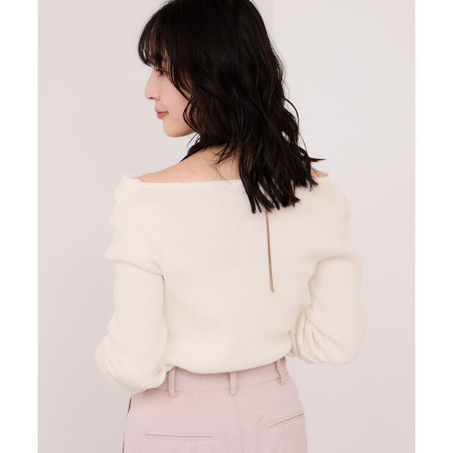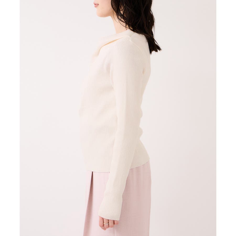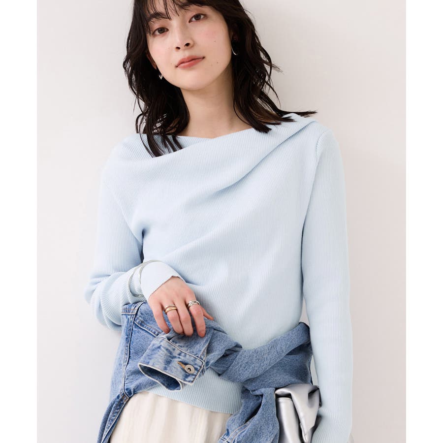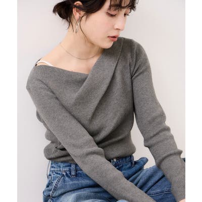 ドレープオフショルダーリブニット/イージーケア