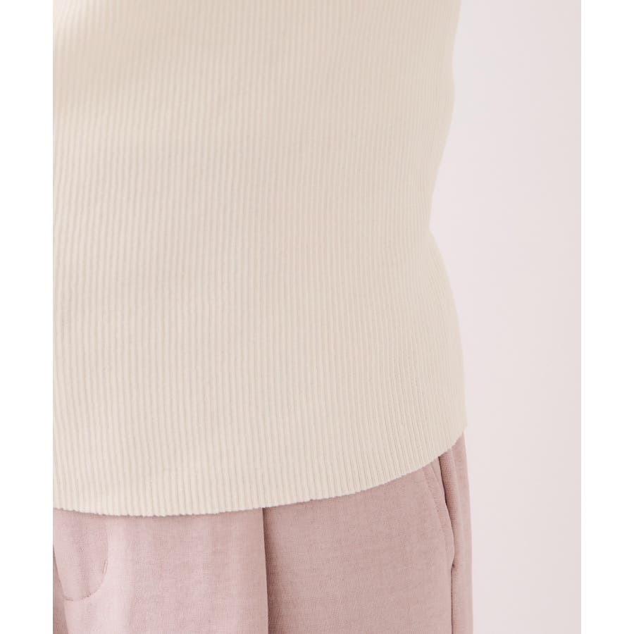 程よい肌見せが抜け感を演出してくれるので、シンプルなスタイリングにもオススメ。ほどよいフィット感でウエストを立体的に作っているので、華奢見えすること間違いなし。柔らかで肌ざわりのいいリブニットは、何度でも着まわしたくなる心地よい素材感。