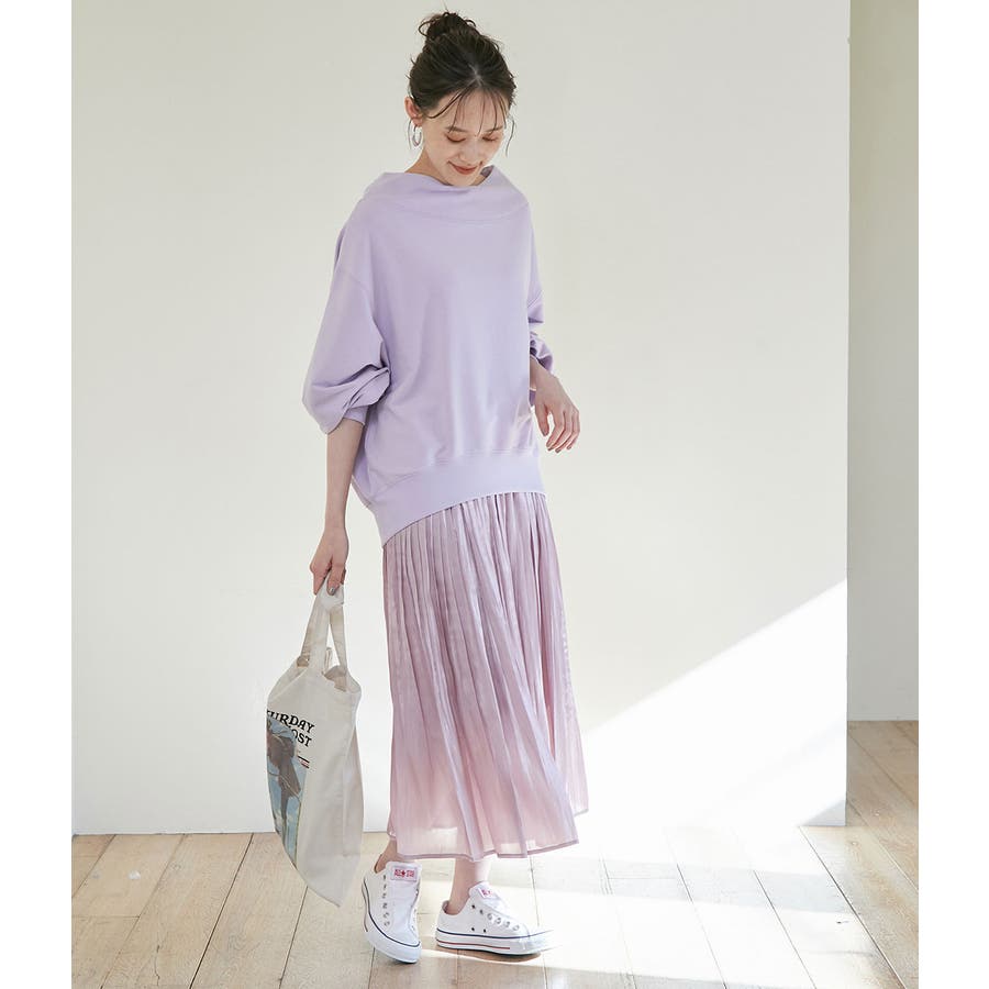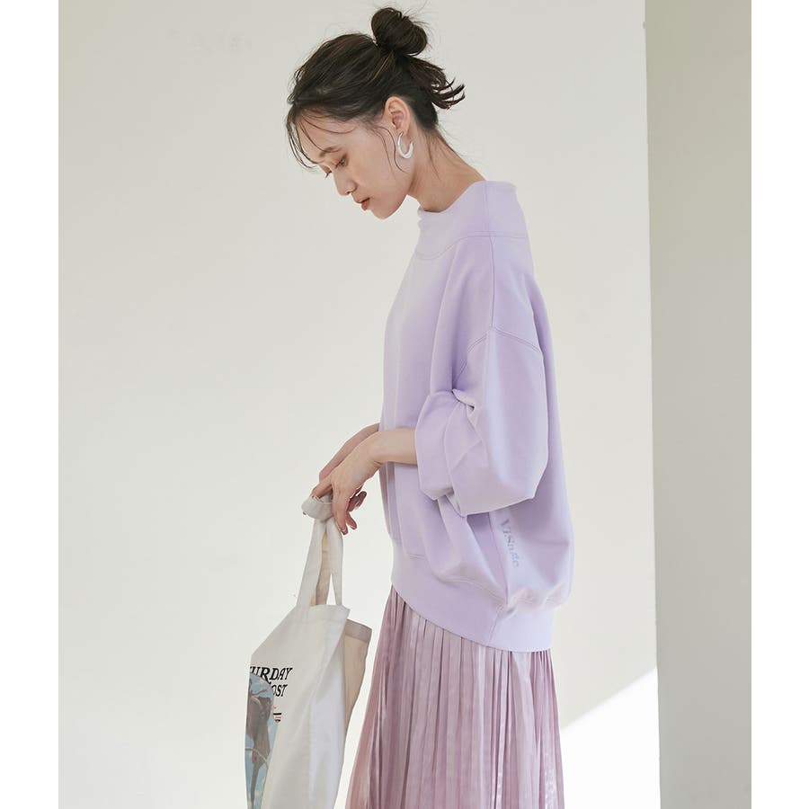 【デザイン・シルエット】 さらっとしたパウダリーな肌ざわりだけでなく、ヒアルロン酸加工でしっとりとした感触のプルオーバー。 よく伸びてノンストレスで着用して頂けるだけでなく、ご家庭でのマシンウォッシュも可能です。 女性らしい鎖骨が少し見え隠れする広めの襟がポイントです。 たっぷりとしたシルエットで、袖も長めにしており大きめの袖から出る指が華奢に見えるようにしました。 丈は程よく短めで後ろを長くしているので、お家でまったり過ごす時にも安心して着用出来ます。 後ろ身頃の左脇に縦に「ViSage」のロゴが入っています。 【素材】 ヒアルロン酸加工でしっとりとした肌触り。 【カラー】 柔らかなイメージの春カラー3色。 【おすすめのスタイリング】 同素材のジョグパンツ(BVS41010)とセットアップで着用できます。 同シリーズのサテンジョグパンツ(BVS41020)やニットスカート(BVC41020)との合わせもおすすめです。 ----------------------------- 裏地:なし 光沢感:なし 透け感:なし ポケット:なし 伸縮性:あり 生地の厚さ:やや厚手 ----------------------------- 【モデル着用サイズ】 全色モデル身長:166cm、着用サイズ:F ※画像の商品はサンプルです。 実際の商品と仕様、加工、サイズが若干異なる場合がございます。 ※室外で撮影している画像は、光の影響で色味が若干異なって見える場合がございます。