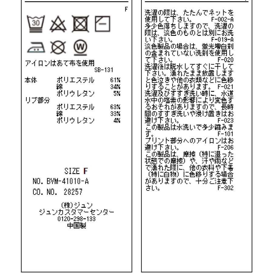 素材 | ホワイト(10):(本体) ポリエステル 61% 綿 34% ポリウレタン 5% (リブ部分) ポリエステル 63% 綿 33% ポリウレタン 4%|ラベンダー系(53):(本体) ポリエステル 61% 綿 34% ポリウレタン 5% (リブ部分) ポリエステル 63% 綿 33% ポリウレタン 4%|イエロー系(81):(本体) ポリエステル 61% 綿 34% ポリウレタン 5% (リブ部分) ポリエステル 63% 綿 33% ポリウレタン 4% |