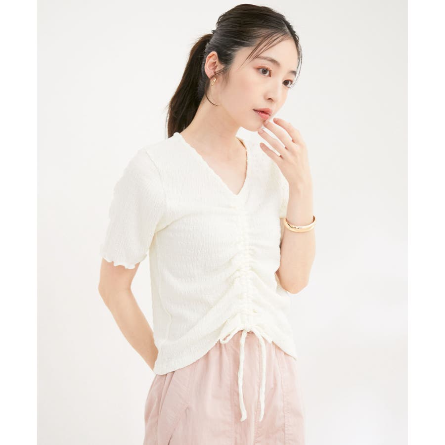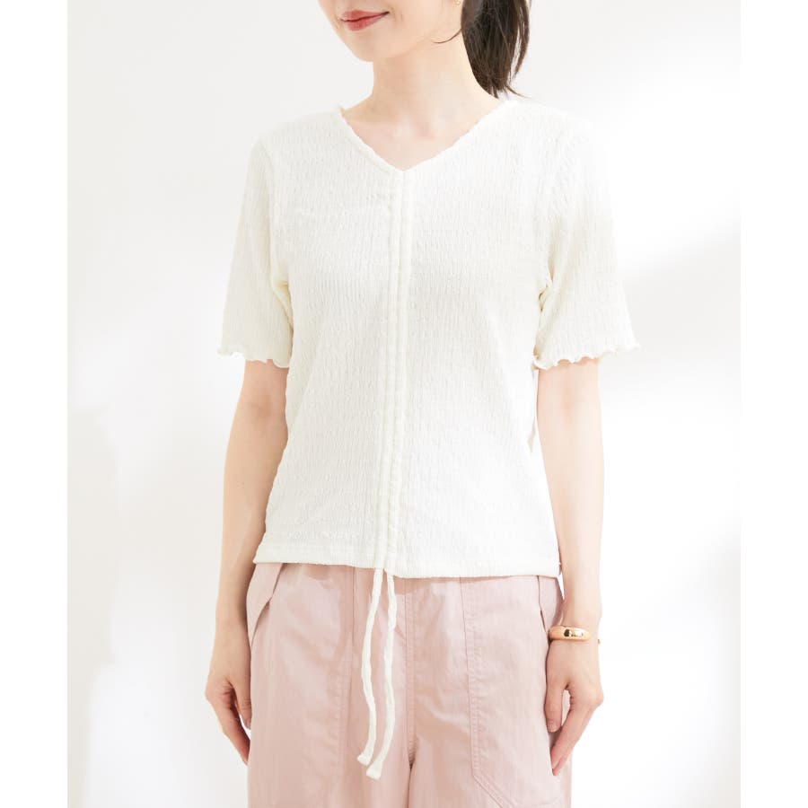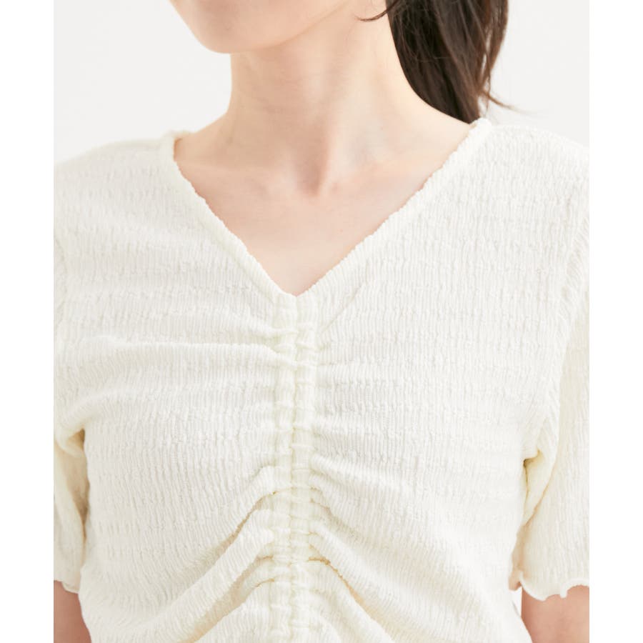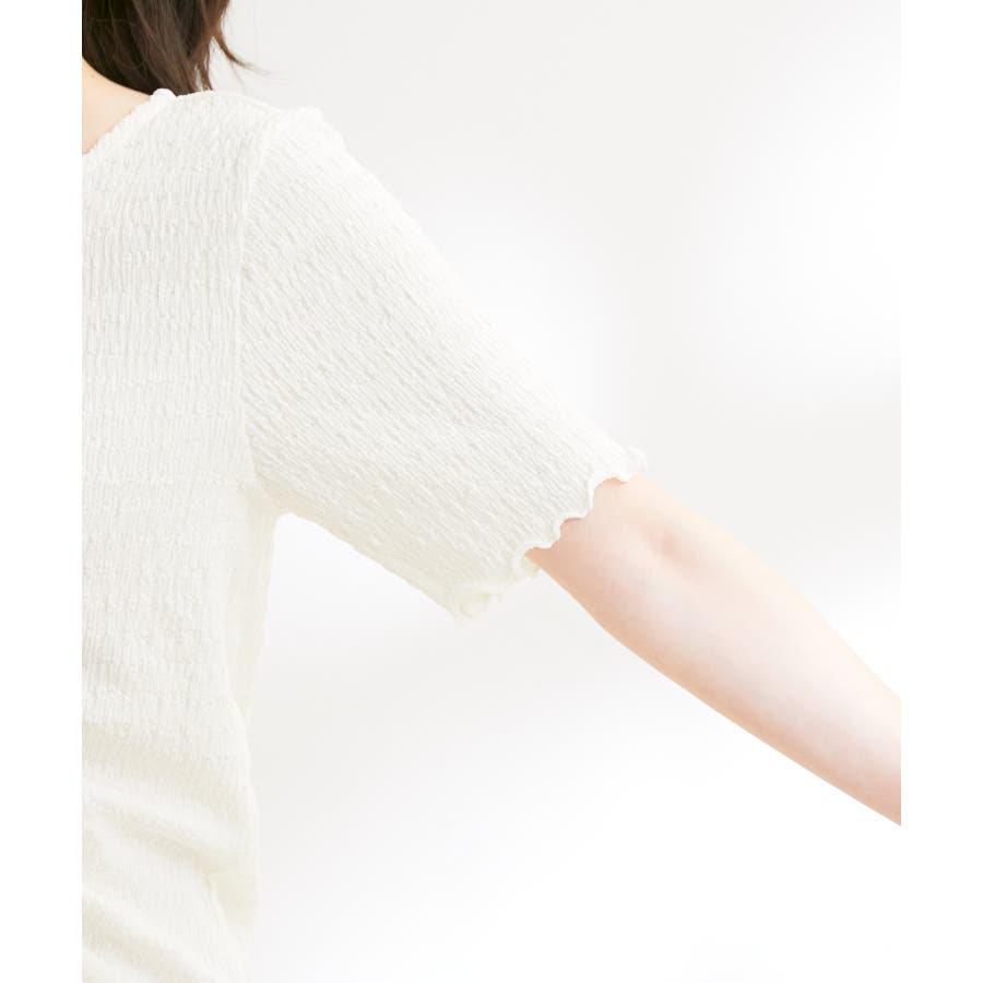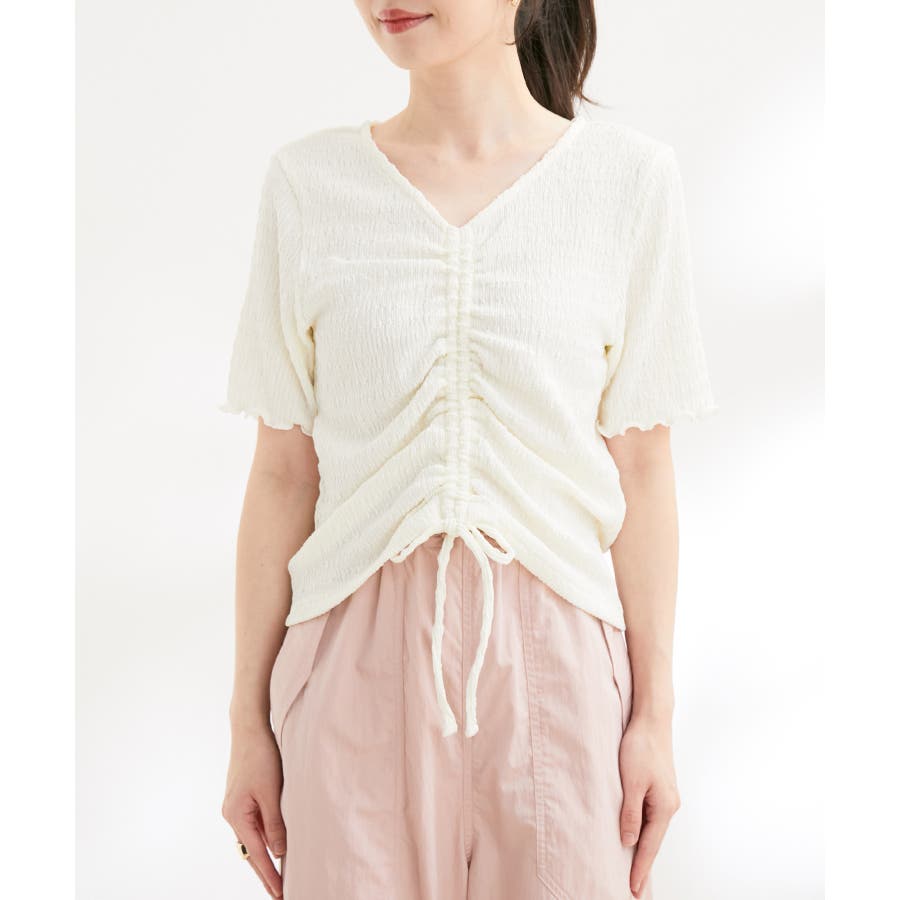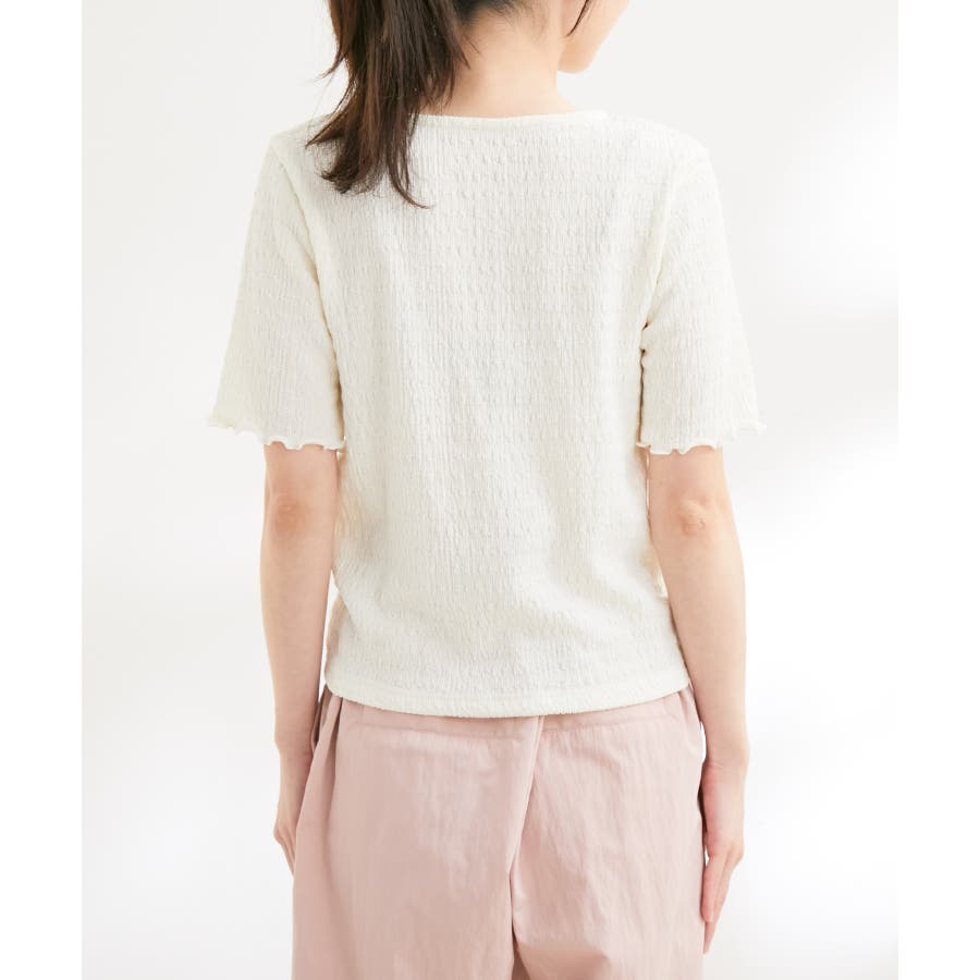 【洗える】ぽこぽこフロントシャーリングカットソー