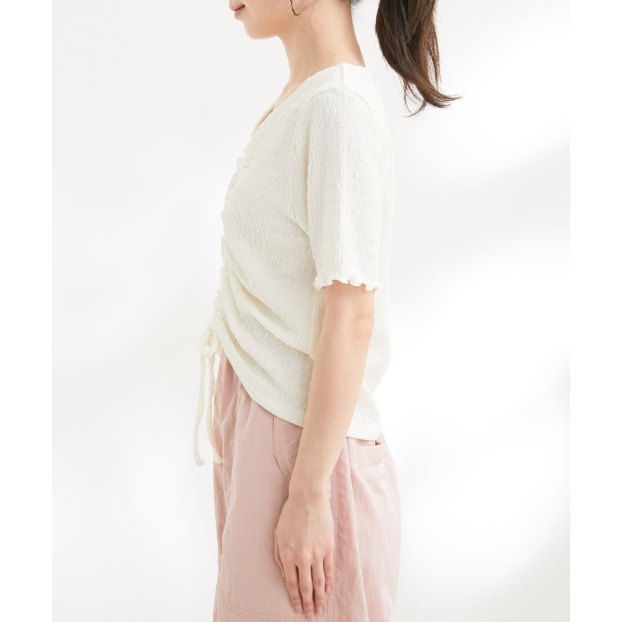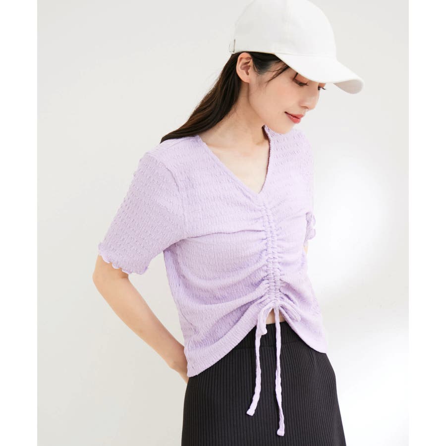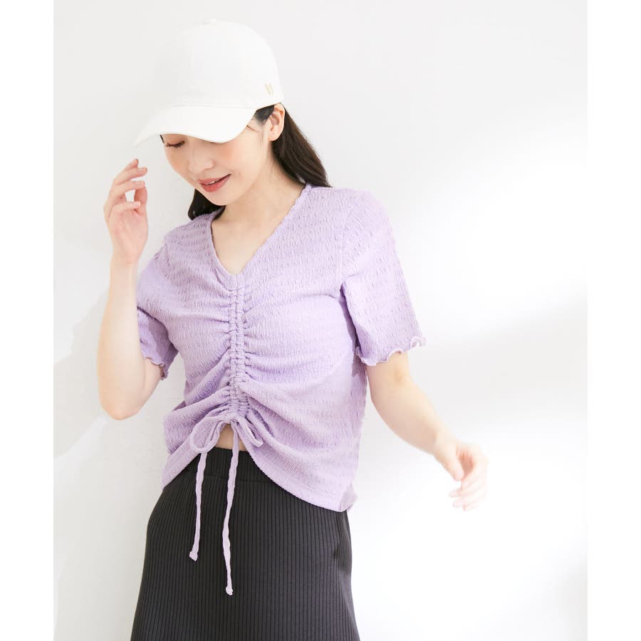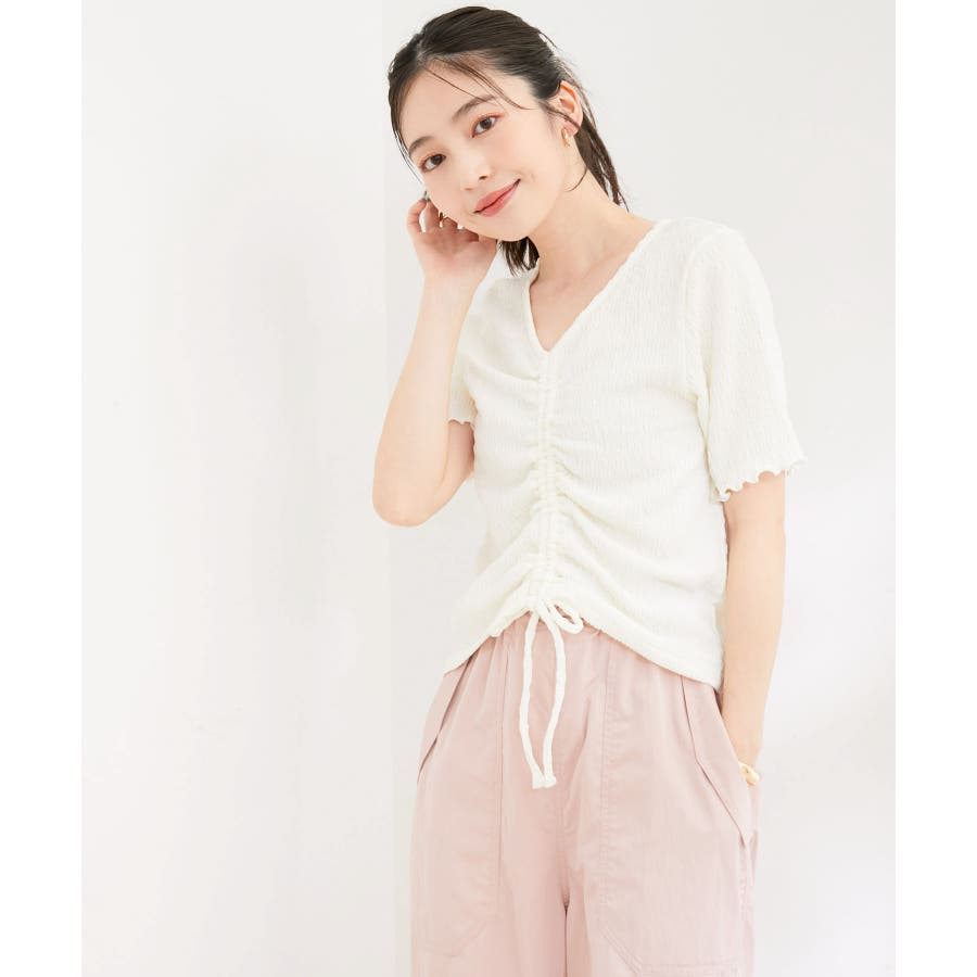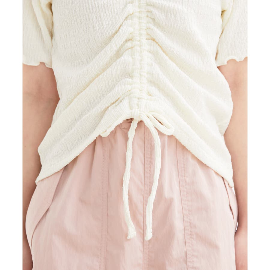 【洗える】ぽこぽこフロントシャーリングカットソー