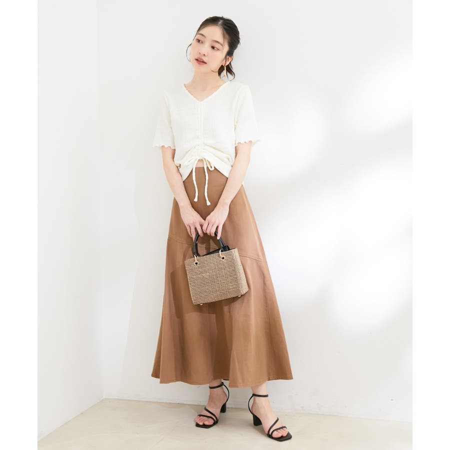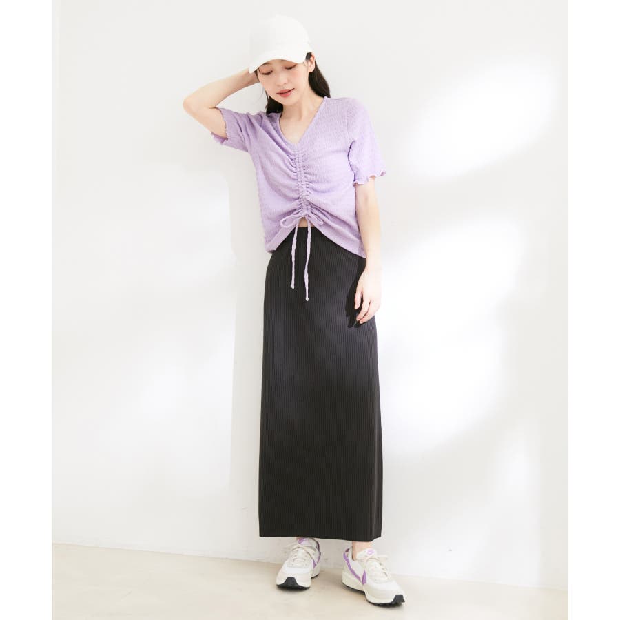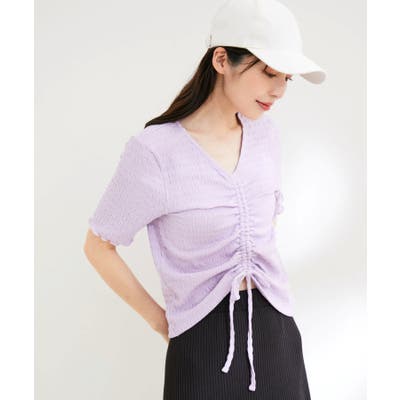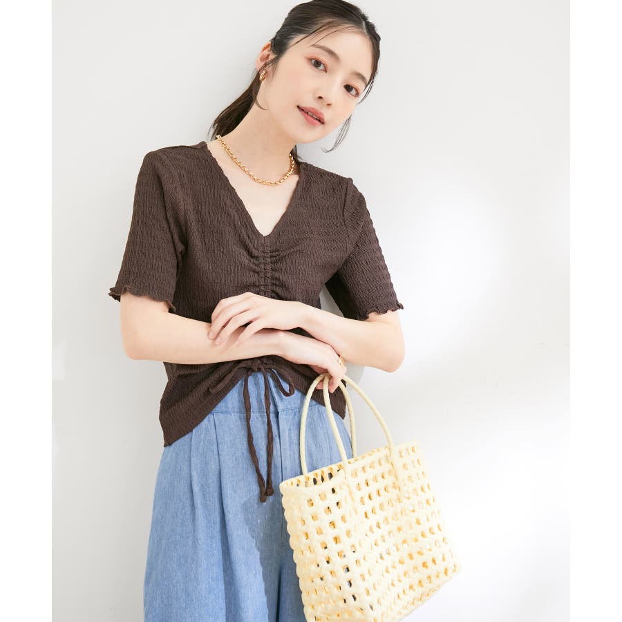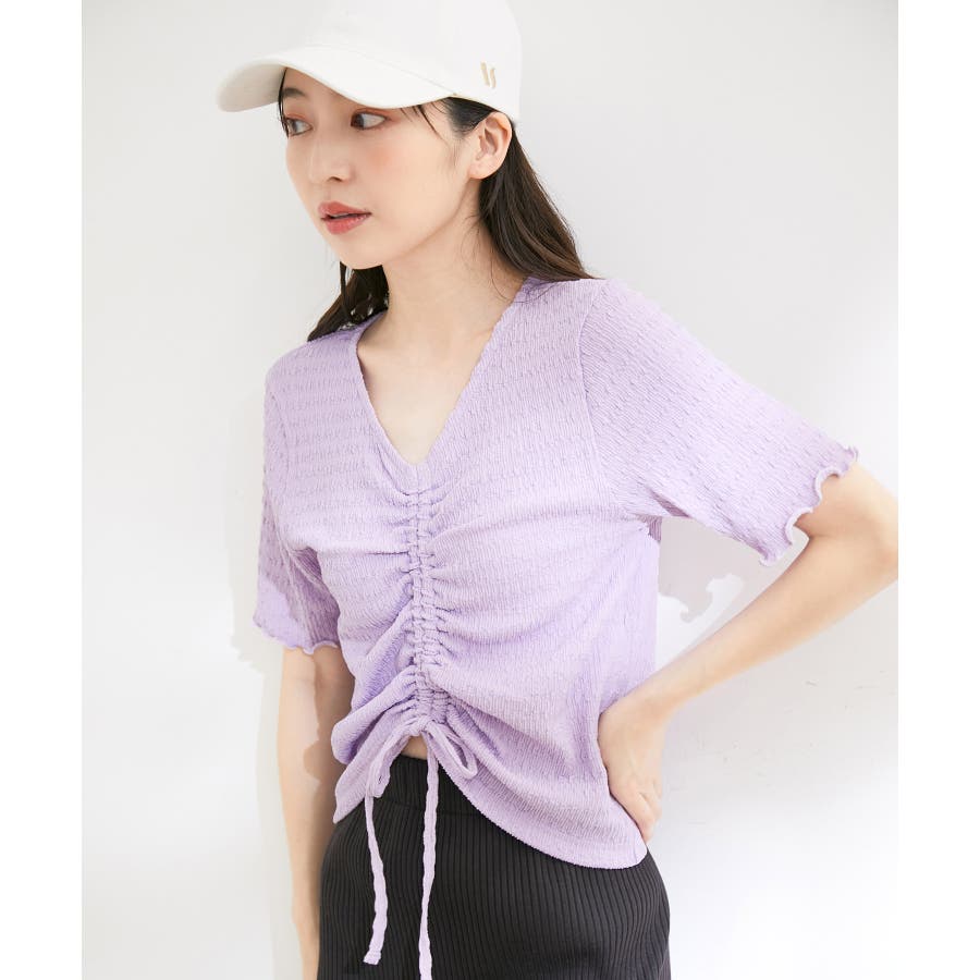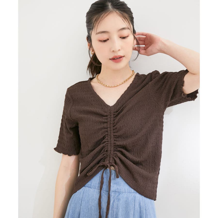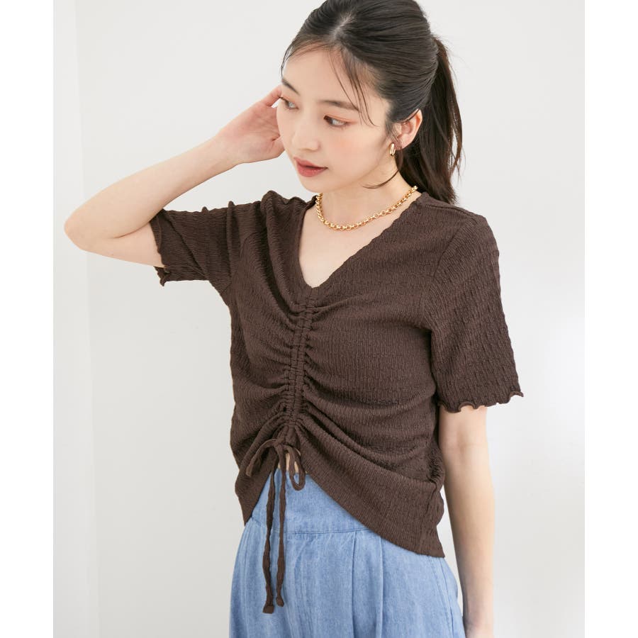 【洗える】ぽこぽこフロントシャーリングカットソー