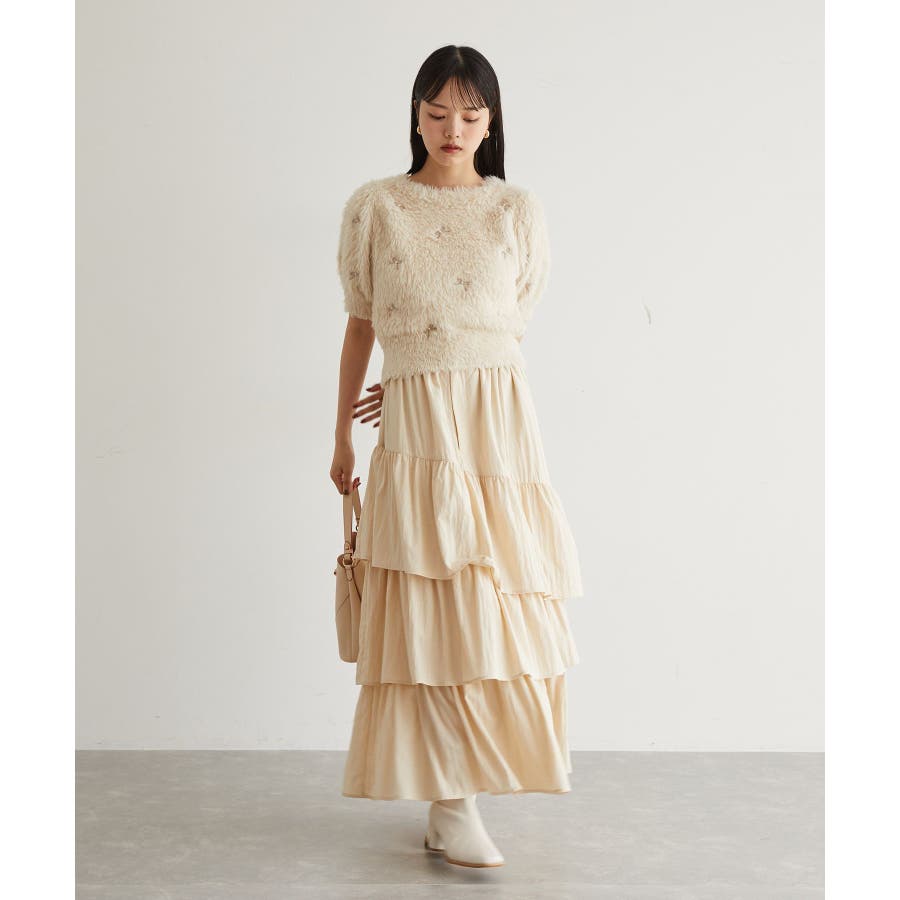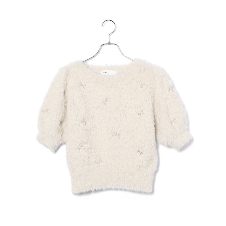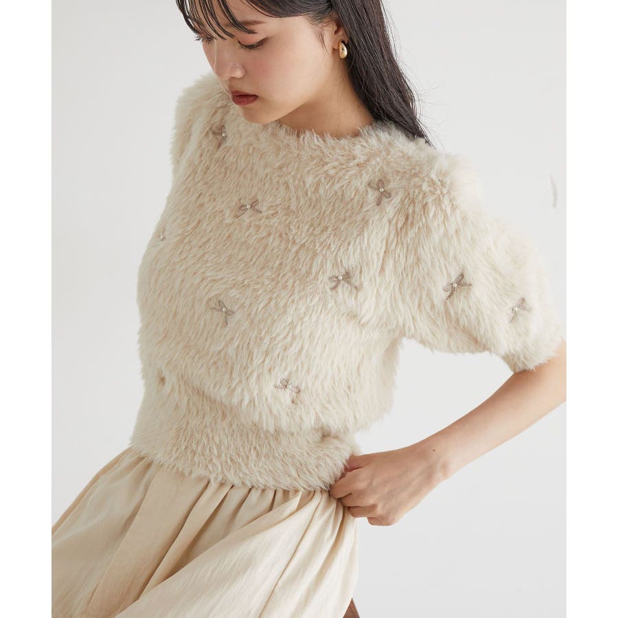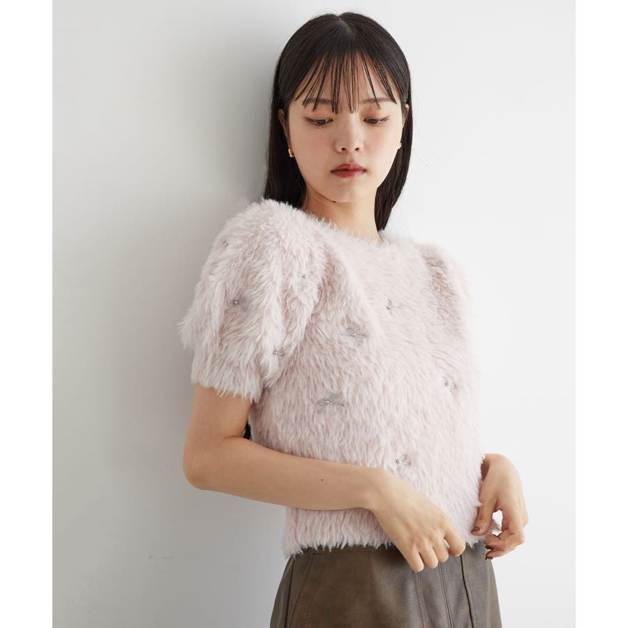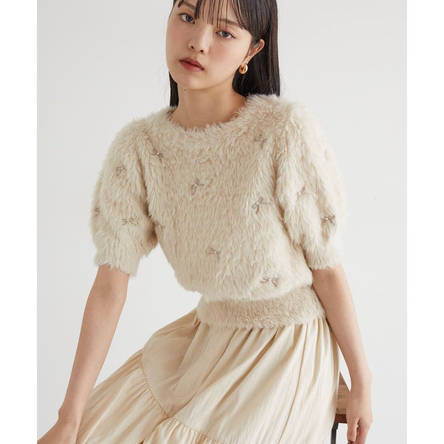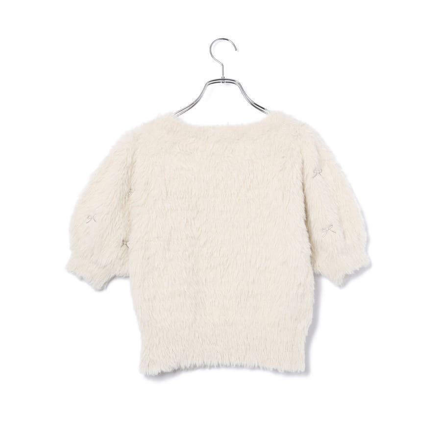 ◆2024-25 秋冬◆ 【デザイン・シルエット】 今シーズンのトレンドでもあるリボンモチーフを刺繍にして、キラリと光るメタルビーズを施した大人フェミニンなパフスリーブニットです。 秋冬の気分を早くコーディネートに取り入れたい方にとてもおススメです。 【素材】 柔らかくて着心地の良い毛足のあるフェザーヤーンを使用しています。 【カラー】 おとなシックなブラック、フェミニンなアイボリー、ピンクの3色展開です。 【おすすめのスタイリング】 ショートパンツにロングブーツとのあわせが大人フェミニンスタイルにぴったりです。 ----------------------------- 裏地:なし 光沢感:なし 透け感:なし 伸縮性:あり 生地の厚さ:やや厚手 季節:秋、冬 ----------------------------- 【モデル着用サイズ】 全色モデル身長:163cm、着用サイズ:F ※画像の商品はサンプルです。 実際の商品と仕様、加工、サイズが若干異なる場合がございます。 ※重量はサンプルFサイズの測量になります。サイズによって多少異なる場合があります。 ※画像によっては実際の色味と異なる場合があります。正しい色味は生地アップ画像をご確認ください。
