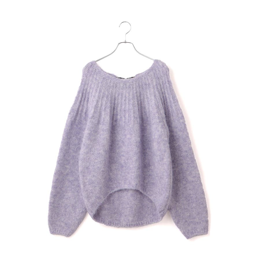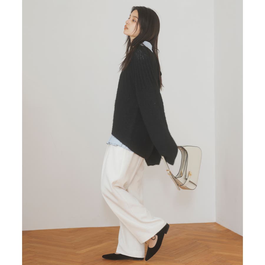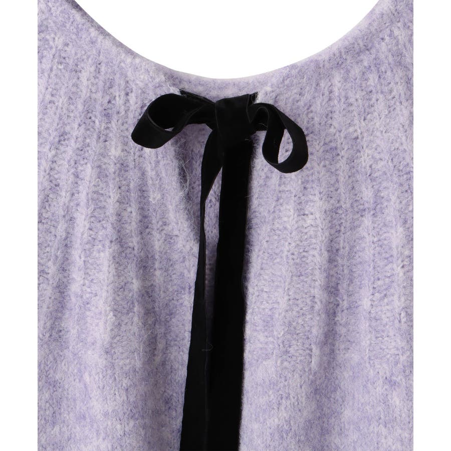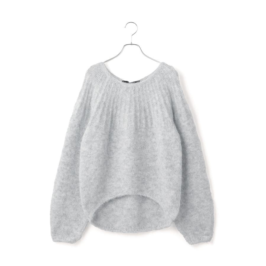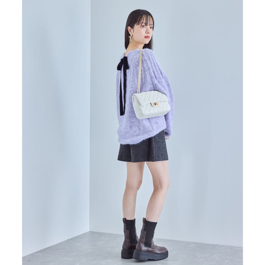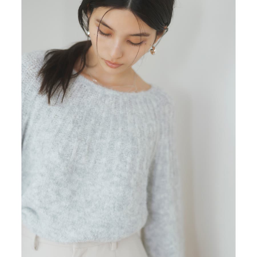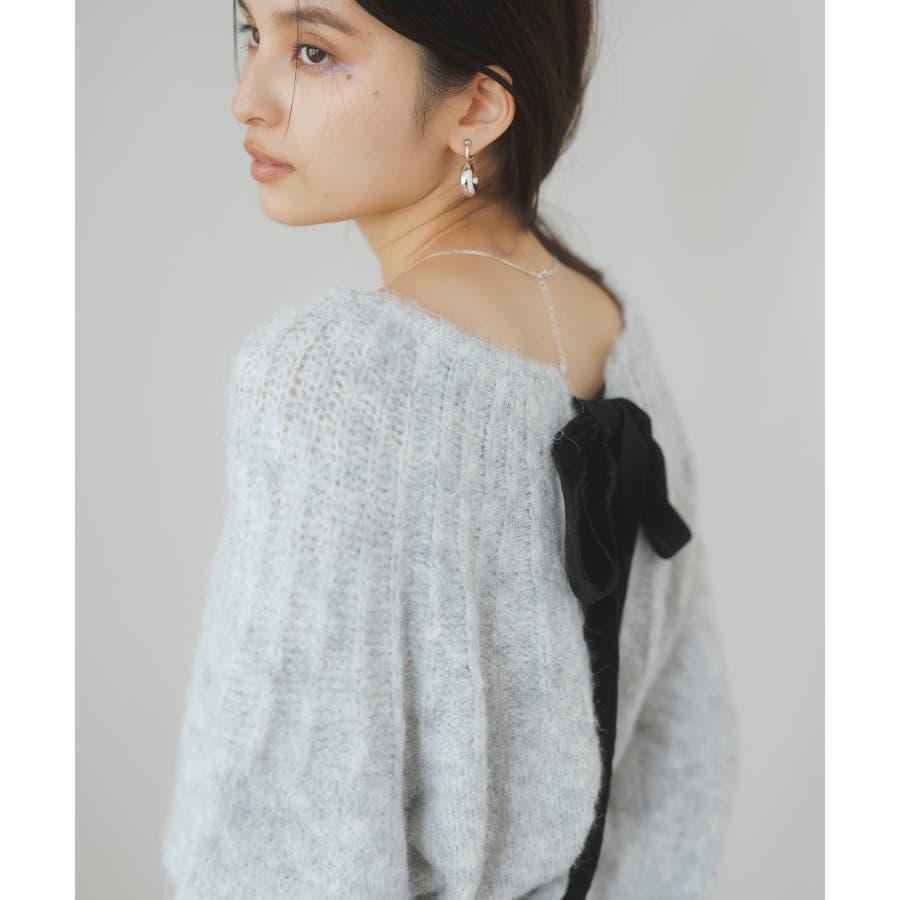 ◆2024-25秋冬◆ 【デザイン・シルエット】 ふわっとした柔らかい素材感がコーディネートの主役になる、存在感のあるニットプルオーバー。 身幅や袖をゆったりとさせて肩をドロップショルダーで仕上げた、リラックスムードのある一着は丸みを持たせることで女性らしくふんわりとしたムードに。 袖丈を長めにしており、くしゅっと溜まりをつくって着こなすことで可愛らしさがプラスされるデザインが魅力。 後ろにベロアリボンあしらいバックスタイルも抜かりなし!