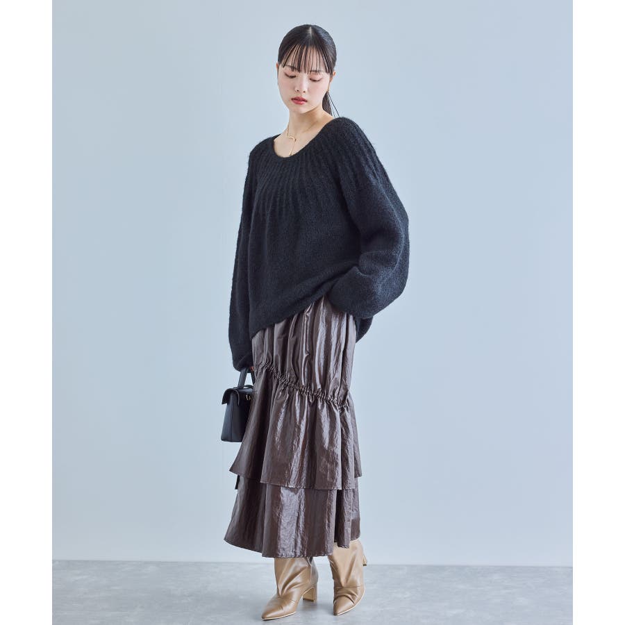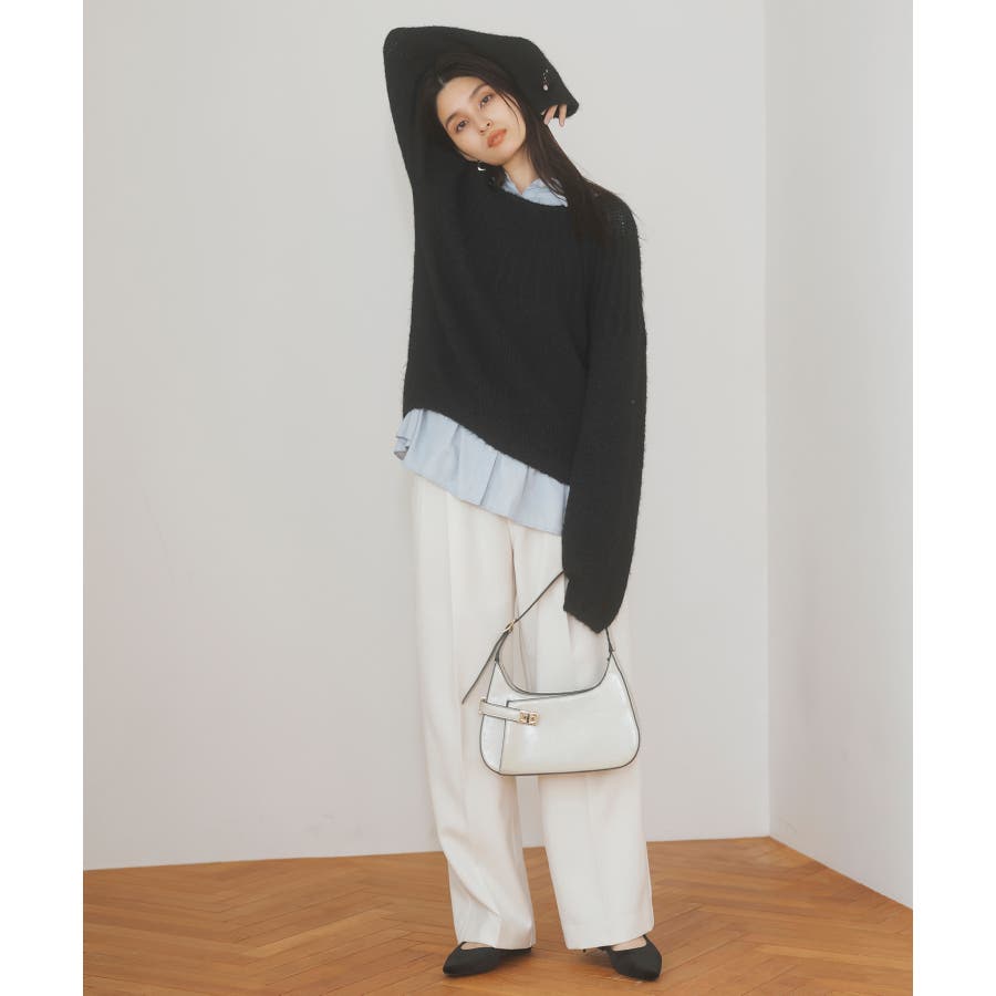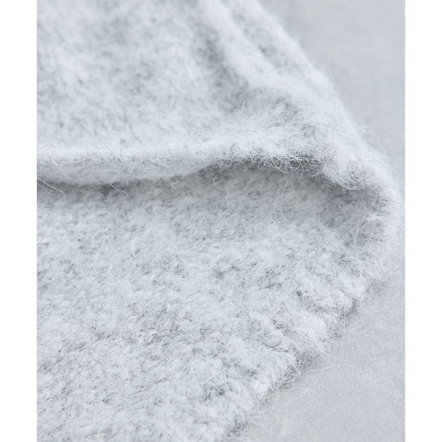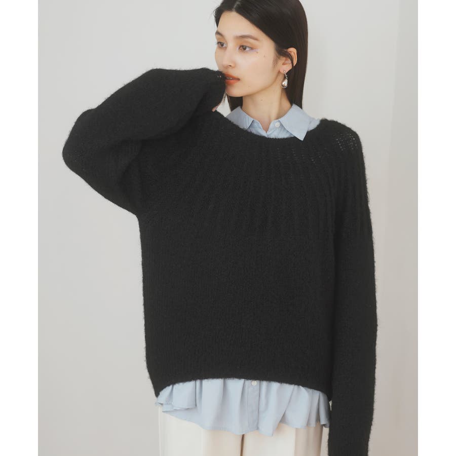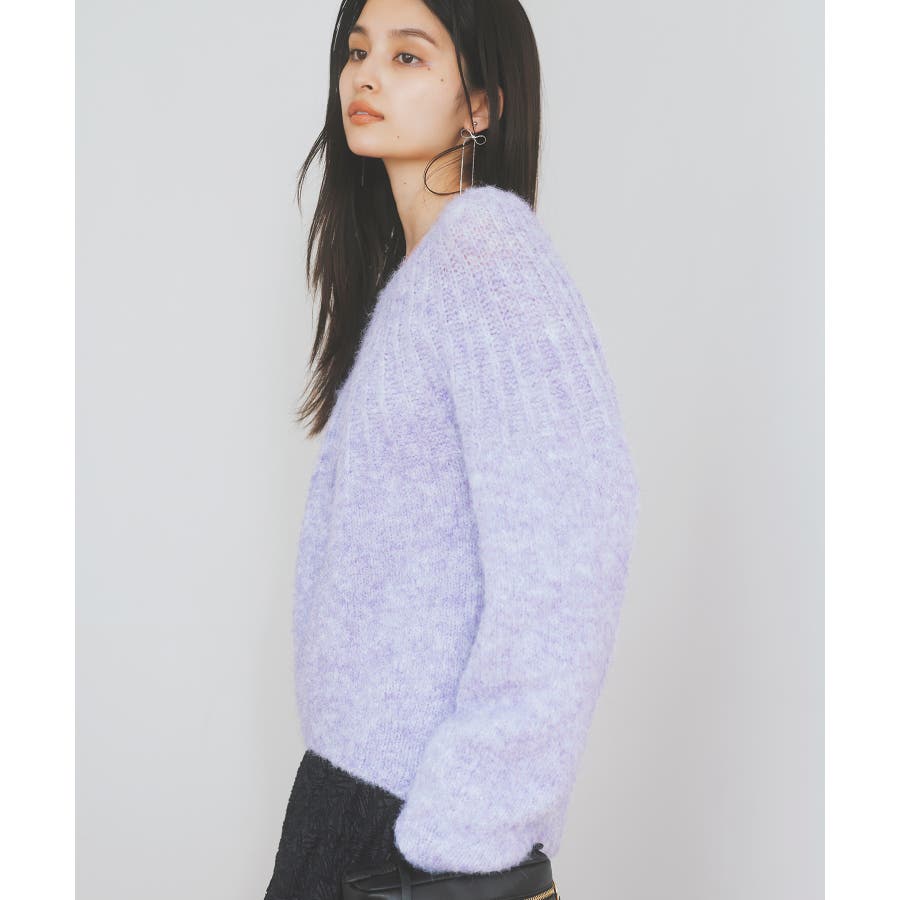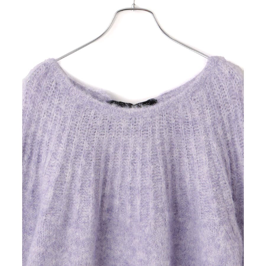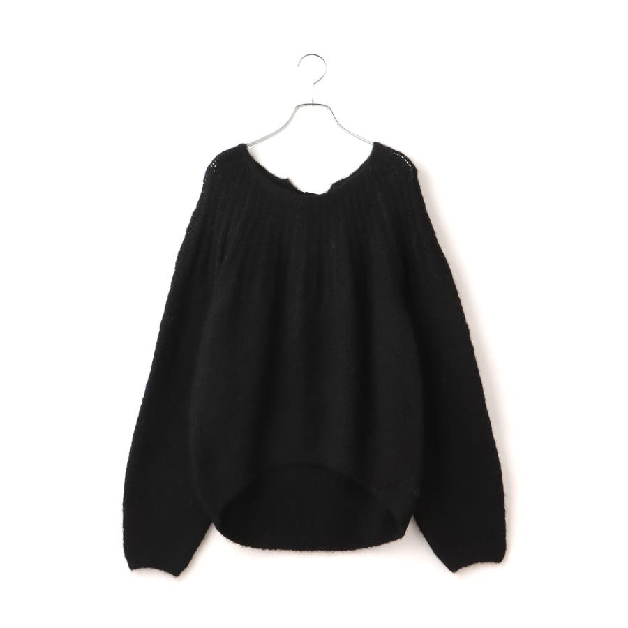 ◆2024-25秋冬◆ 【デザイン・シルエット】 ふわっとした柔らかい素材感がコーディネートの主役になる、存在感のあるニットプルオーバー。 身幅や袖をゆったりとさせて肩をドロップショルダーで仕上げた、リラックスムードのある一着は丸みを持たせることで女性らしくふんわりとしたムードに。 袖丈を長めにしており、くしゅっと溜まりをつくって着こなすことで可愛らしさがプラスされるデザインが魅力。 後ろにベロアリボンあしらいバックスタイルも抜かりなし!