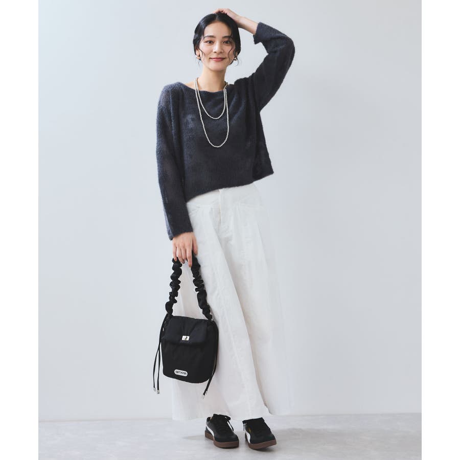 ボートネックとコンパクトな丈感で、大人っぽく着ていただけます。さらっと着用できるシンプルなボクシーデザイン。