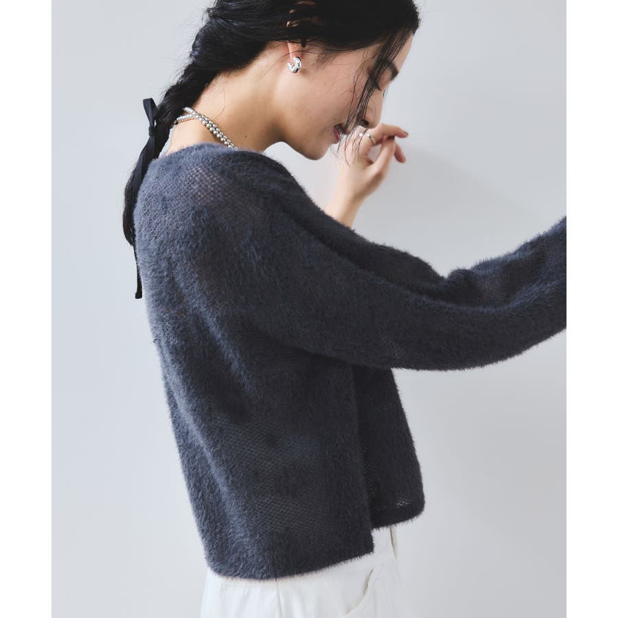 ・毛足のあるフェザーヤーンのふんわりとした素材感。