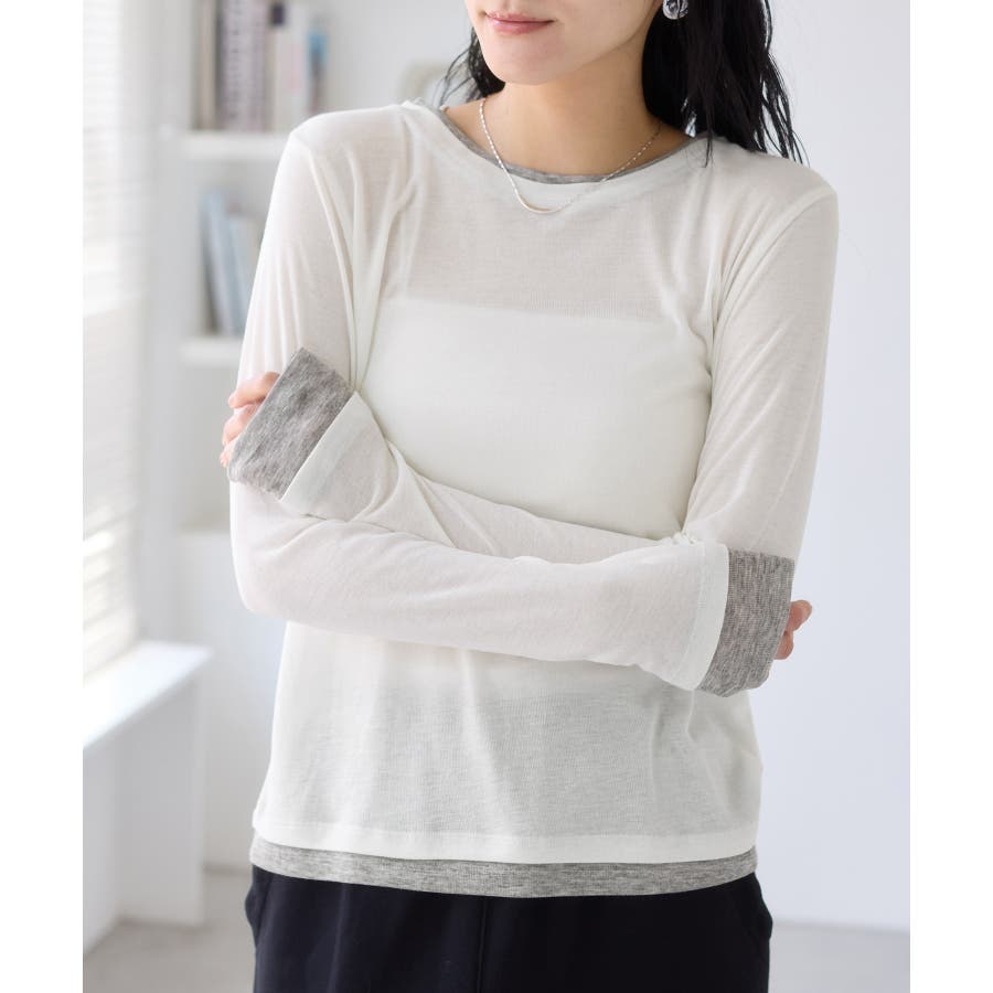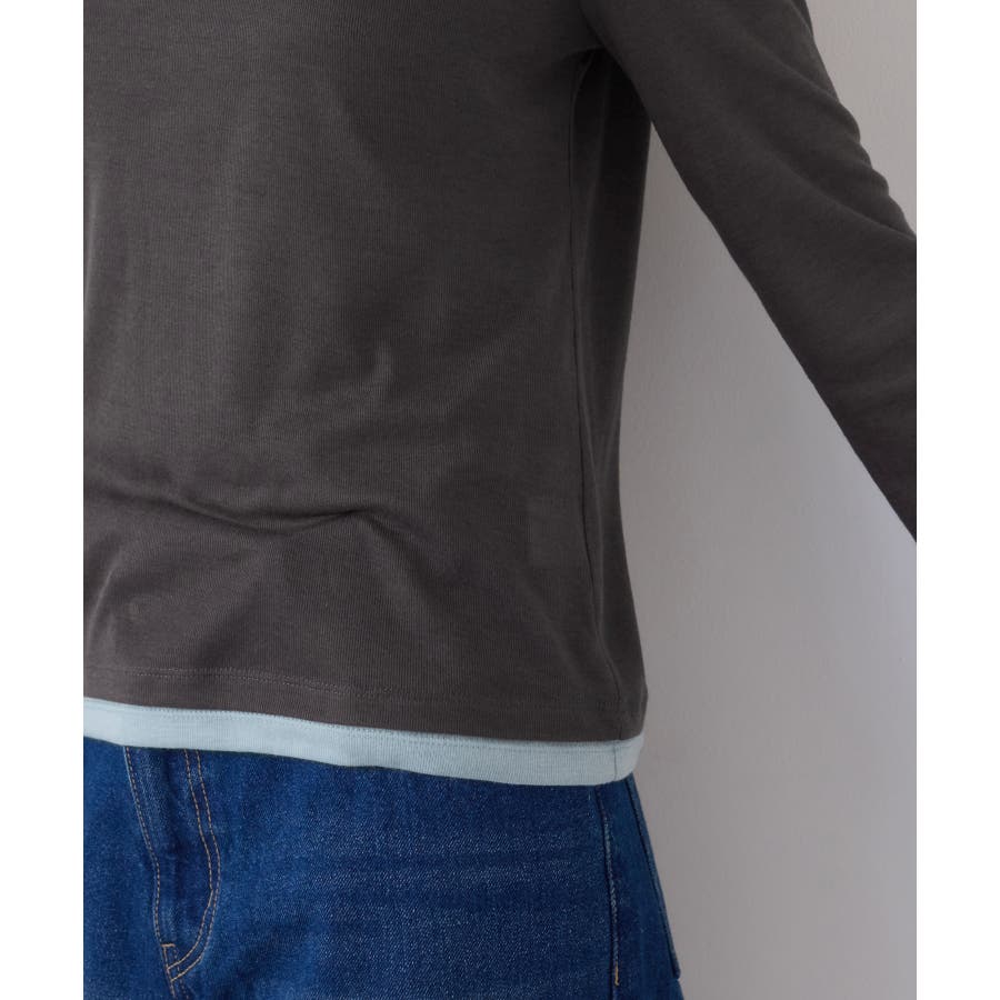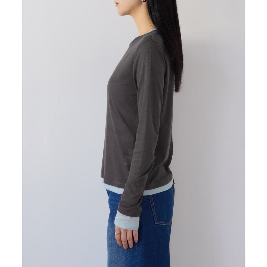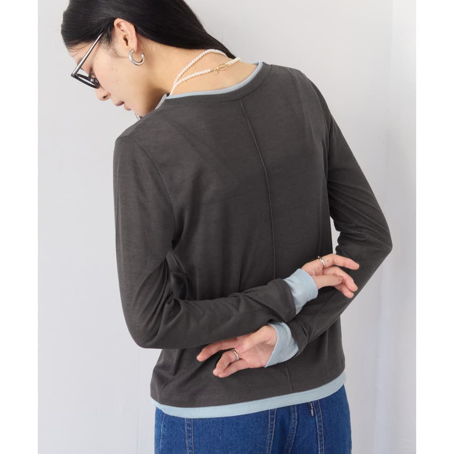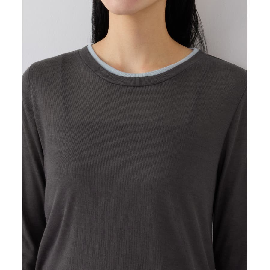 衿ぐりと袖口、裾口のさりげない配色がカワイイ!シンプルな着回し抜群なロンTです。