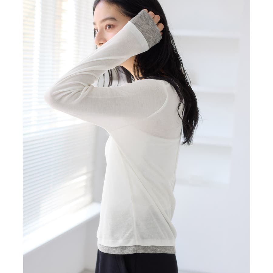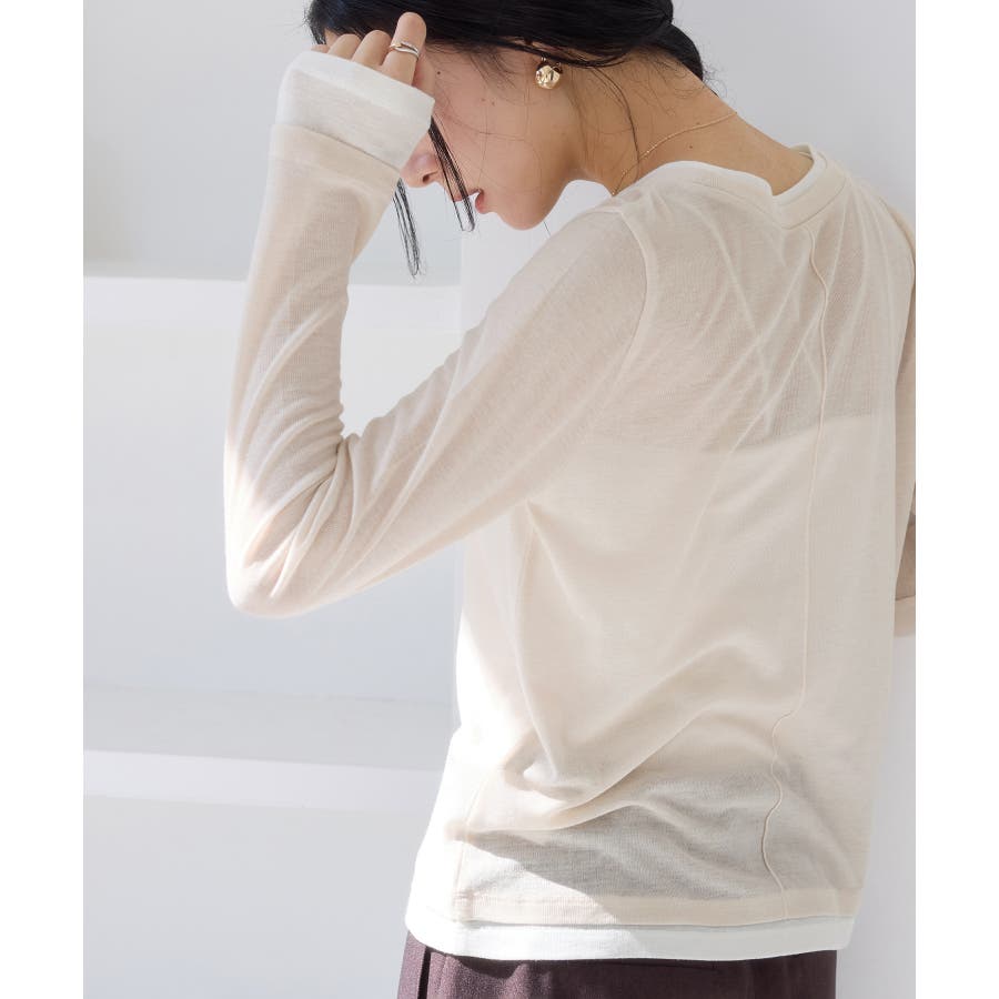 1枚での着用やベストとの重ね着、シャツやカーディガンなど羽織アイテムのインナーとして秋服としても幅広く対応します。