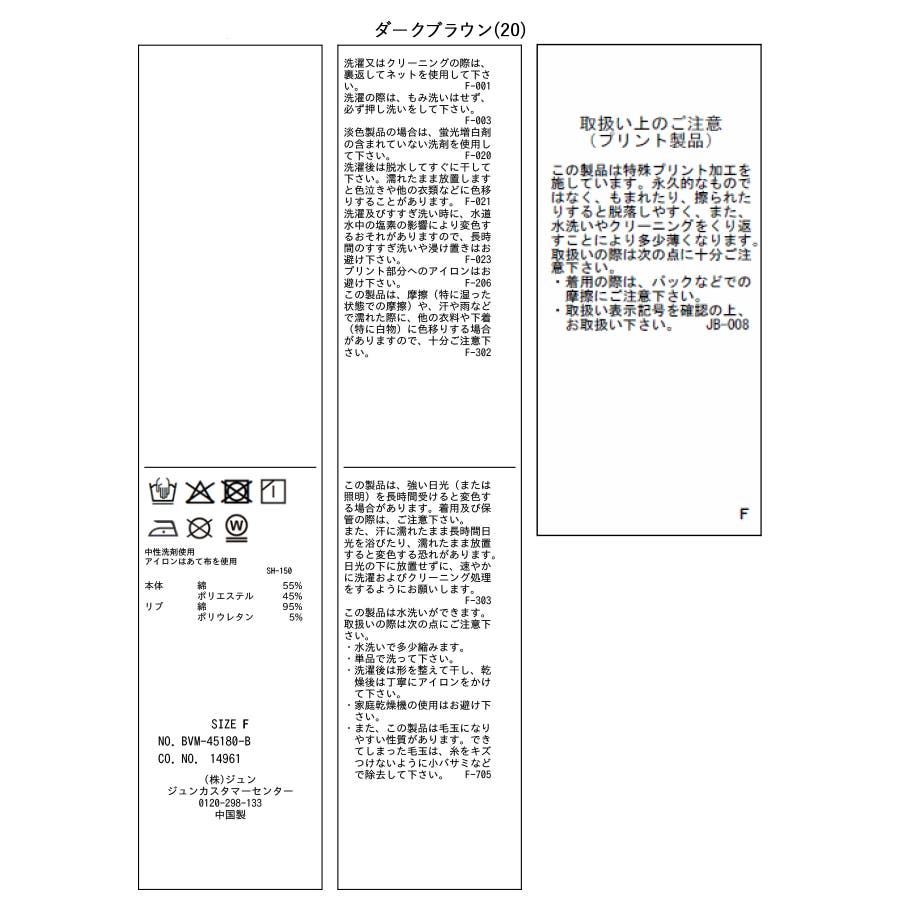 ダークブラウン(20):(本体) 綿 55% ポリエステル 45% (リブ) 綿 95% ポリウレタン 5%