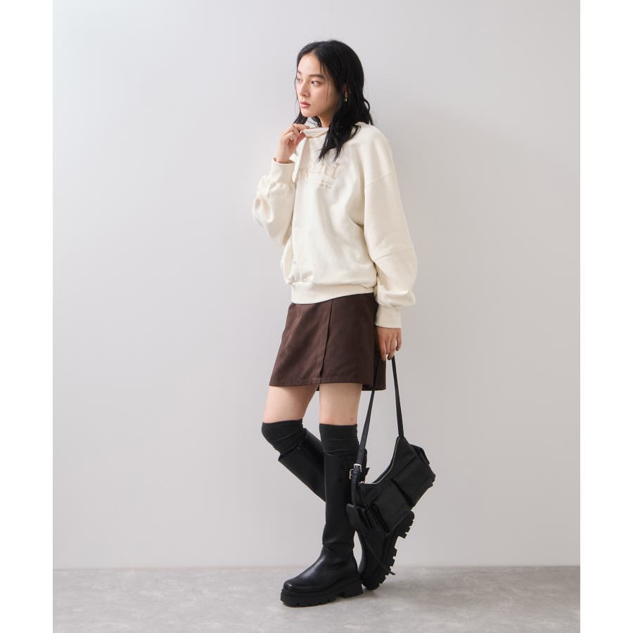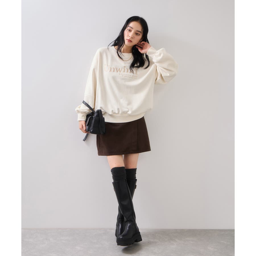 1枚でもインパクトのあるロゴとフォトなので、ボトムスは長めのスカートなどですっきり着るのがおすすめ。一押しはベロアやレーススカート!