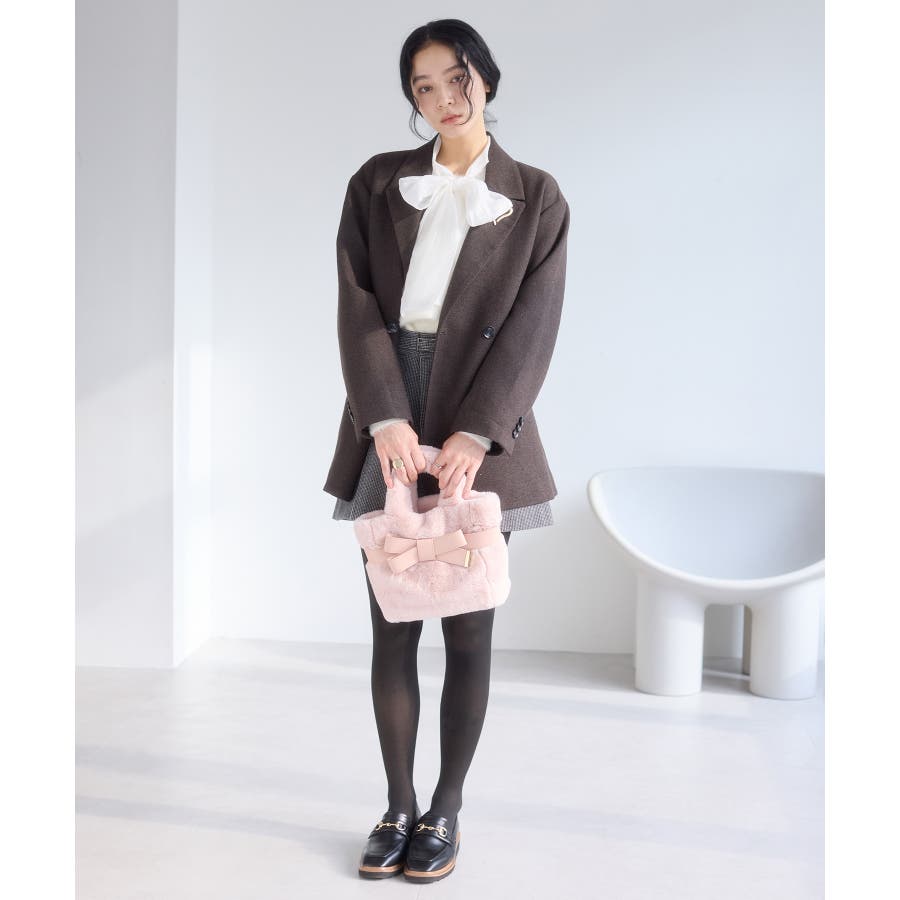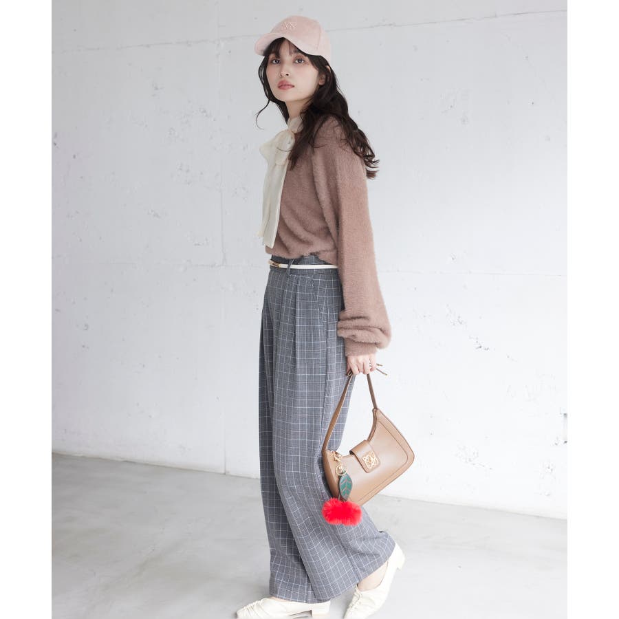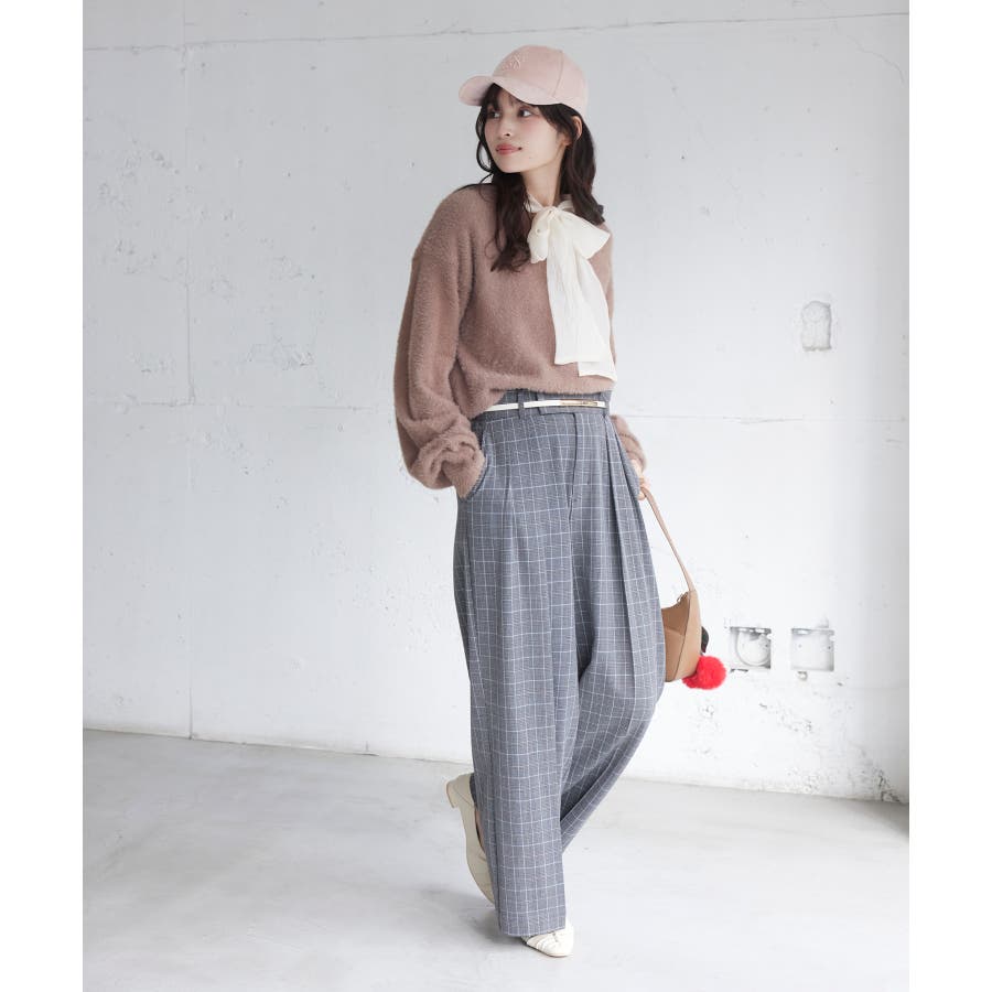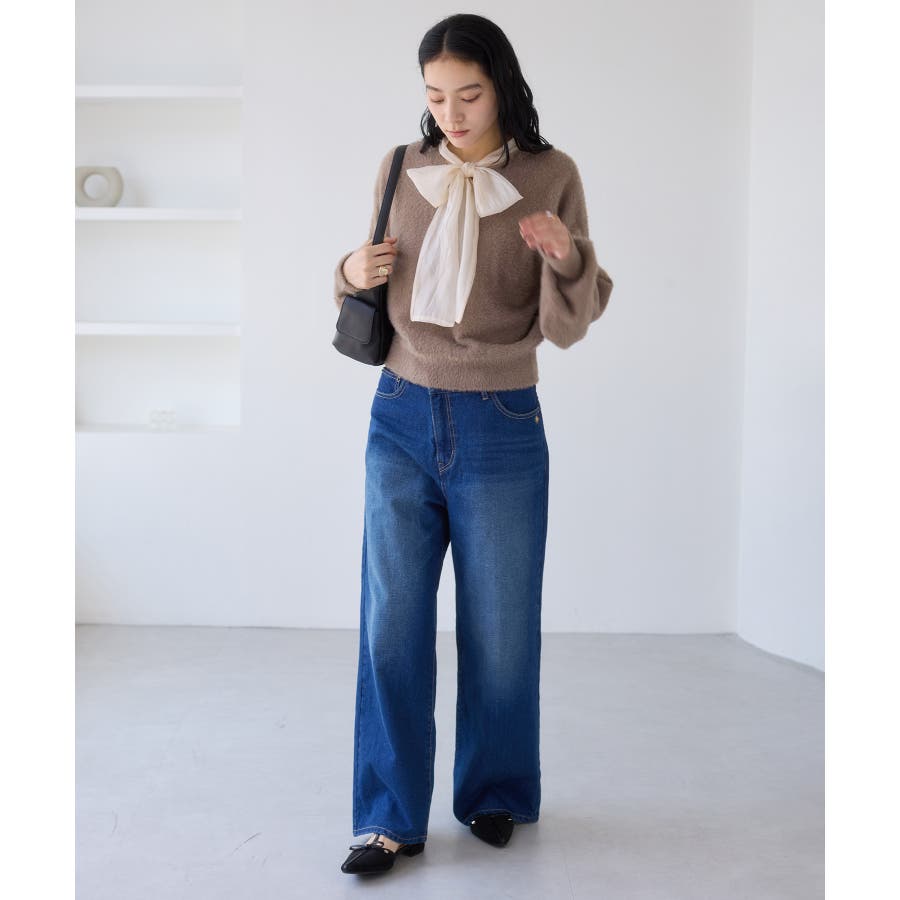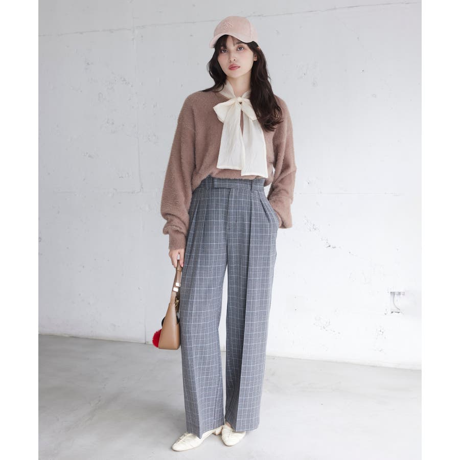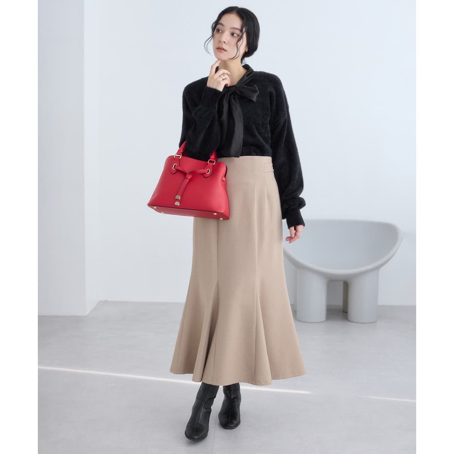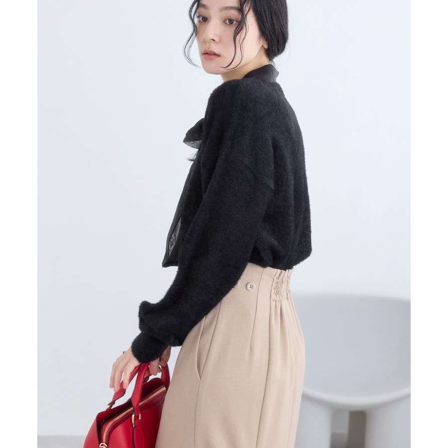 外してもベーシックに着まわしやすいアイテムにしました。リボンはたっぷりと大き目でニットとのコントラストがデザインポイントです!