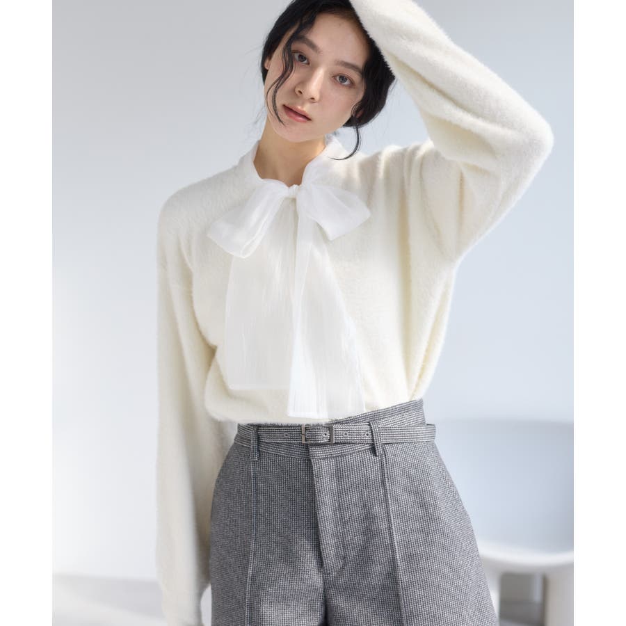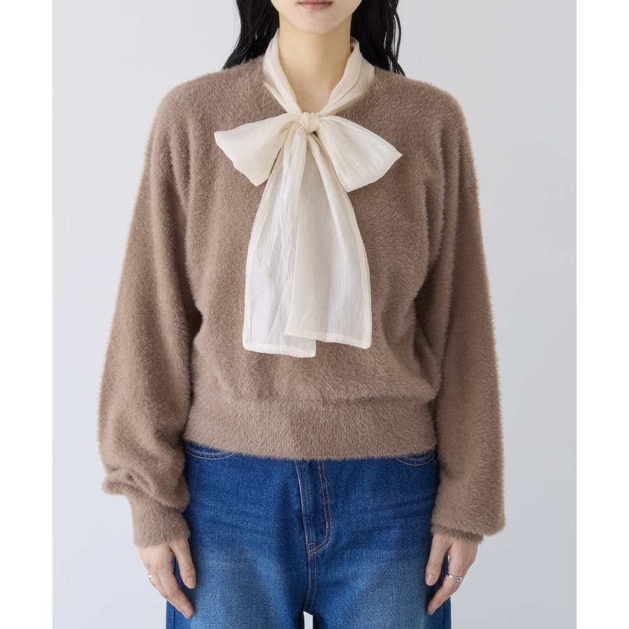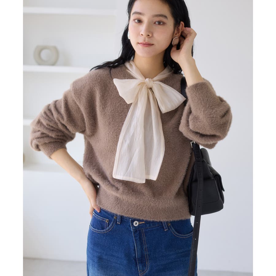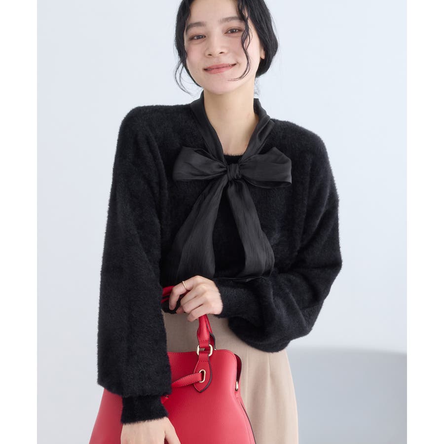 シアーボウタイリボン付きフェザーニットプルオーバー/2WAY・イージーケア