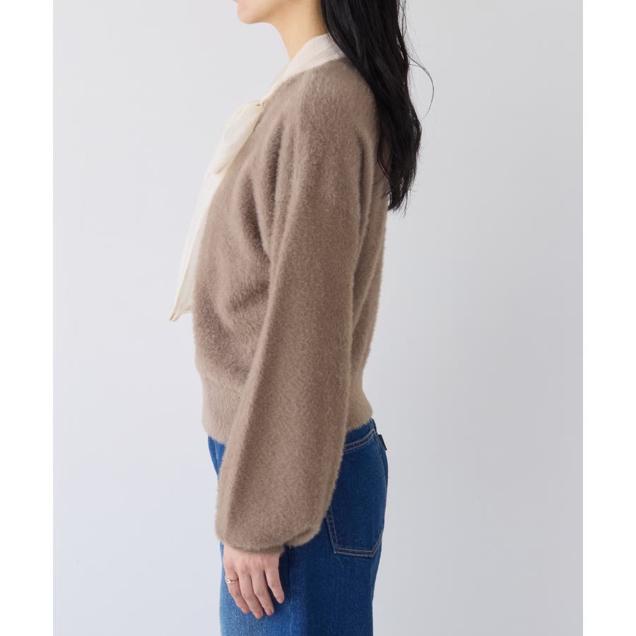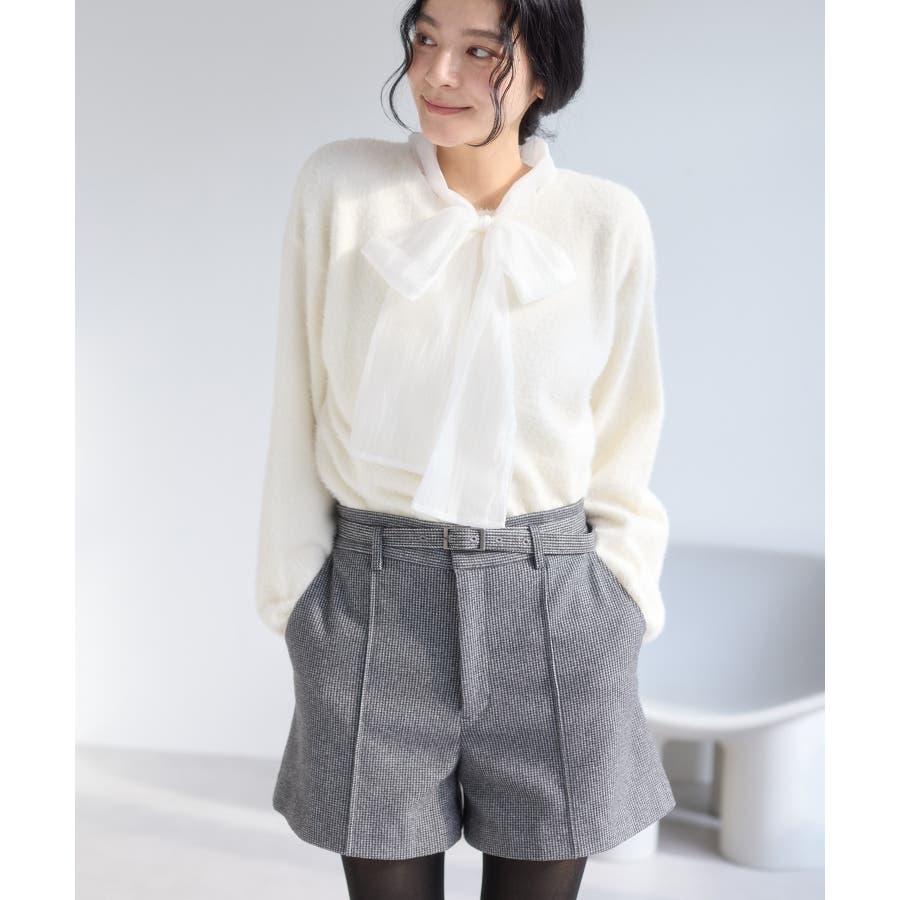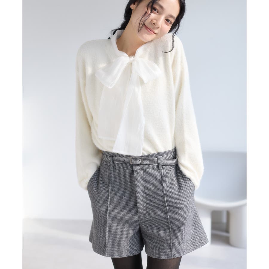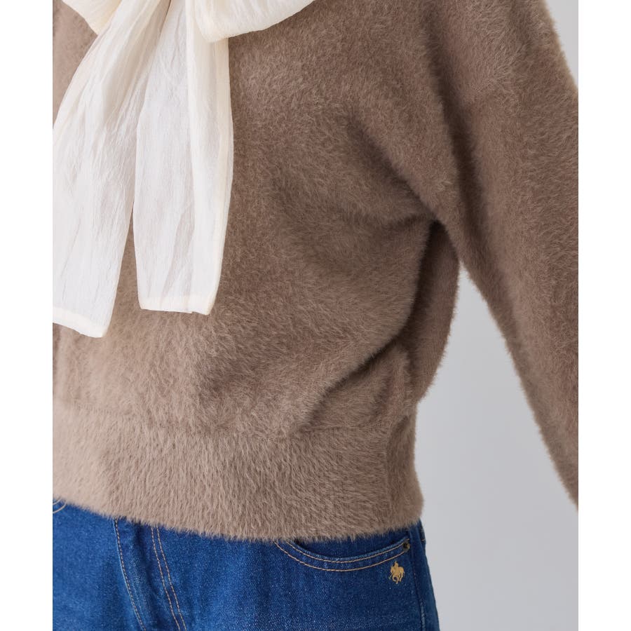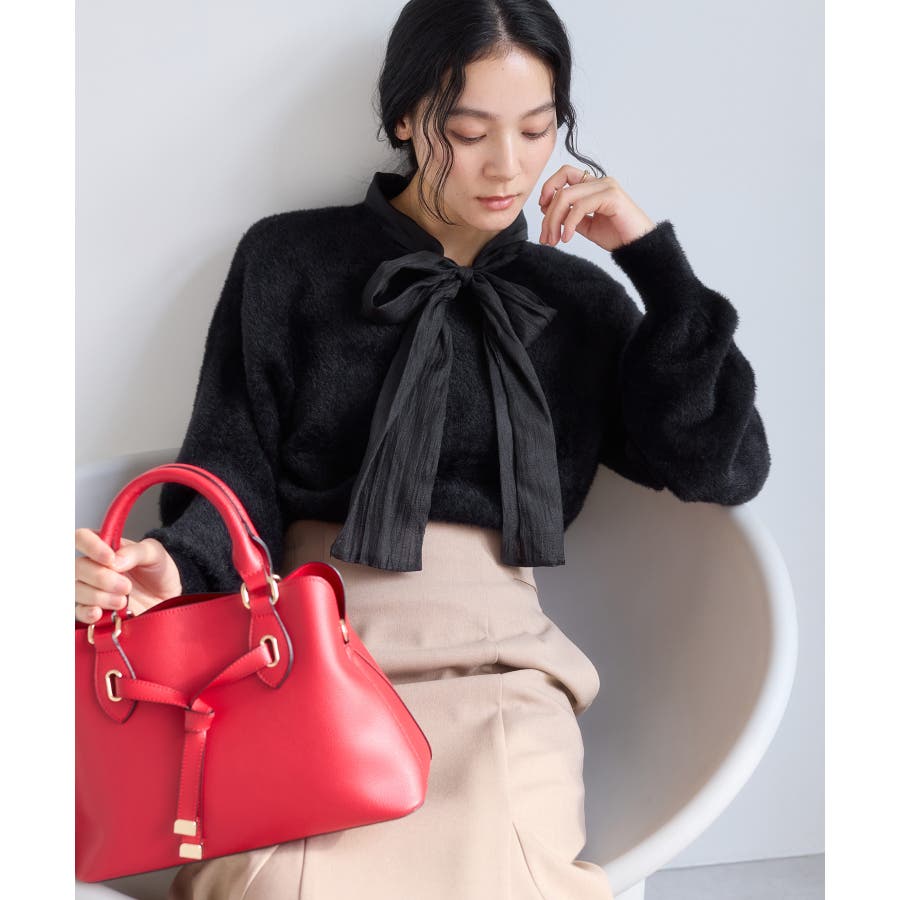 シアーボウタイリボン付きフェザーニットプルオーバー/2WAY・イージーケア