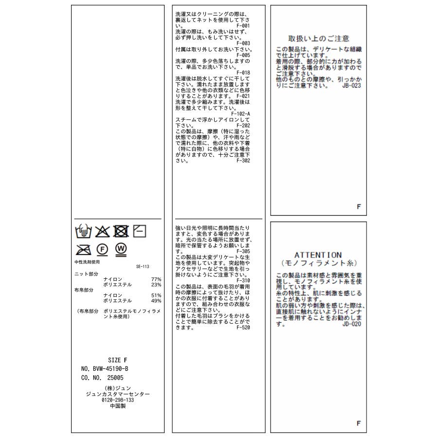 | 素材 | (ニット部分) ナイロン 77% ポリエステル 23% (布帛部分) ナイロン 51% ポリエステル 49% |
