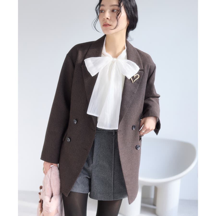 袖に程よくボリュームを持たせて女性らしいシルエット。シアー素材のリボンは釦で取り外しが可能。
