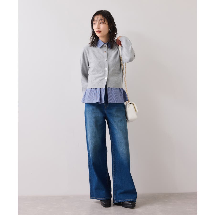 ・KNITカーデにシャツがドッキングされたデザインで簡単なレイヤードスタイルが叶います。