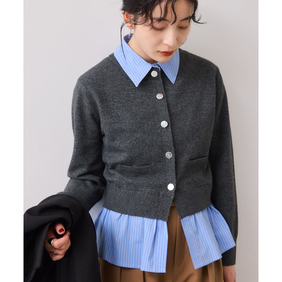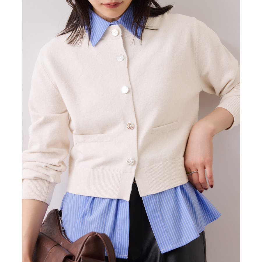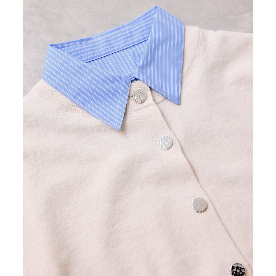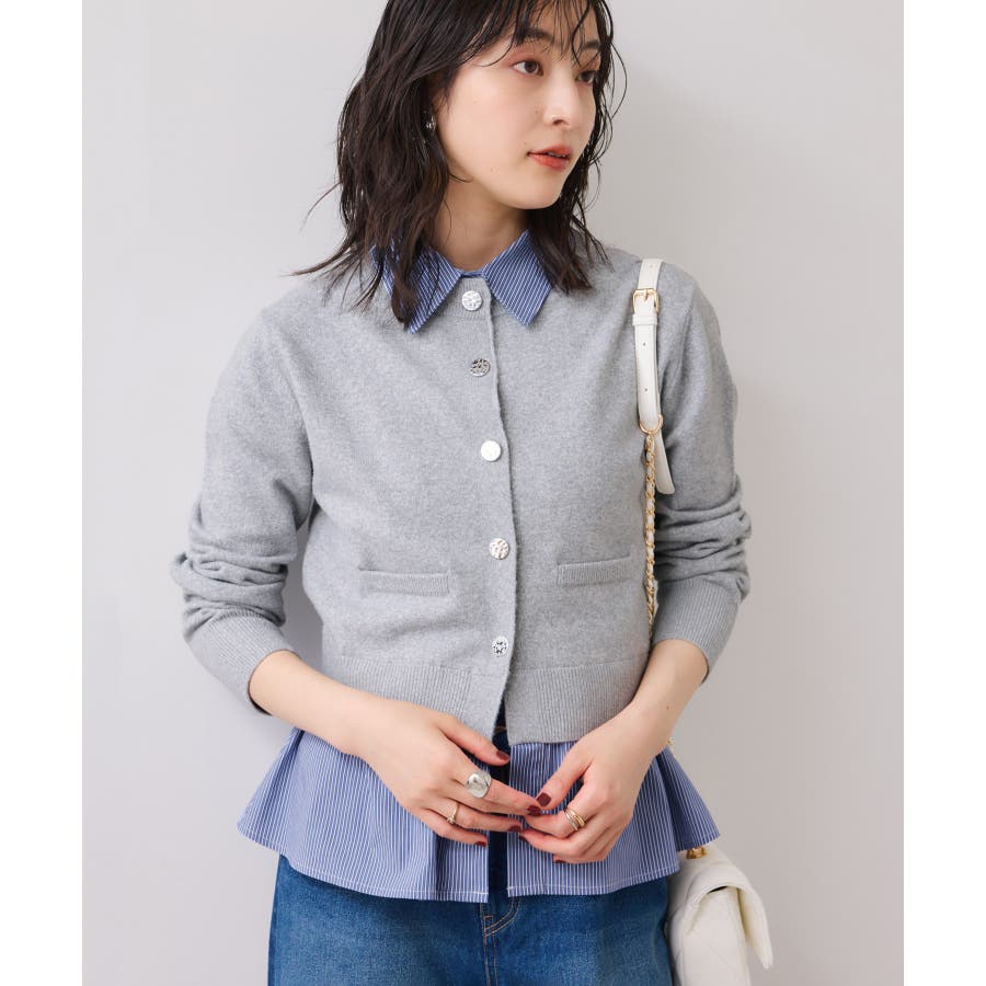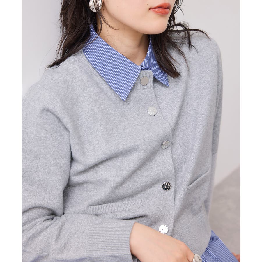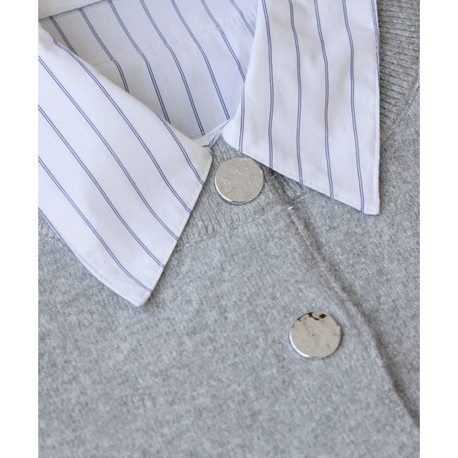 シャツレイヤード風メタルボタンカーディガン