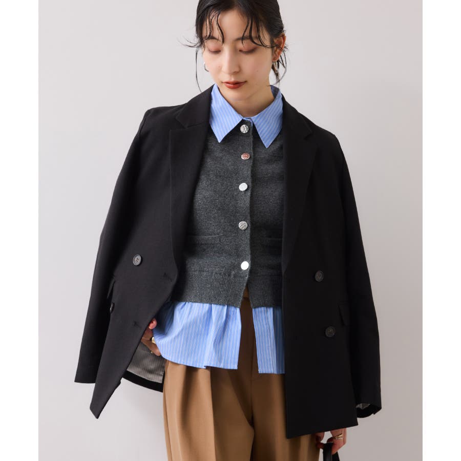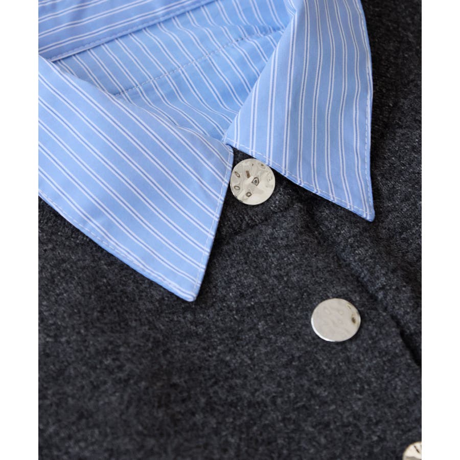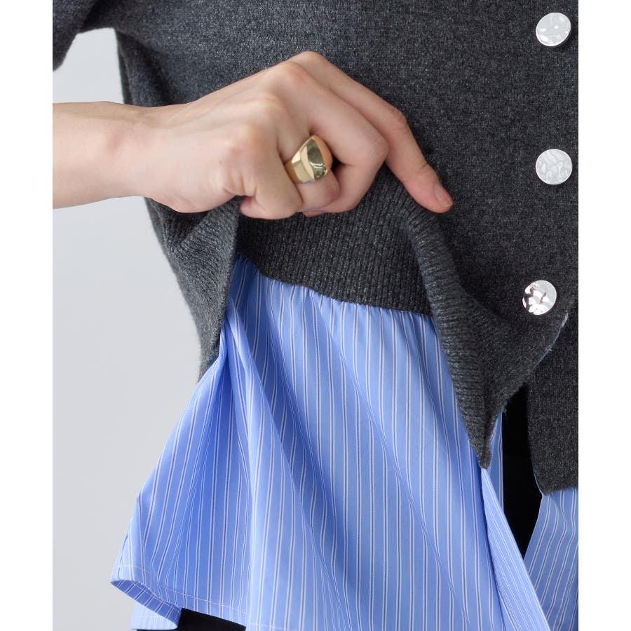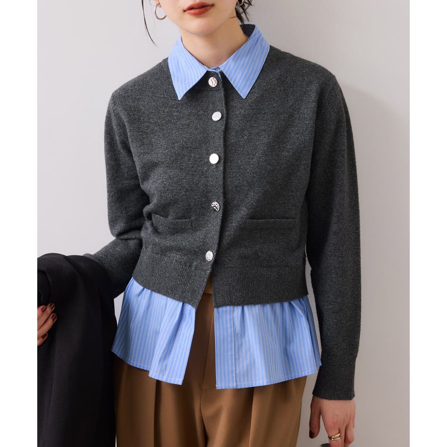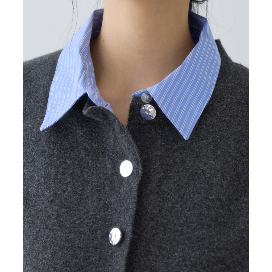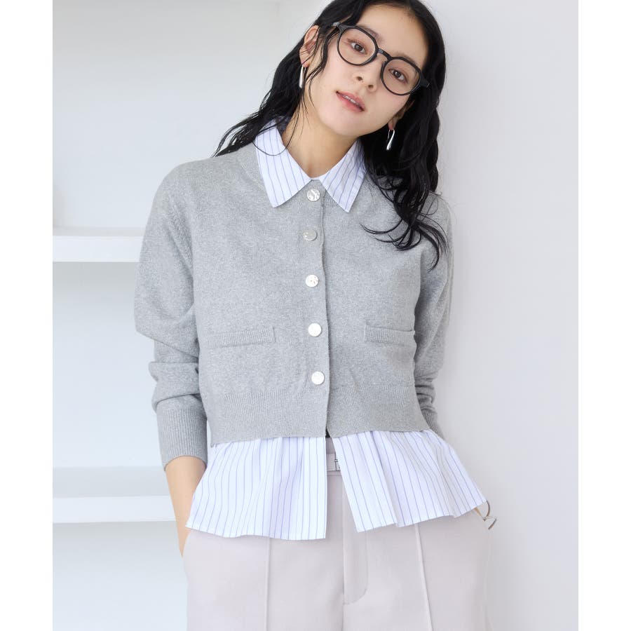 シャツレイヤード風メタルボタンカーディガン