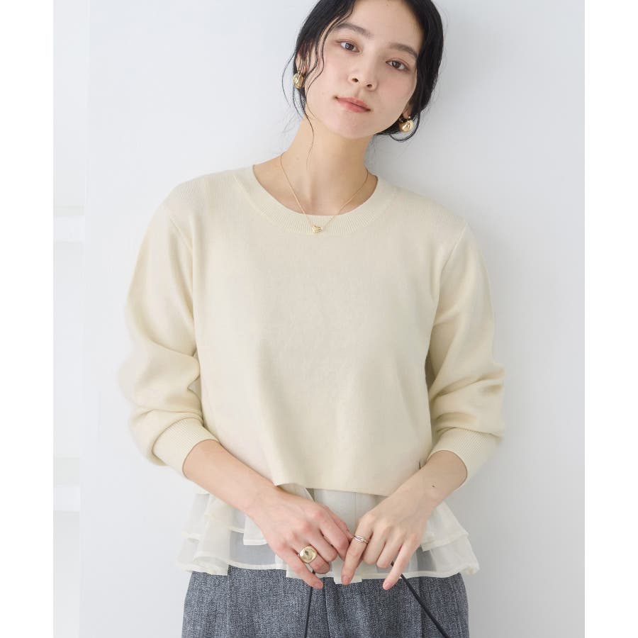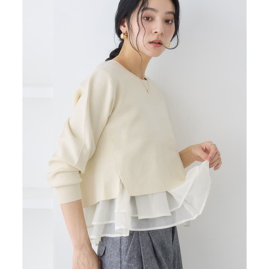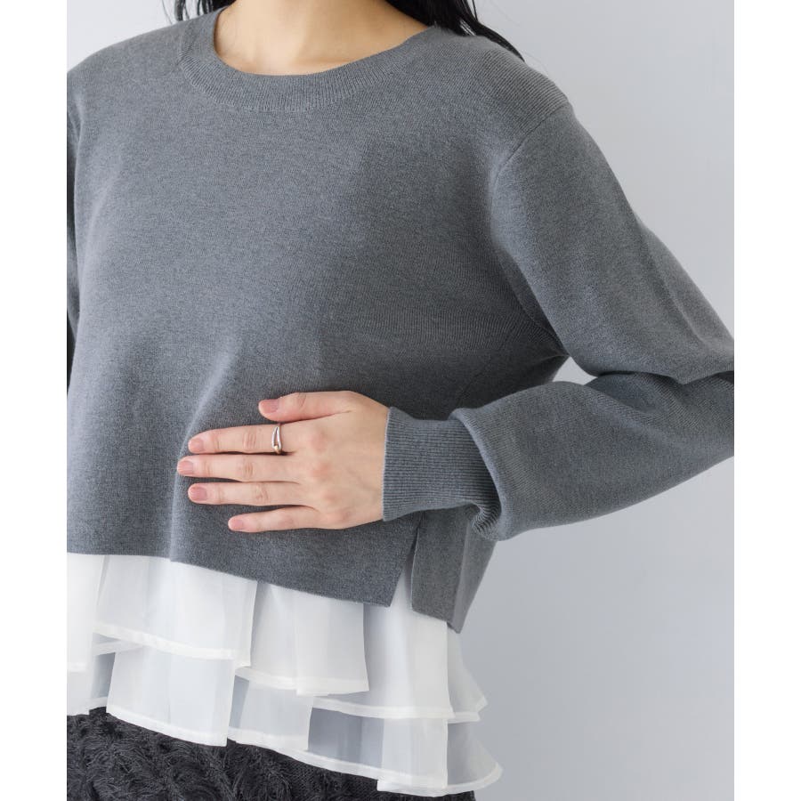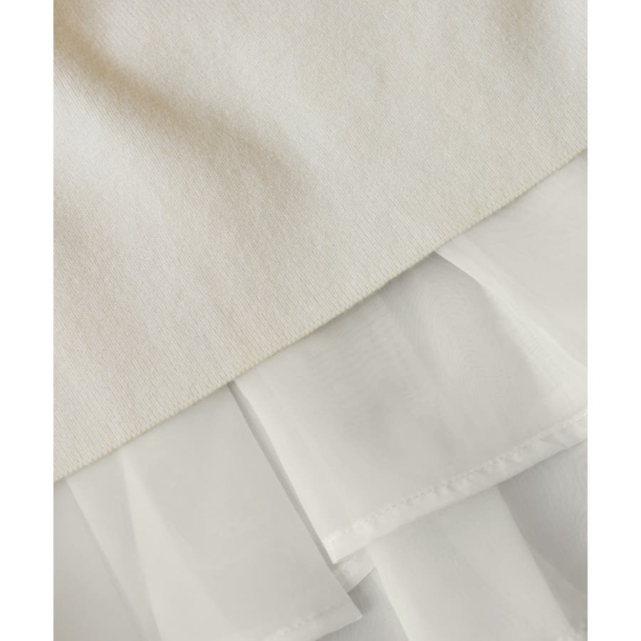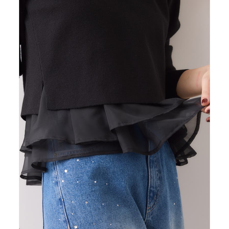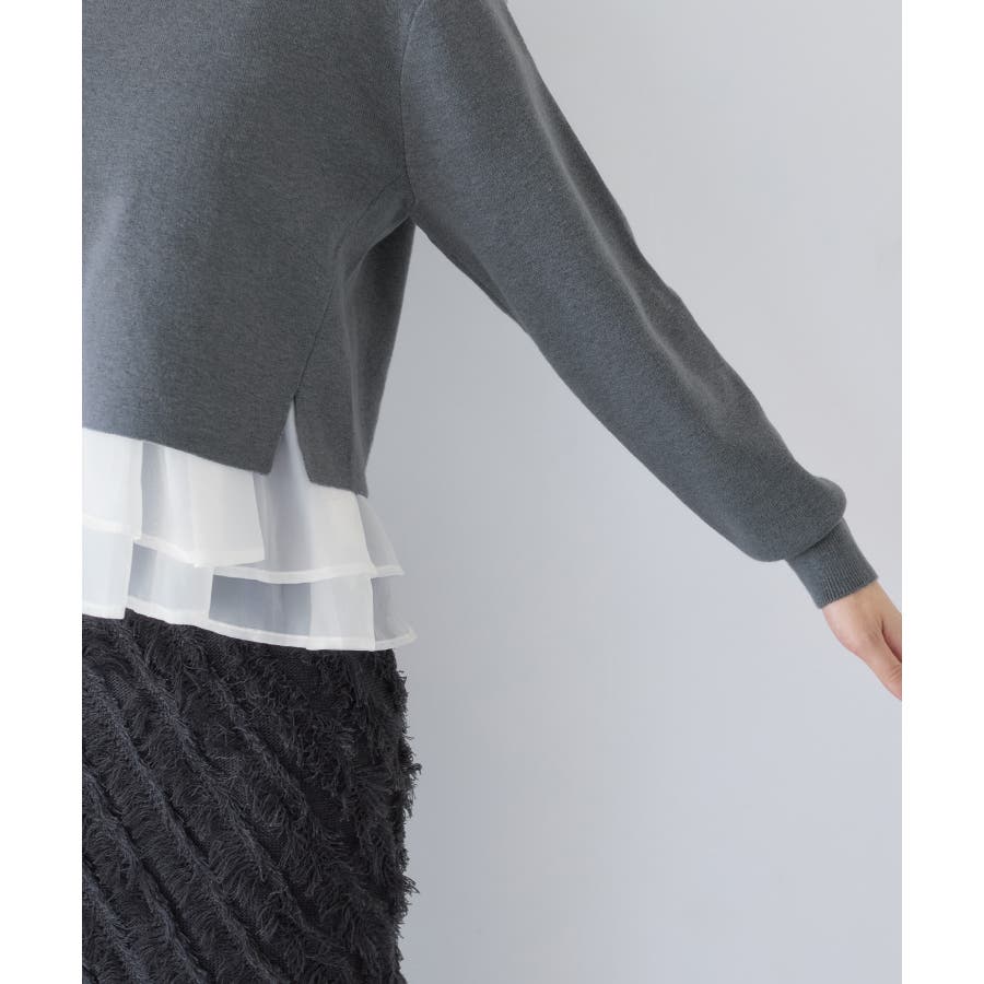 ・裾からオーガンジーペプラムが見えているドッキングニット