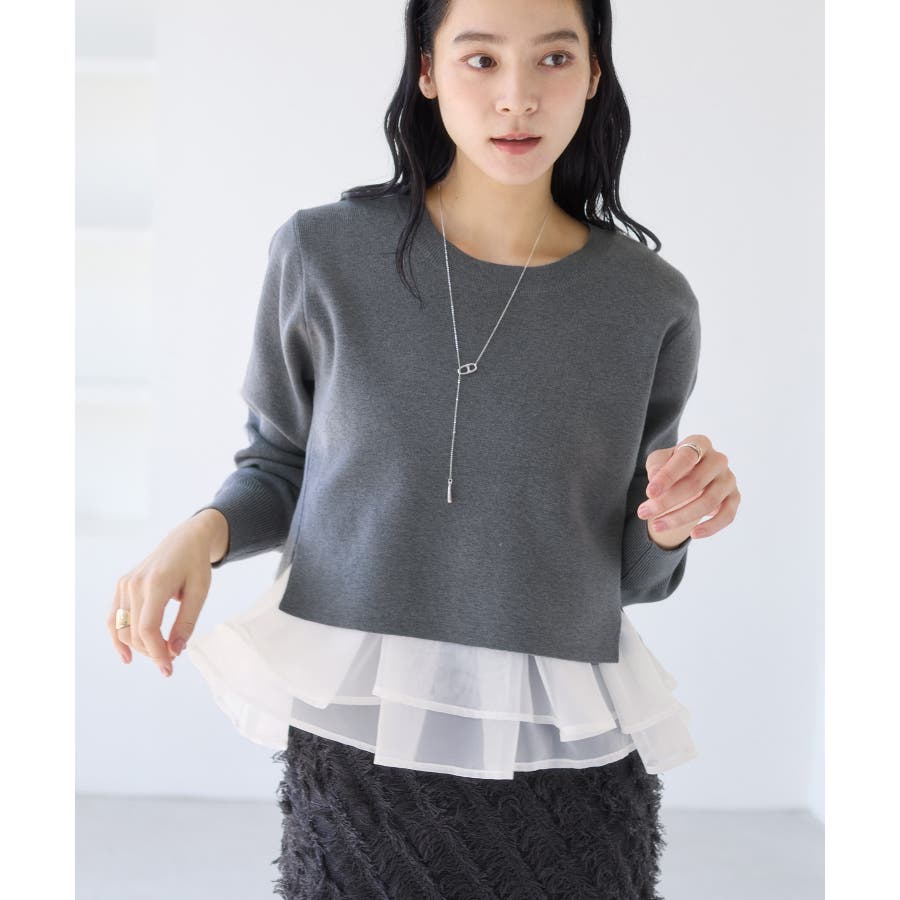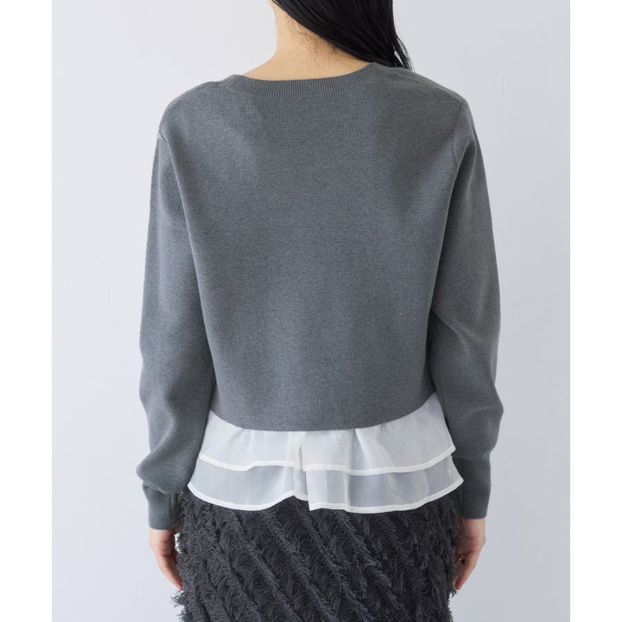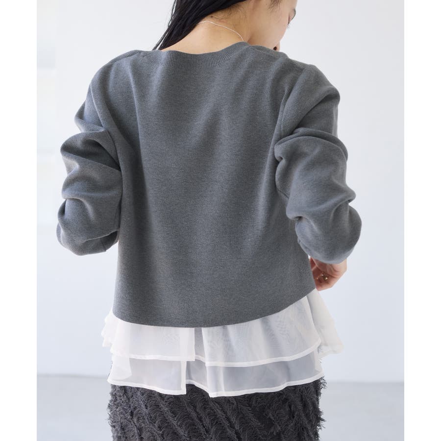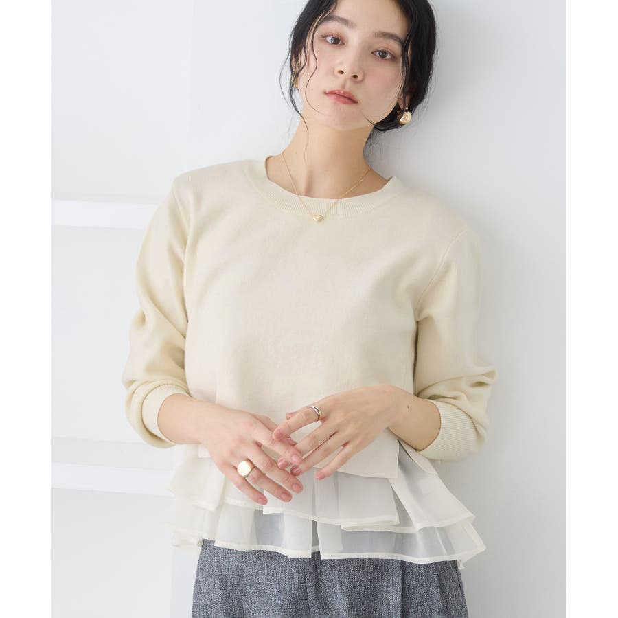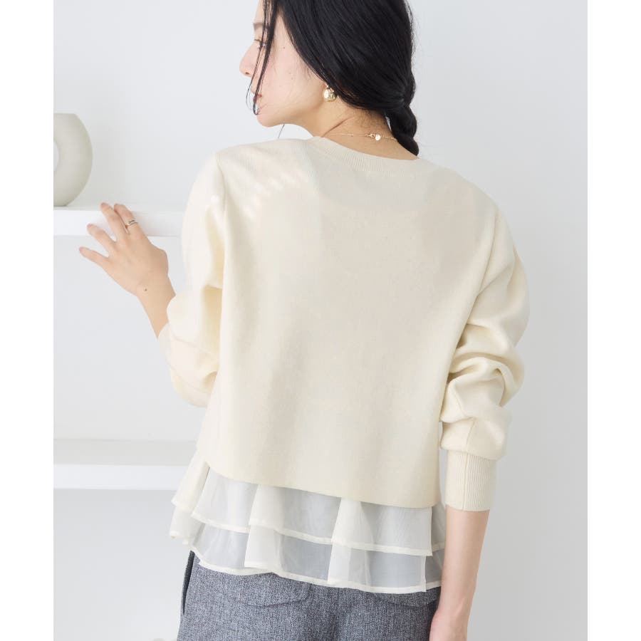 ・裾からオーガンジーペプラムが見えているドッキングニット