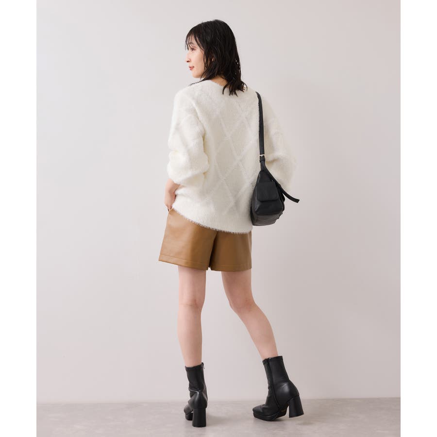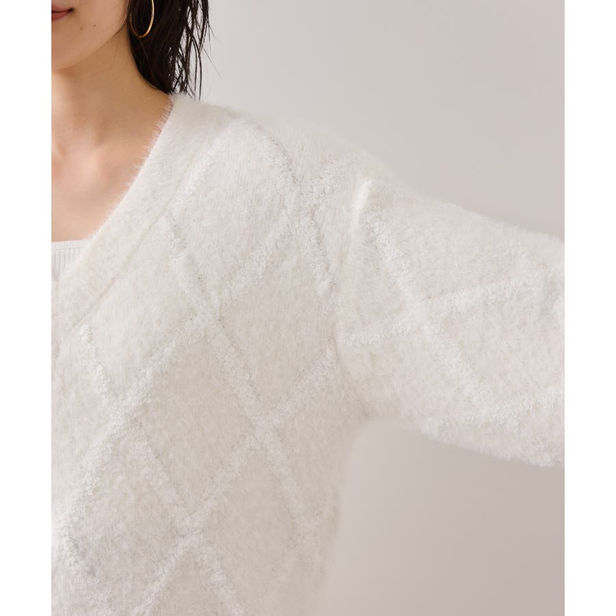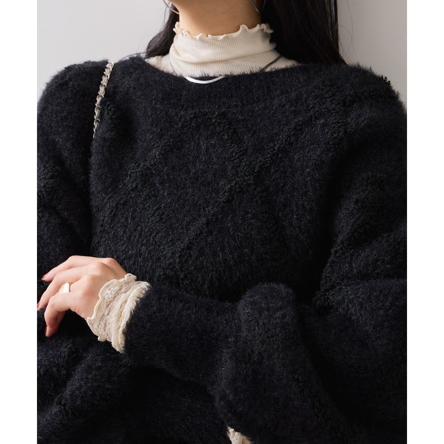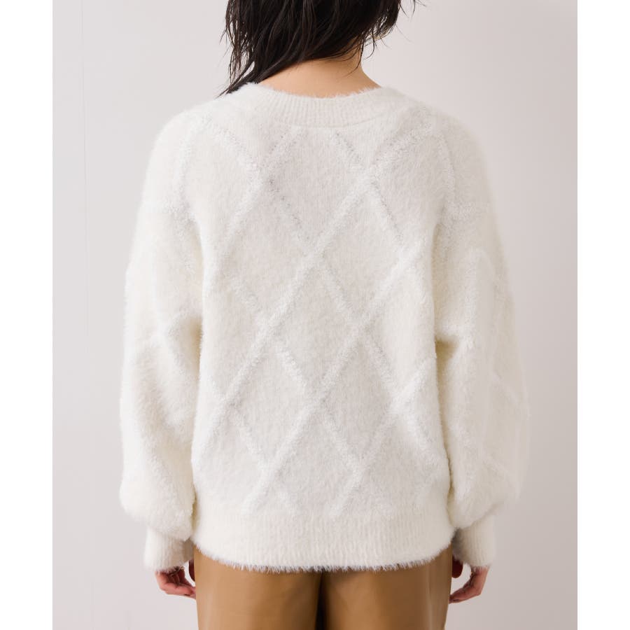 ふわふわのシャギーの糸とブークレの糸を混ぜてアーガイル柄に編んだモテニット。