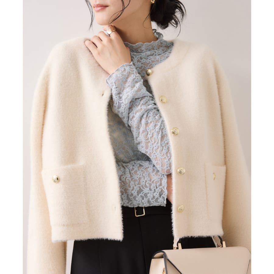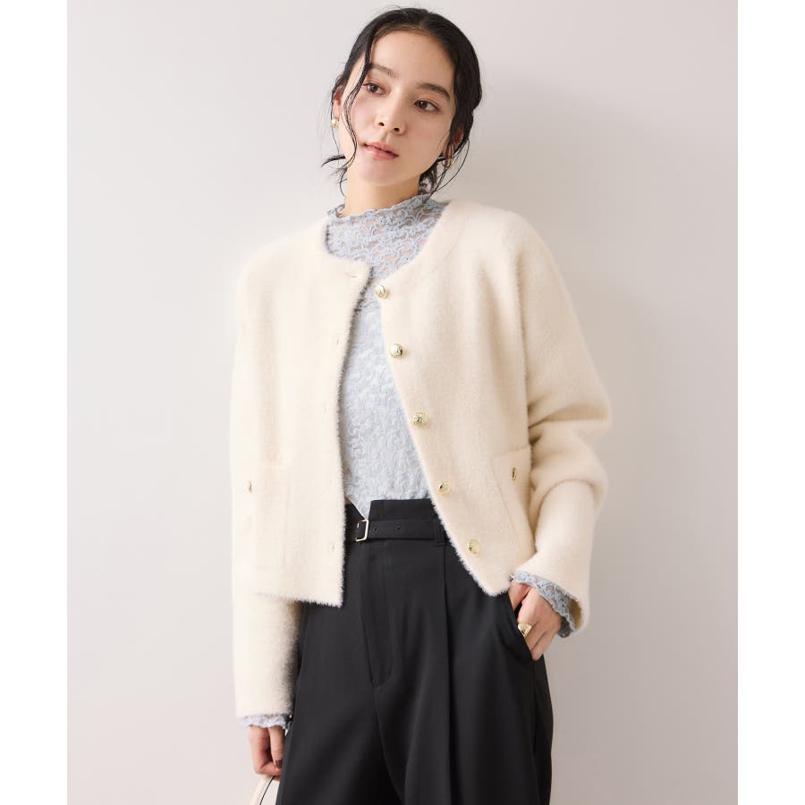 インナーに使いやすいベーシックなブラックとアイボリー、ポイントにもなるニュアンスサックスの3色展開です。
