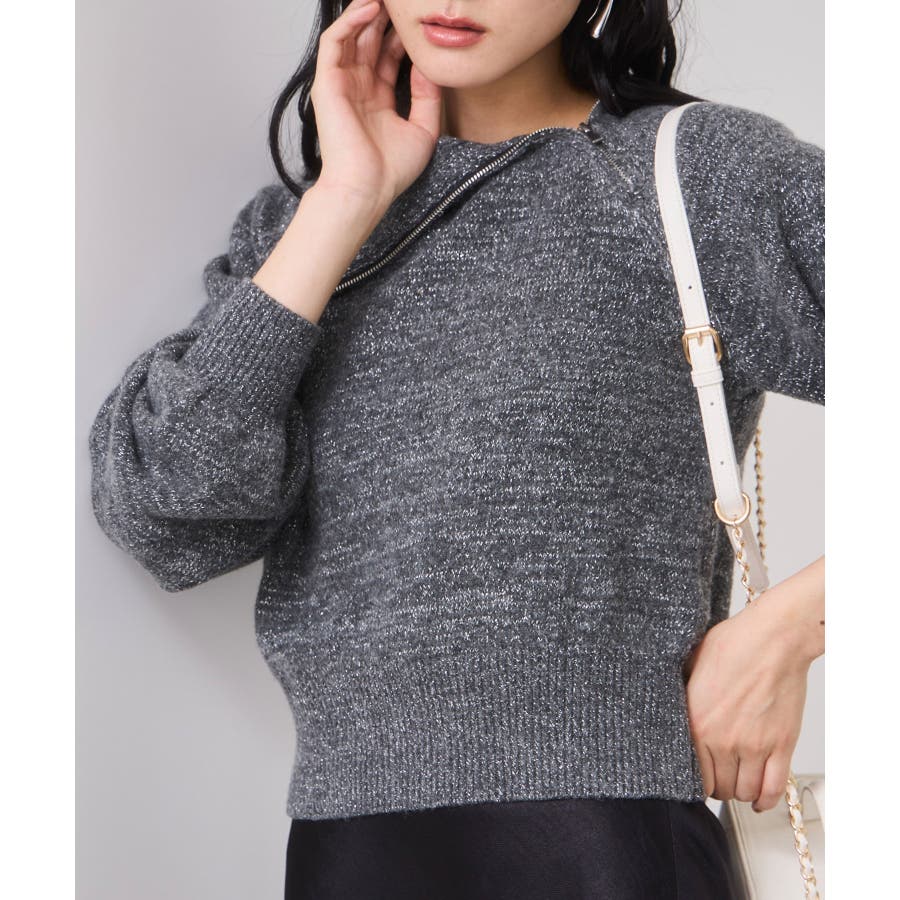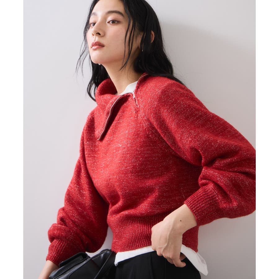 程よく膨らみのあるニット。ラメ糸をミックスしているので華やかな素材です。